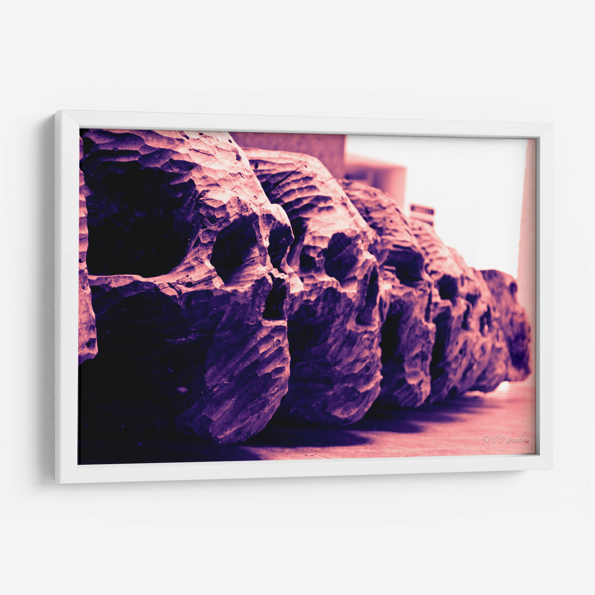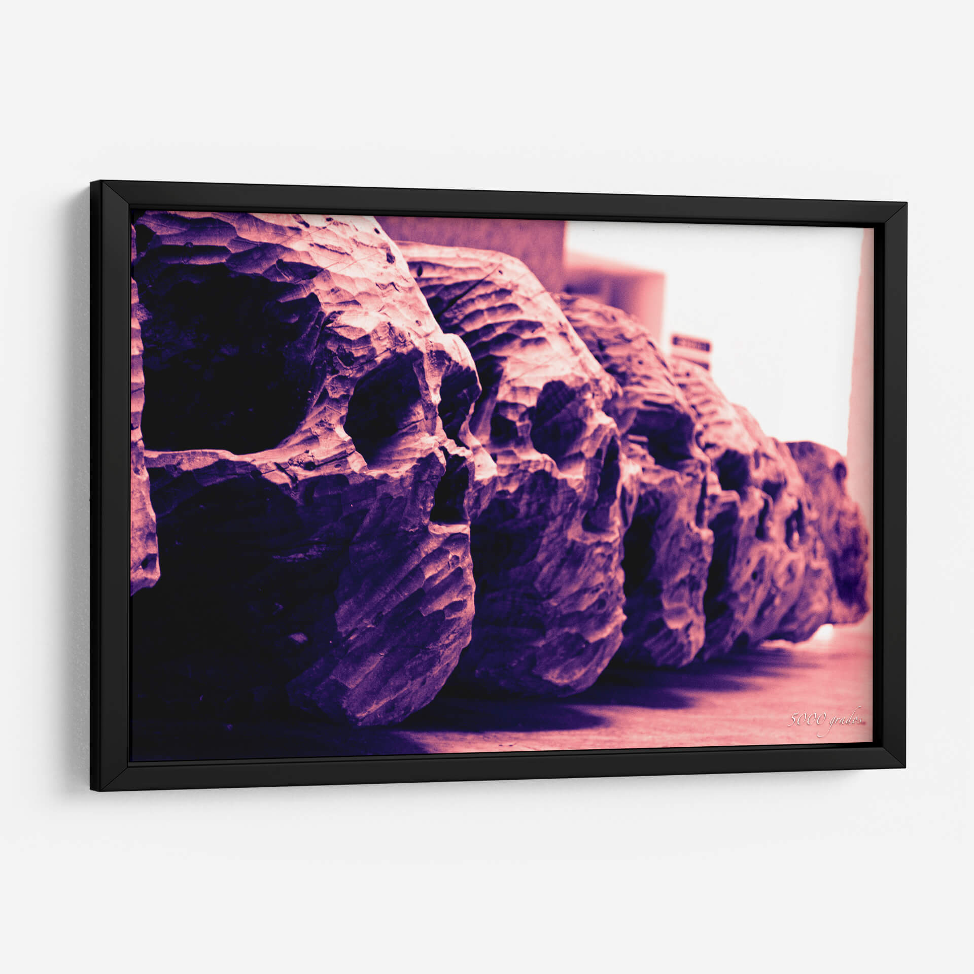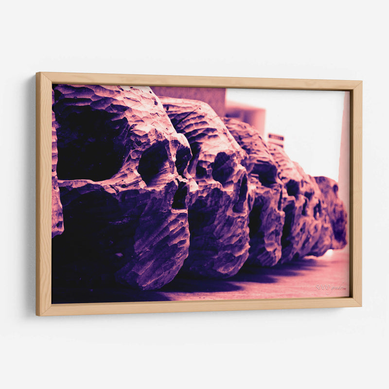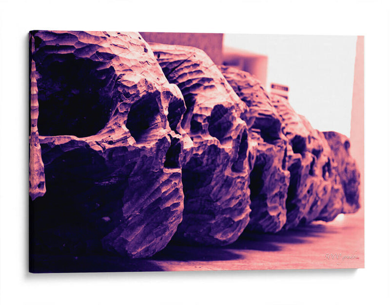 Sumérgete en la enigmática belleza de "Calaveras de Madera Tallada", una obra de arte visualmente impactante que evoca misterio y una estética única. Esta pieza captura la esencia de la artesanía a través de una serie de calaveras detalladamente talladas, presentadas en una composición lineal que invita a la contemplación. La paleta de colores, dominada por profundos tonos púrpuras y rosados, crea una atmósfera a la vez sombría y cautivadora, añadiendo una capa de intriga visual. El estilo, con sus texturas rugosas y la profundidad que emana de cada talla, sugiere una conexión con lo ancestral y lo orgánico, transformando un tema a menudo asociado con lo macabro en una expresión de arte contemporáneo poderoso. Este cuadro decorativo es ideal para espacios que buscan un toque distintivo y audaz, como un salón moderno, un estudio personal o incluso una entrada que desee causar una primera impresión memorable. Su presencia no solo decora, sino que también provoca reflexión, convirtiéndose en un punto focal que dialoga con el espectador. Ideal para amantes del arte que aprecian la originalidad y la profundidad temática en sus decoraciones, esta obra es una adición excepcional para infundir carácter y conversación en cualquier ambiente.