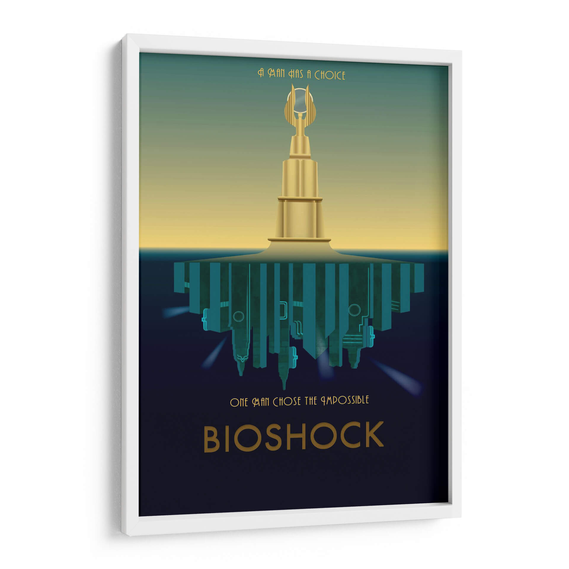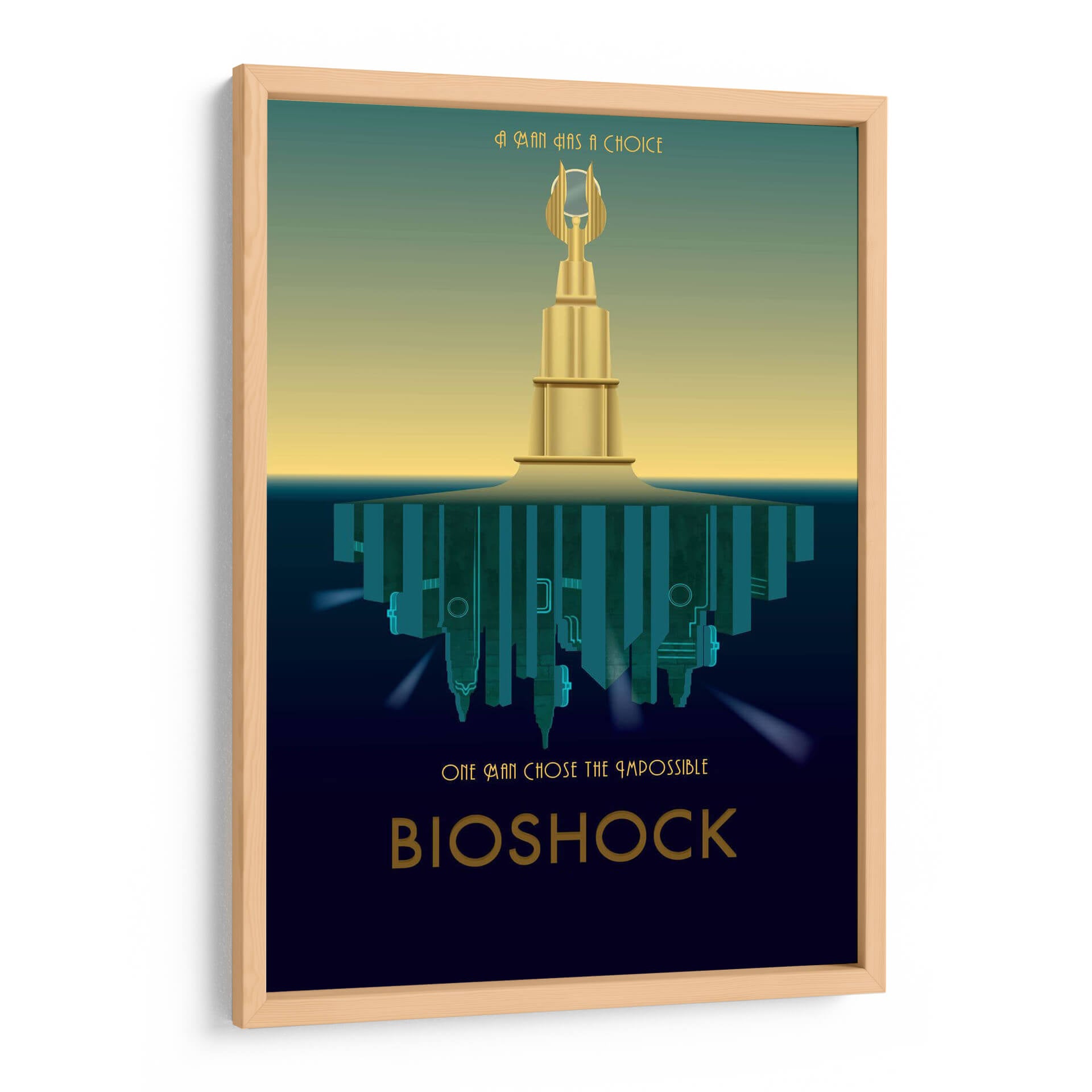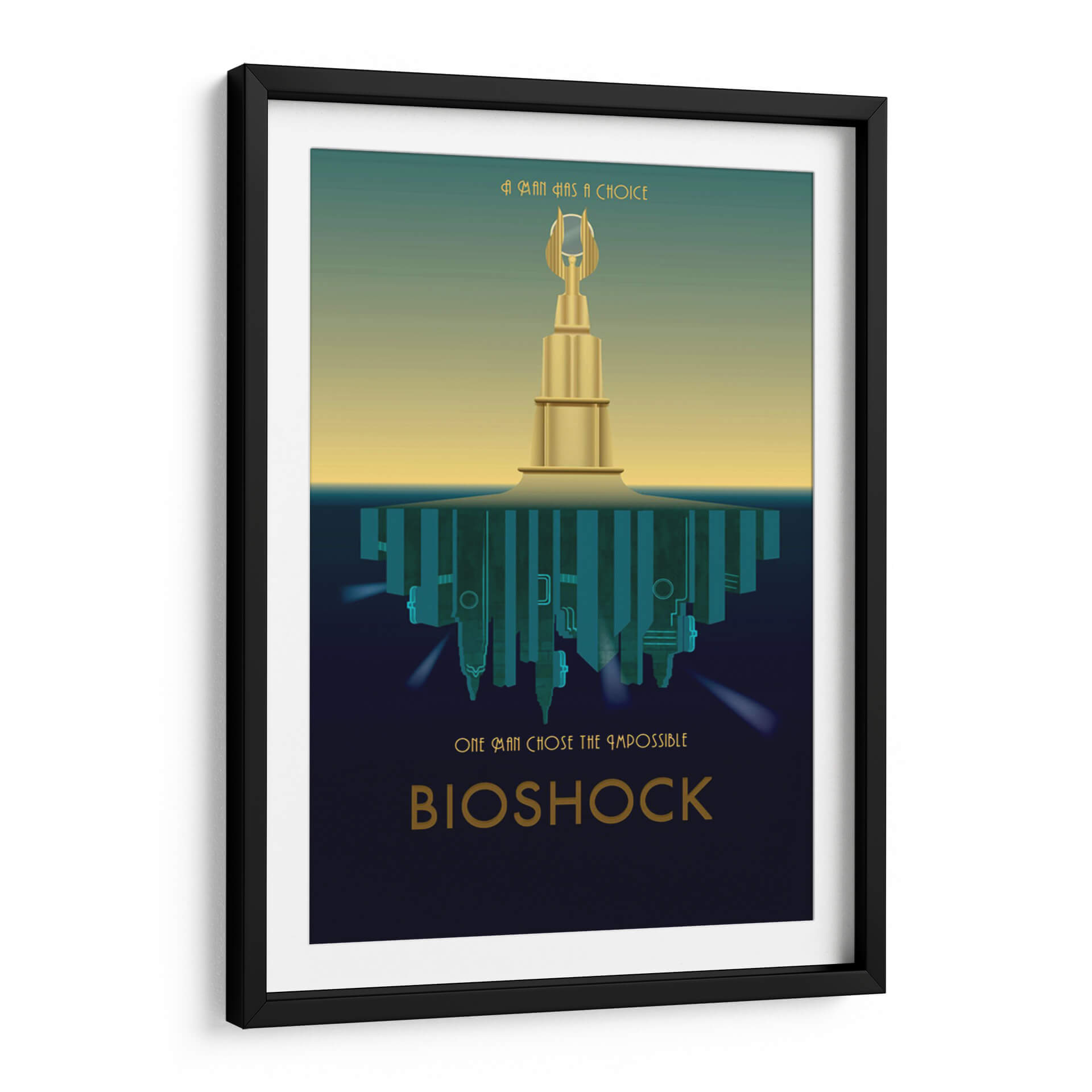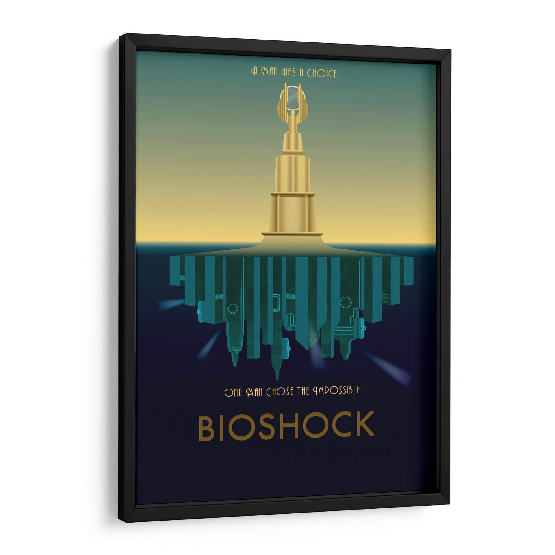 Sumérgete en la atmósfera única de 'A Man Has a Choice', una obra de arte digital que captura la esencia de una ciudad utópica y a la vez distópica suspendida en el horizonte. Con una paleta de colores que transita del verde azulado al amarillo cálido, esta pieza evoca una sensación de misterio y aspiración. La composición presenta una estructura dorada icónica en la parte superior, que se eleva sobre una ciudad futurista sumergida en la oscuridad, iluminada por tenues rayos de luz. El estilo gráfico, con líneas limpias y un aire retrofuturista, lo convierte en un cuadro decorativo ideal para aquellos que aprecian el diseño conceptual y las narrativas visuales complejas. Perfecto para salas de estar modernas, oficinas o cualquier espacio que busque un toque de intriga intelectual y elegancia visual. Este cuadro decorativo no solo embellece tu pared, sino que también invita a la reflexión sobre las decisiones y sus consecuencias, añadiendo profundidad a tu decoración. Una pieza inspirada en el mundo de Bioshock que resonará con los aficionados a los videojuegos y al arte conceptual. Añade un toque de arte de pared distintivo a tu hogar u oficina y convierte cualquier habitación en una galería personal con esta impactante obra.