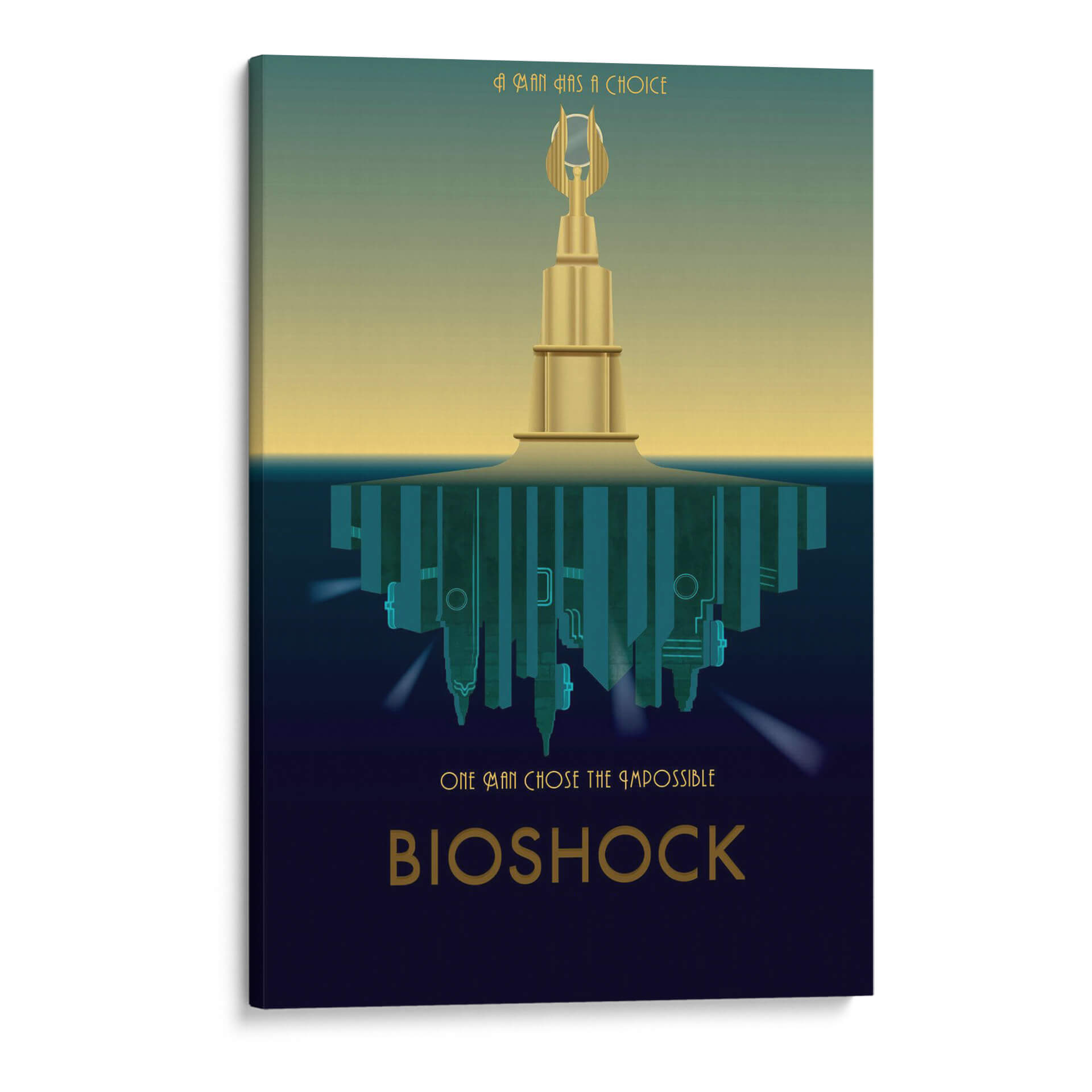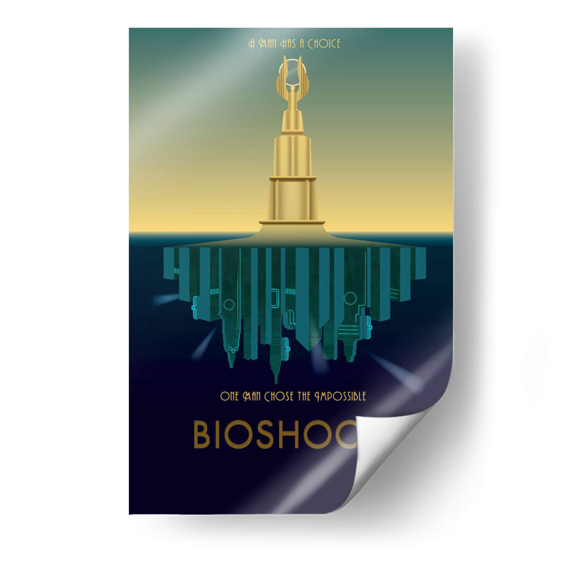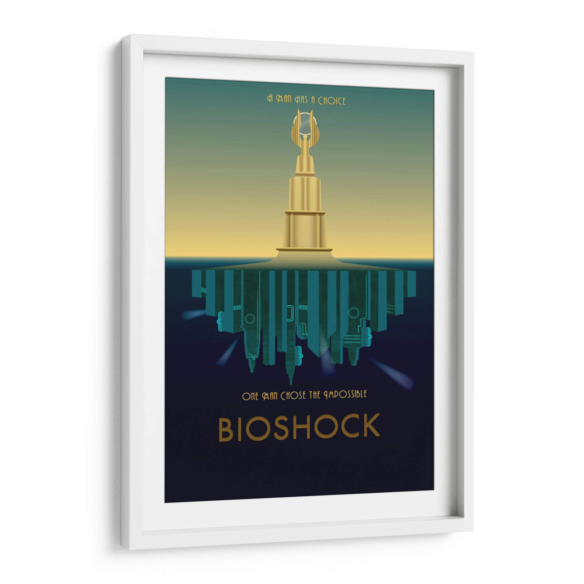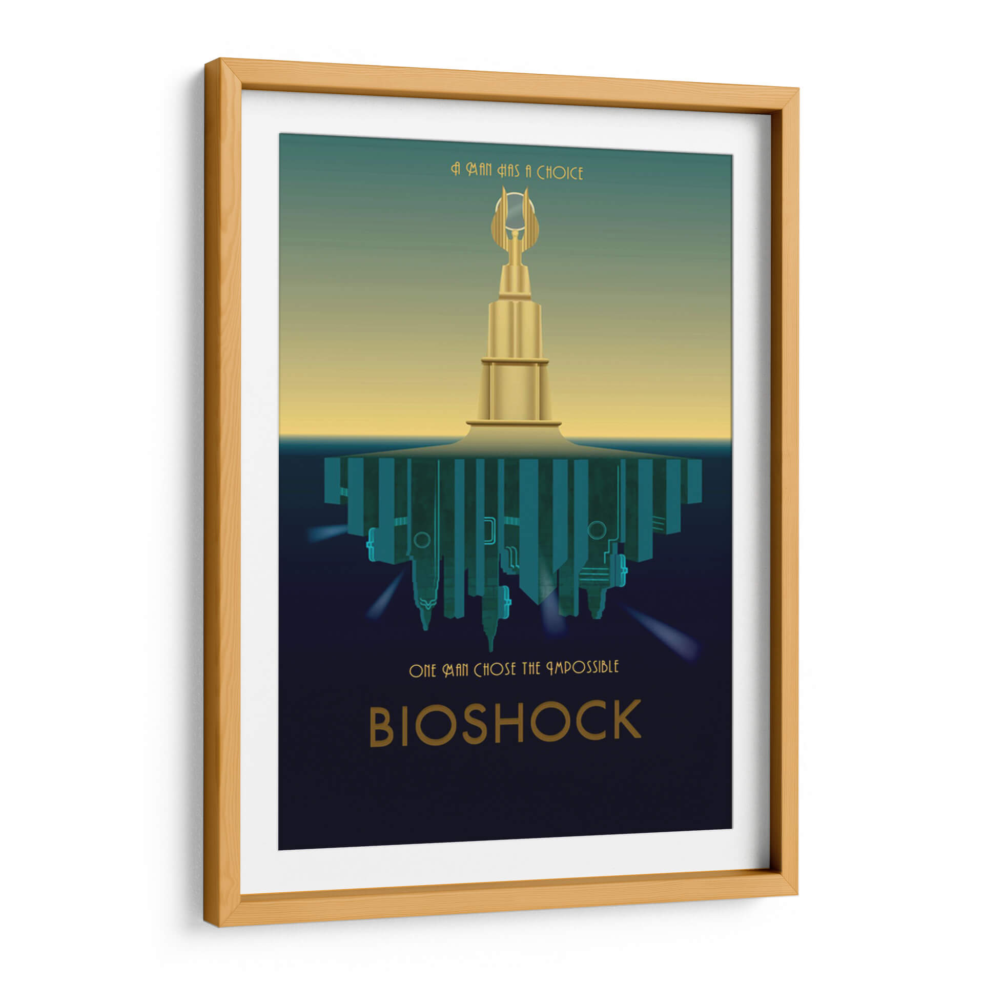 Sumérgete en la atmósfera única de 'A Man Has a Choice', una obra de arte digital que captura la esencia de una ciudad utópica y a la vez distópica suspendida en el horizonte. Con una paleta de colores que transita del verde azulado al amarillo cálido, esta pieza evoca una sensación de misterio y aspiración. La composición presenta una estructura dorada icónica en la parte superior, que se eleva sobre una ciudad futurista sumergida en la oscuridad, iluminada por tenues rayos de luz. El estilo gráfico, con líneas limpias y un aire retrofuturista, lo convierte en un cuadro decorativo ideal para aquellos que aprecian el diseño conceptual y las narrativas visuales complejas. Perfecto para salas de estar modernas, oficinas o cualquier espacio que busque un toque de intriga intelectual y elegancia visual. Este cuadro decorativo no solo embellece tu pared, sino que también invita a la reflexión sobre las decisiones y sus consecuencias, añadiendo profundidad a tu decoración. Una pieza inspirada en el mundo de Bioshock que resonará con los aficionados a los videojuegos y al arte conceptual. Añade un toque de arte de pared distintivo a tu hogar u oficina y convierte cualquier habitación en una galería personal con esta impactante obra.
