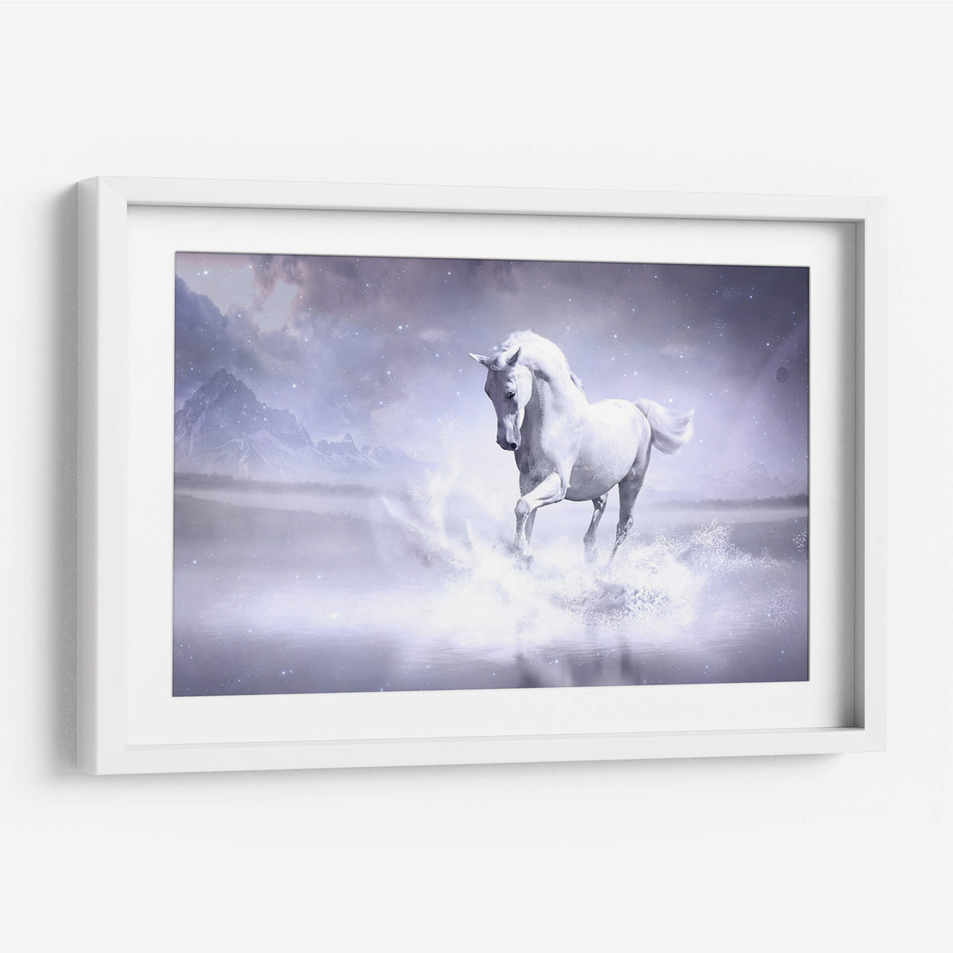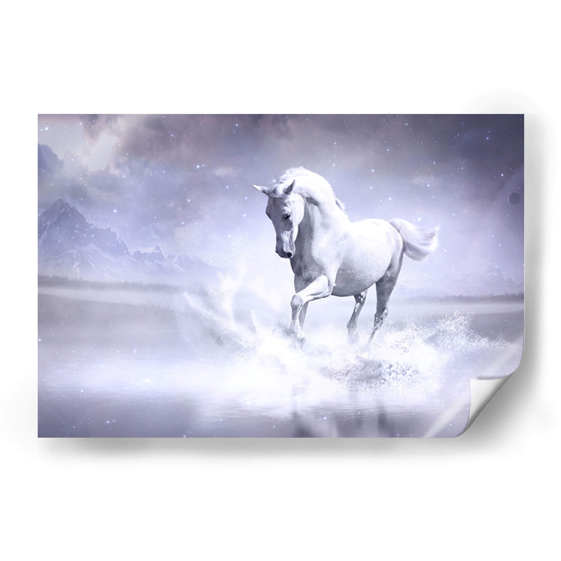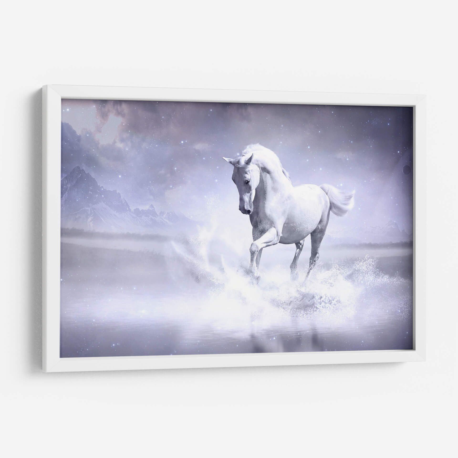 Sumérgete en un universo onírico con "Caballo Blanco en su Universo", una obra de arte digital que captura la majestuosidad y la fuerza de un corcel blanco en pleno galope a través de aguas etéreas. Los tonos fríos y el vibrante contraste entre la pureza del caballo y el místico fondo estrellado crean una atmósfera de ensueño y libertad. Las montañas nevadas y el cielo salpicado de estrellas añaden un toque de fantasía, haciendo de esta pieza un elemento decorativo cautivador para cualquier espacio que busque serenidad y un toque de magia. Los detalles de las salpicaduras de agua, capturadas en el momento justo, transmiten una sensación de dinamismo y poder indomable. Ideal para salones modernos, dormitorios que invitan al descanso o estudios que inspiren creatividad, este cuadro decorativo es una invitación a soñar despierto y a conectar con la energía pura de la naturaleza y el cosmos. Su estilo digital y su composición dinámica lo convierten en un punto focal que atraerá miradas y conversaciones, aportando una sensación de paz y asombro a tu decoración.