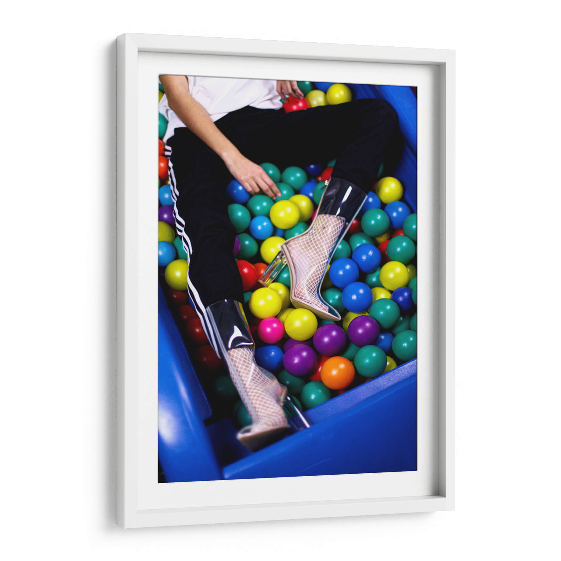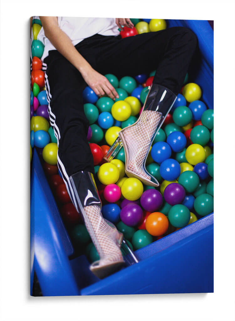 Sumérgete en un universo de color y fantasía con este vibrante cuadro decorativo "Color Balls". La obra presenta una composición lúdica y audaz, donde esferas de vivos colores como el amarillo, azul, verde, rojo y púrpura crean un telón de fondo dinámico. En medio de esta explosión cromática, se vislumbran las piernas de una persona vestida con pantalones deportivos negros y unos originales botines transparentes con rejilla, añadiendo un toque de modernidad y misterio a la escena. La juxtaposición del estilo urbano y juguetón invita a la reflexión sobre la infancia, la libertad y la expresión personal. Este cuadro decorativo es perfecto para añadir un toque de alegría y originalidad a cualquier espacio, desde una sala de estar contemporánea hasta un estudio creativo o una habitación juvenil. Su estilo abstracto y la energía que emana lo convierten en una pieza versátil, capaz de transformar un ambiente y capturar la atención de tus invitados, generando conversaciones y sonrisas. Ideal para quienes buscan romper con lo convencional y rodearse de arte que inspire vitalidad y optimismo.