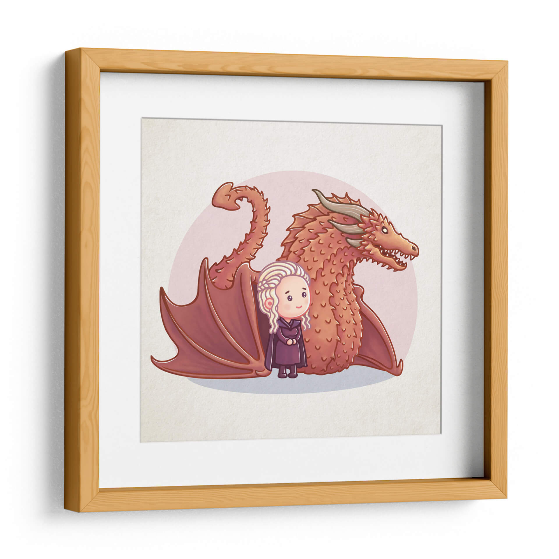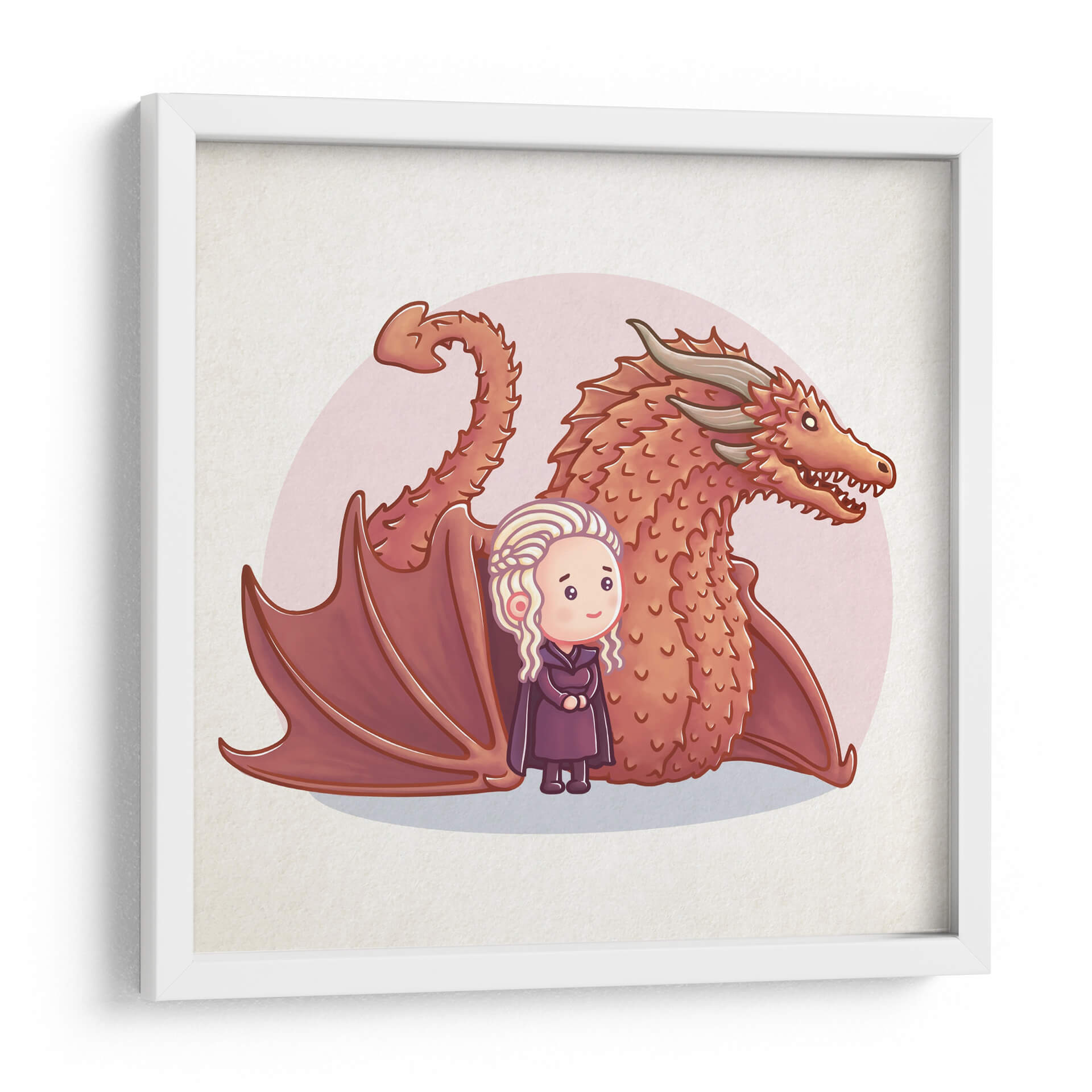 Embárcate en una aventura fantástica con este cautivador cuadro decorativo que presenta un diseño encantador de un dragón rojo y su madre. La obra de arte, con un estilo de ilustración digital adorable y amigable, captura la esencia de una relación tierna y poderosa. Los colores vibrantes del dragón, dominados por tonos rojizos y naranjas, contrastan maravillosamente con el suave tono rosado del fondo circular, creando una composición visualmente atractiva y armoniosa. La figura humana, con su peinado trenzado característico y vestimenta oscura, irradia una dulzura inocente que complementa la majestuosidad del dragón. Este cuadro es perfecto para añadir un toque de magia y calidez a cualquier espacio, ya sea una habitación infantil, una sala de juegos o un rincón acogedor en tu hogar. Su estilo único lo convierte en un punto focal encantador que evoca fantasía y protección, ideal para los amantes de las historias épicas y las criaturas míticas. Transforma tu pared en un portal a un mundo de imaginación con esta pieza de arte mural que celebra la conexión y la aventura.