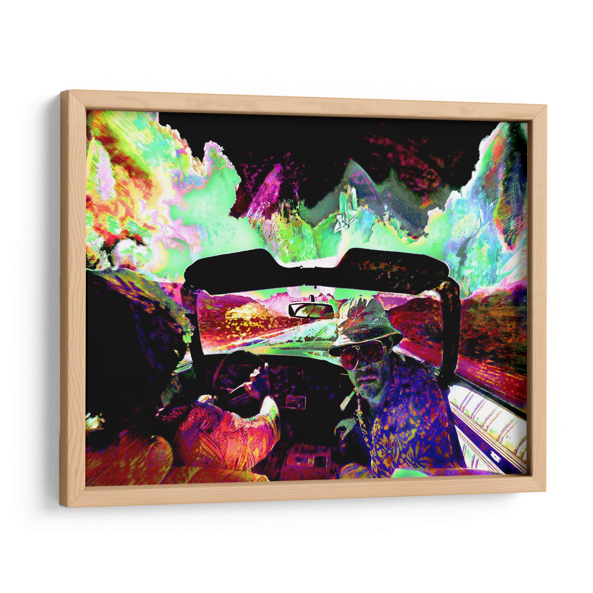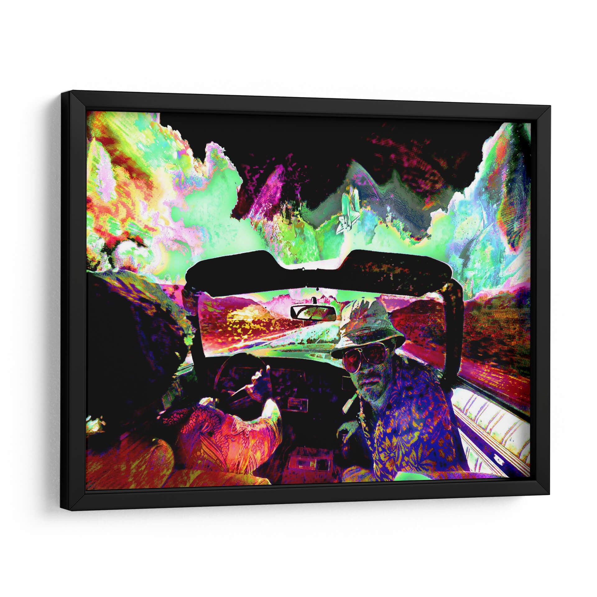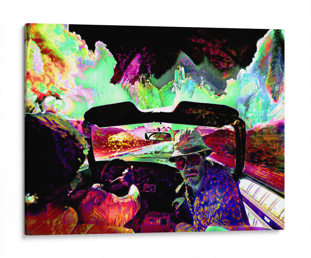 Sumérgete en la intensidad psicodélica de "Pánico y locura a todo color", un cuadro decorativo que captura la esencia de un viaje salvaje y desinhibido. Esta obra maestra visual te transporta al asiento del conductor de un automóvil, rodeado por un torbellino de colores vibrantes y formas abstractas que distorsionan la realidad. La paleta cromática, dominada por tonos eléctricos de verde, rosa, amarillo y azul, crea una atmósfera de caos controlado y euforia. La composición, con su perspectiva inmersiva, te invita a ser parte de la experiencia, mientras que la figura central, con su mirada intensa y vestimenta llamativa, añade un toque de misterio y carisma.