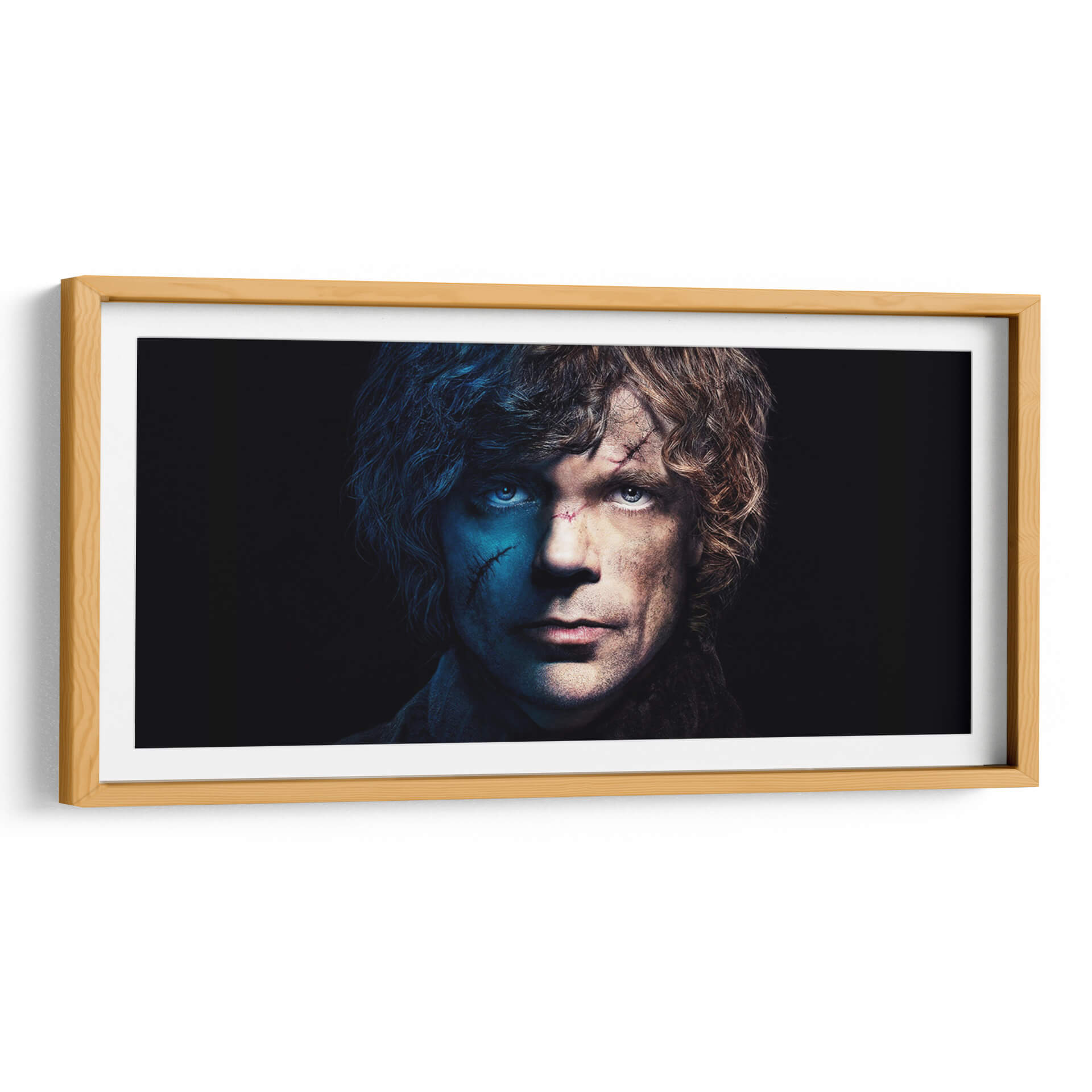 Sumérgete en la intensidad de este impactante cuadro decorativo que captura la esencia de un personaje icónico. La obra presenta un primer plano de un rostro masculino marcado por la experiencia, iluminado de forma dramática por un contraste de luces azules y tonos terrosos. La mitad izquierda del rostro se baña en un azul profundo y frío, acentuando la mirada penetrante y las cicatrices que recorren su piel, sugiriendo misterio y resistencia. En contraste, la mitad derecha se revela con una iluminación más cálida y natural, mostrando detalles de textura y expresión que invitan a la reflexión sobre la dualidad del personaje. El fondo oscuro y minimalista dirige toda la atención hacia el rostro, creando una atmósfera de introspección y poder. Este cuadro decorativo es perfecto para añadir un toque de carácter y sofisticación a tu salón, estudio u oficina. Su diseño audaz y la paleta de colores contrastantes lo convierten en una pieza central que no pasará desapercibida, ideal para amantes del arte con una inclinación por lo dramático y lo enigmático.