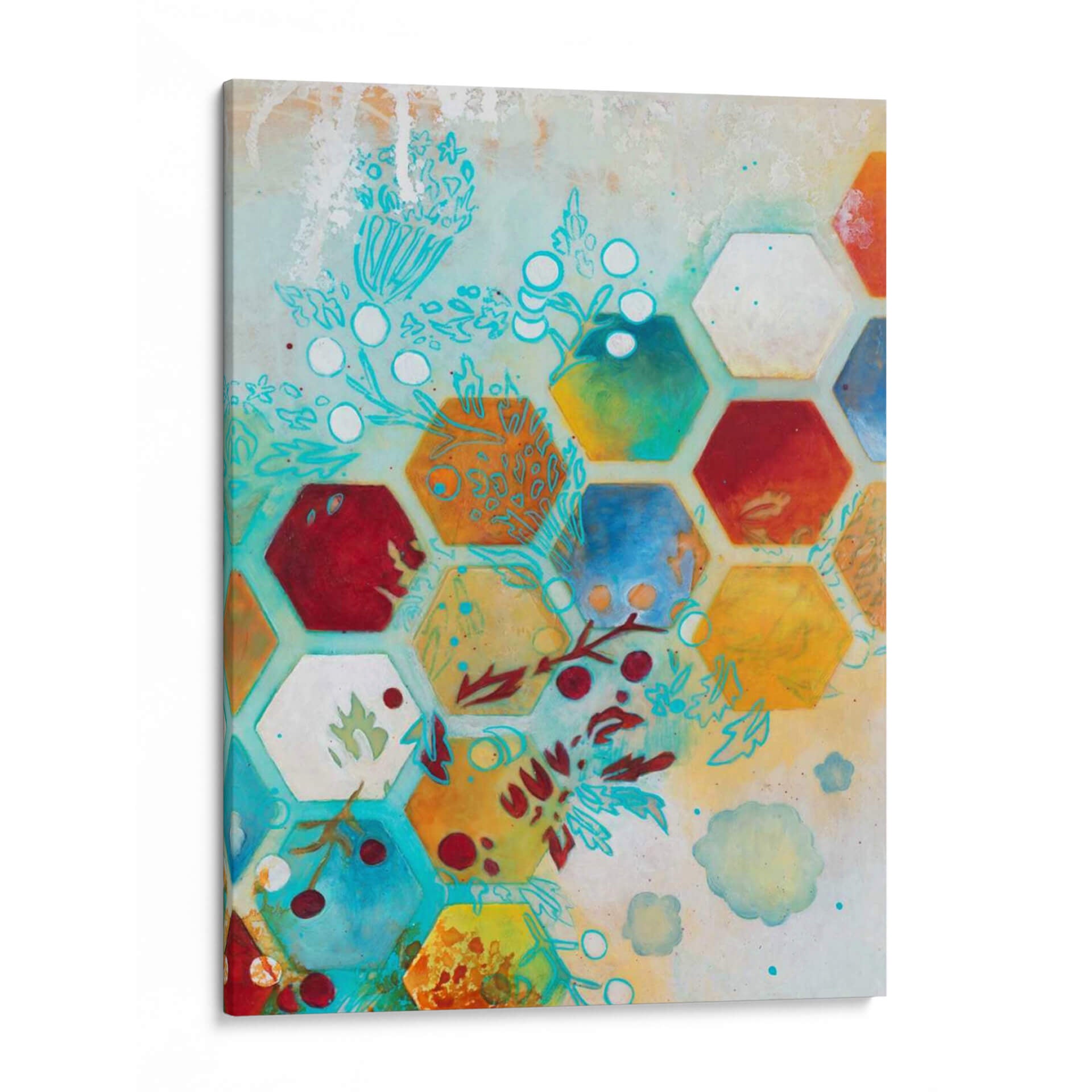 Sumérgete en la vibrante y cautivadora obra 'Aflutter Ii' de Heather Robinson, una pieza que evoca la belleza de la naturaleza a través de una lente contemporánea y abstracta. Este cuadro decorativo presenta una fascinante composición de hexágonos interconectados, cada uno relleno con una explosión de colores que varían desde profundos azules y rojos hasta cálidos amarillos y naranjas. Las delicadas líneas turquesas que serpentean por el lienzo, junto con sutiles motivos florales y salpicaduras de acuarela, añaden una capa de profundidad y movimiento, sugiriendo un mundo orgánico en constante efervescencia. La paleta de colores, rica y armoniosa, crea una atmósfera dinámica pero equilibrada, perfecta para infundir vida y carácter a cualquier espacio. 'Aflutter Ii' es ideal para aquellos que buscan añadir un toque de arte moderno y expresivo a su hogar u oficina, funcionando como un punto focal cautivador en salas de estar, estudios o comedores. Deja que esta obra maestra inspire conversaciones y añada una dimensión única a tu decoración, celebrando la conexión entre la forma geométrica y la fluidez de lo natural.