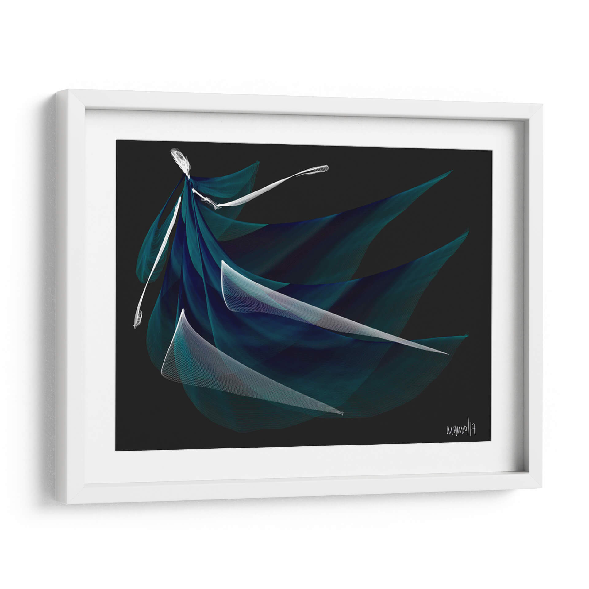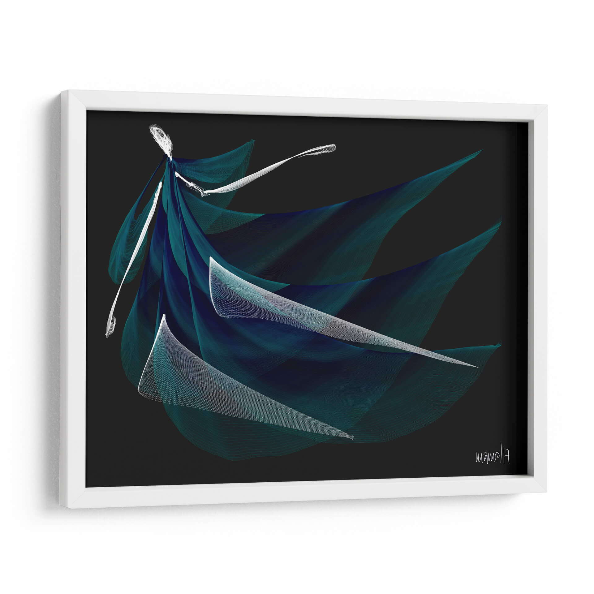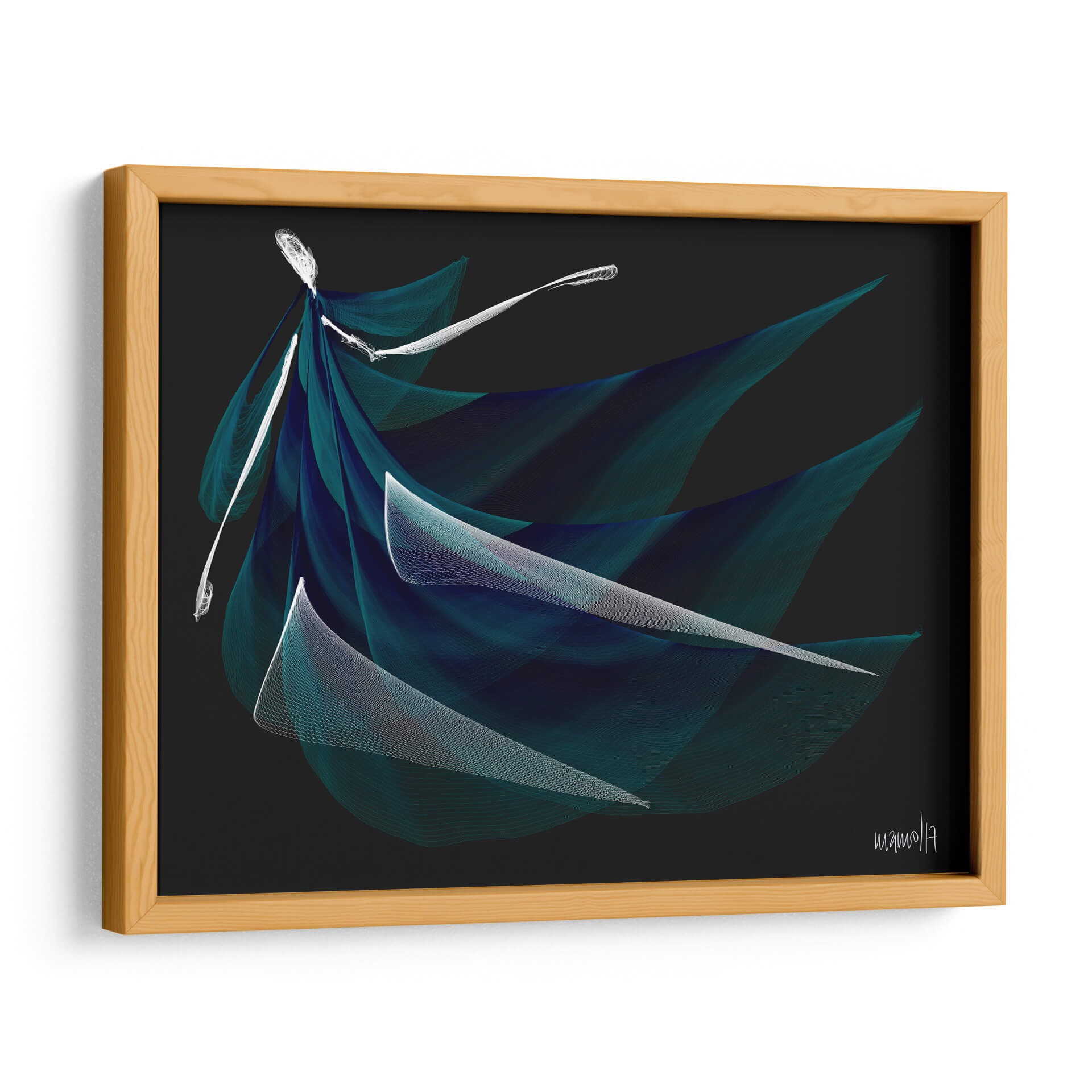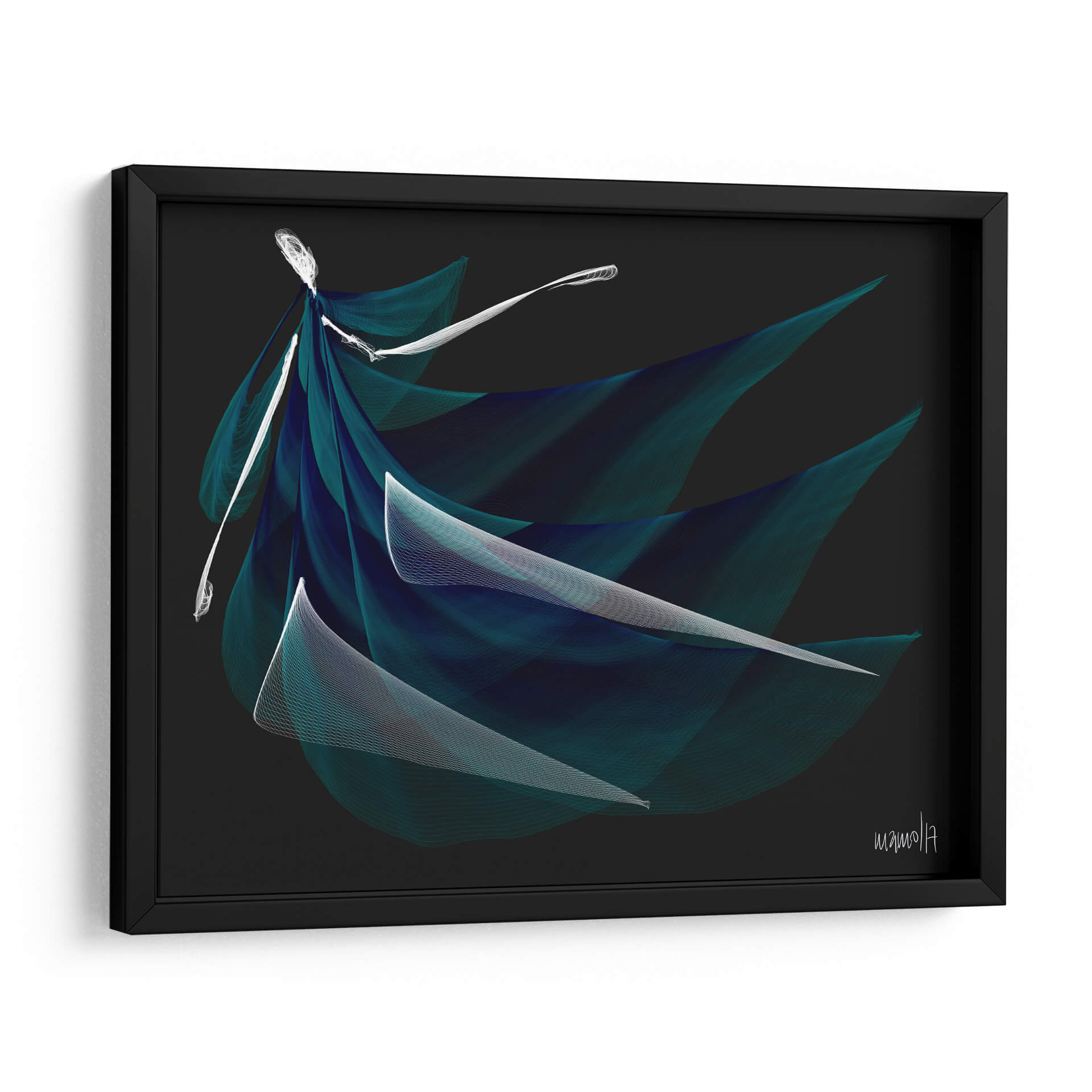 Captura la esencia del movimiento etéreo con "Ángel Volando", una obra maestra contemporánea de Gina Villalobos. Esta pieza hipnótica presenta una figura estilizada, casi abstracta, que parece emerger de un torbellino de telas fluidas en tonos profundos de azul verdoso y turquesa. La técnica digital crea un efecto de ligereza y transparencia, con líneas finas y luminosas que contrastan sobre un fondo oscuro, evocando una sensación de misterio y trascendencia. La composición dinámica invita la mirada a seguir el vuelo de la figura, sugiriendo libertad, gracia y una espiritualidad serena. "Ángel Volando" es una adición perfecta para quienes buscan infundir a su hogar u oficina una atmósfera de calma y sofisticación moderna. Ideal para salas de estar, dormitorios o espacios de meditación, esta obra transformará cualquier ambiente, añadiendo un toque de elegancia contemporánea y una conexión visual que inspira la imaginación.