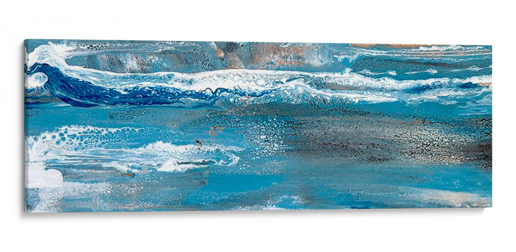 Sumérgete en la serenidad y la fuerza del océano con 'Azul Pacífico II', una cautivadora obra de arte abstracto de Lila Bramma. Este cuadro decorativo captura la esencia dinámica de las olas y las profundidades marinas a través de una paleta de azules vibrantes, blancos espumosos y toques de gris y ocre que evocan la textura y el movimiento del agua. Su estilo abstracto y fluidas pinceladas crean una composición hipnótica que invita a la contemplación, transformando cualquier espacio en un remanso de paz y sofisticación. Ideal para salones modernos, dormitorios que buscan calma o estudios que necesitan inspiración, 'Azul Pacífico II' es más que una decoración; es una ventana a la inmensidad y la belleza natural. Los detalles texturizados y el juego de luces y sombras añaden profundidad y un interés visual cautivador, haciendo de esta pieza un punto focal inolvidable. Añade un toque de elegancia contemporánea y la tranquilidad del mar a tu hogar u oficina con este impresionante cuadro decorativo.