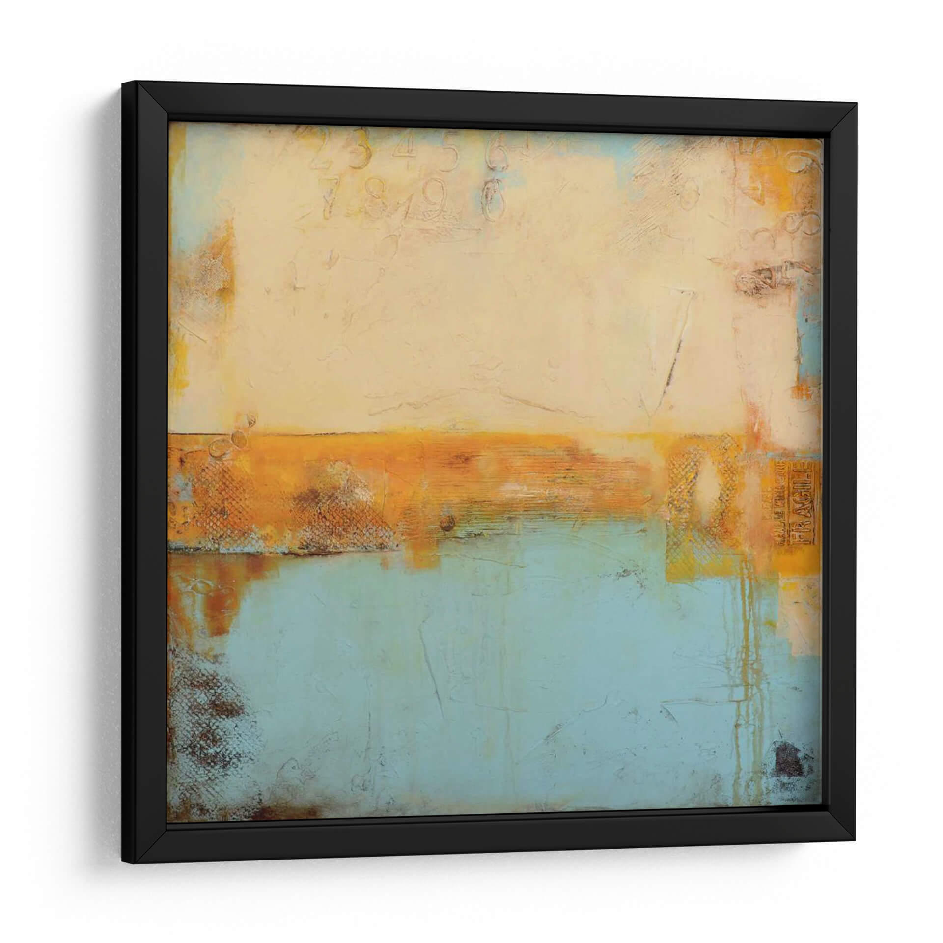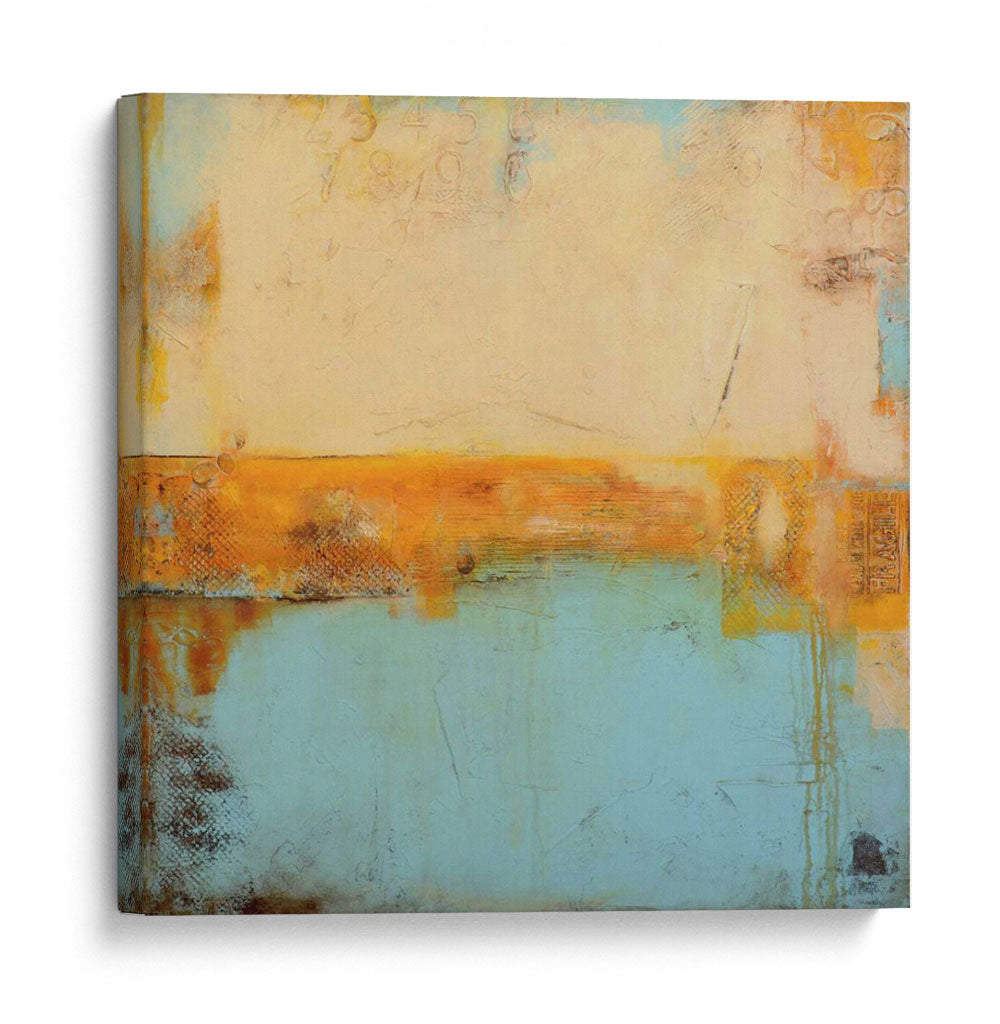 Sumérgete en la serena belleza de "Bahía De Los Signos", una cautivadora obra de arte abstracto de Erin Ashley. Esta pieza evoca la tranquilidad de un paisaje costero con sus suaves tonos azulados y naranjas cálidos, creando una atmósfera de calma y reflexión. La composición se divide en planos horizontales, con una banda vibrante de naranja y texturas ricas que actúan como un horizonte evocador, separando un cielo etéreo de un mar sereno. Los sutiles toques de números y símbolos integrados en la textura añaden una capa de intriga y profundidad, invitando al espectador a descifrar sus propios significados. Este cuadro decorativo es perfecto para cualquier espacio que busque un toque de sofisticación y paz, como un salón moderno, un tranquilo dormitorio o una oficina inspiradora. Su paleta de colores versátil y su estilo abstracto contemporáneo lo convierten en una adición versátil y atemporal a tu decoración.