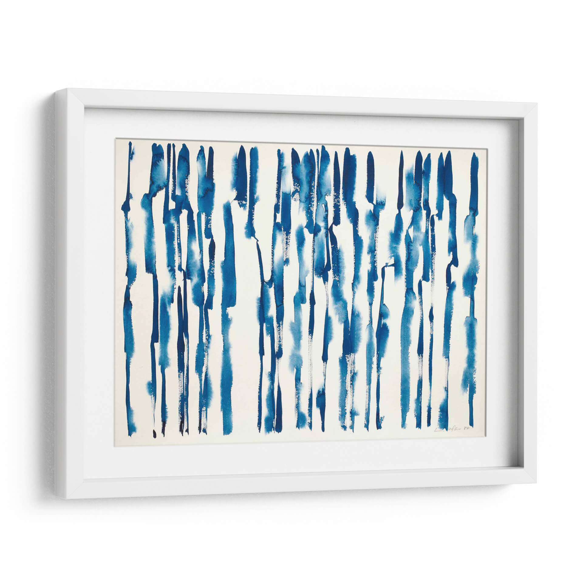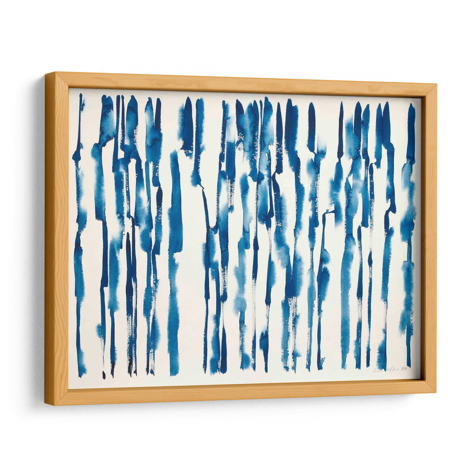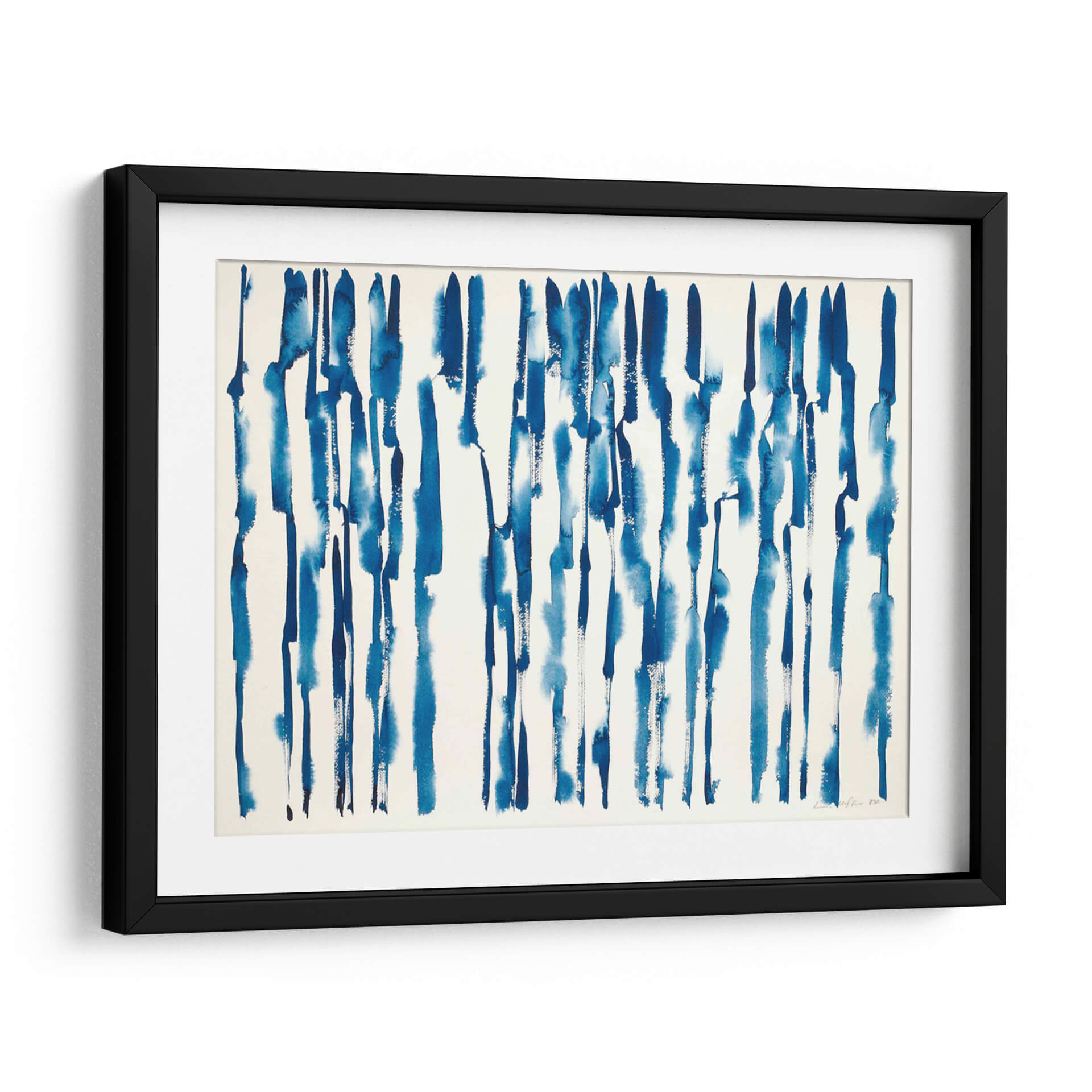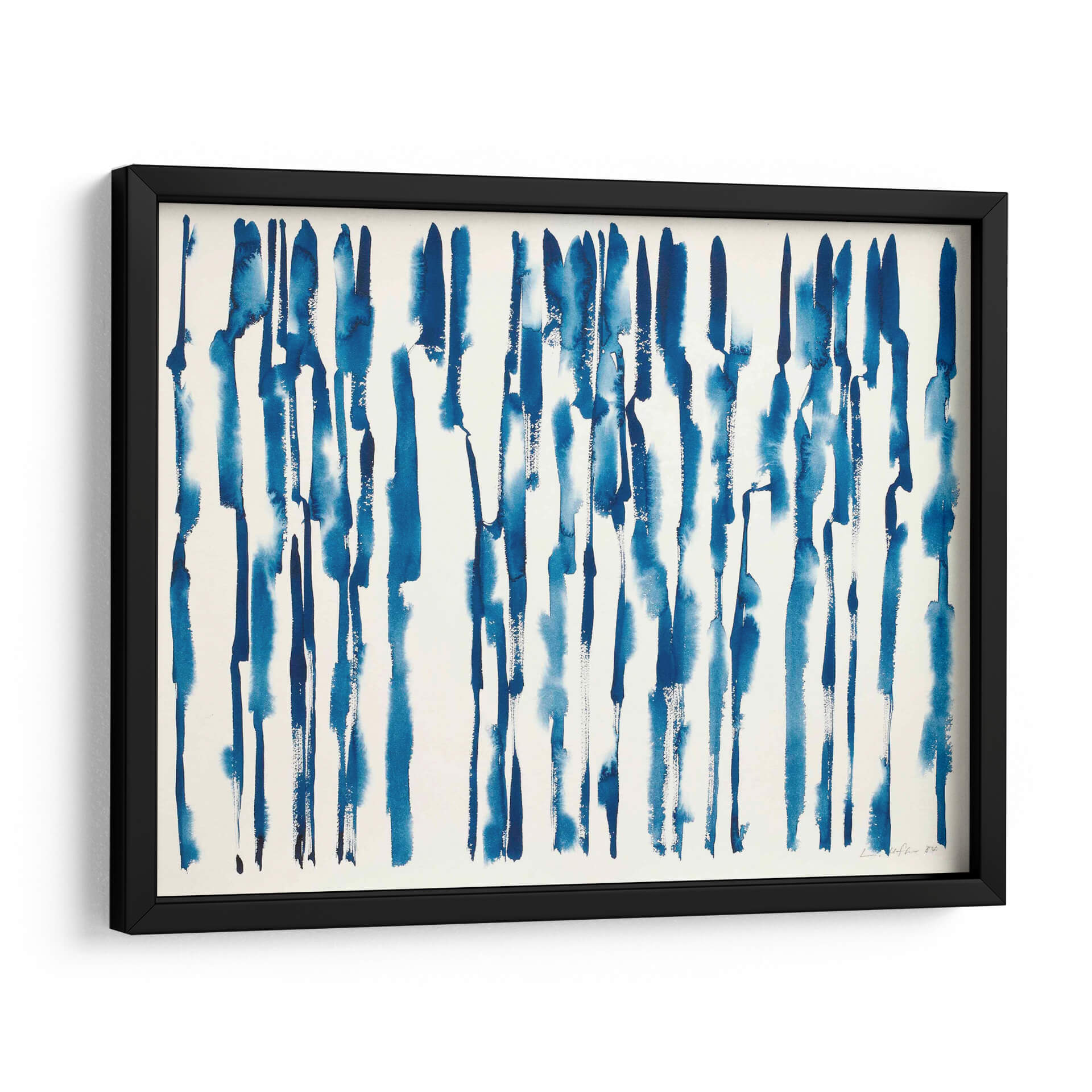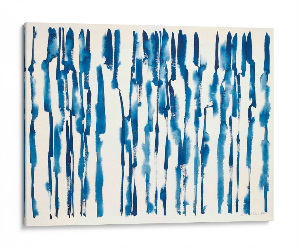 Sumérgete en la serenidad y el dinamismo de "Blum and Poe" de Lee Ufan, una obra de arte contemporáneo que redefine la elegancia minimalista. Este cuadro decorativo presenta una cautivadora composición de vibrantes pinceladas verticales en tonos de azul intenso sobre un fondo neutro y luminoso. Las líneas, que varían en grosor y transparencia, evocan la sensación de lluvia sutil o la textura de elementos naturales como bambú o cañas, creando una profundidad visual y un ritmo hipnótico. La paleta de azules profundos aporta una sensación de calma y contemplación, mientras que el contraste con el blanco roto genera una atmósfera de pureza y amplitud. Ideal para espacios que buscan un toque de sofisticación y tranquilidad, como salones modernos, estudios de meditación o dormitorios serenos. Su estilo abstracto y gestual permite múltiples interpretaciones, invitando a la reflexión personal y añadiendo un punto focal artístico que inspira paz y claridad. Este lienzo es una pieza clave para quienes aprecian el arte abstracto contemporáneo y buscan infundir a sus hogares una sensación de orden y belleza natural. Añade una dimensión de serenidad y estilo a tu decoración con esta exquisita obra.