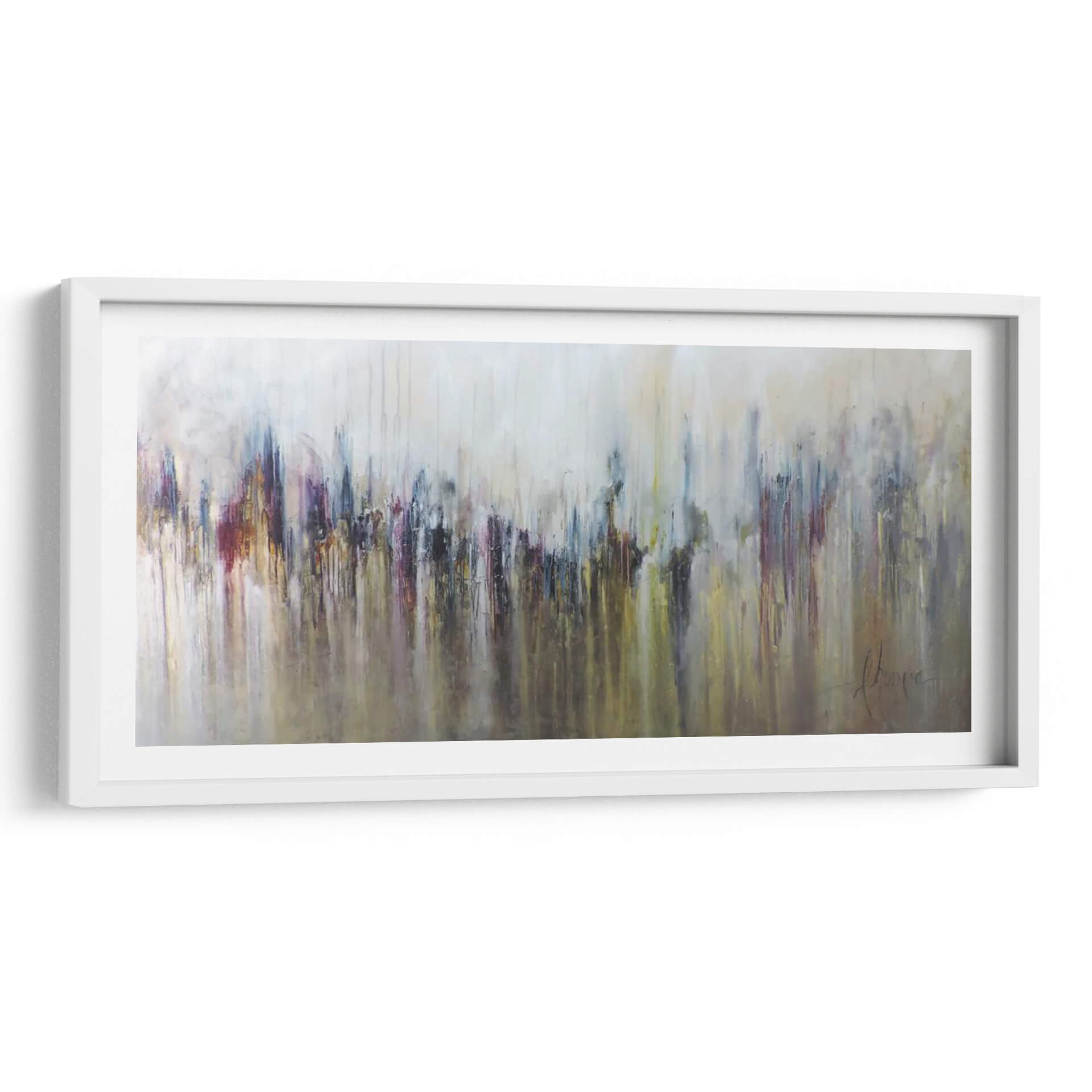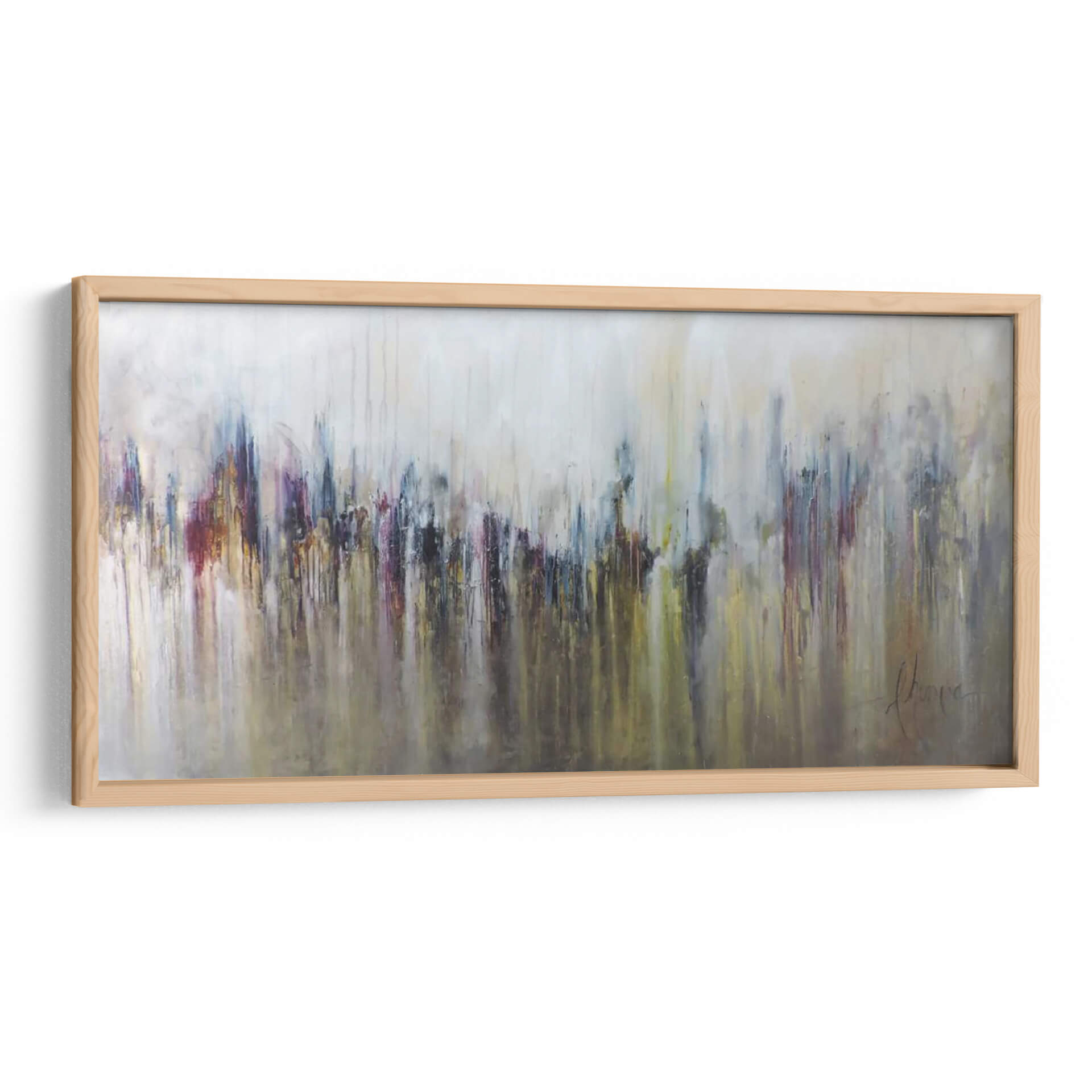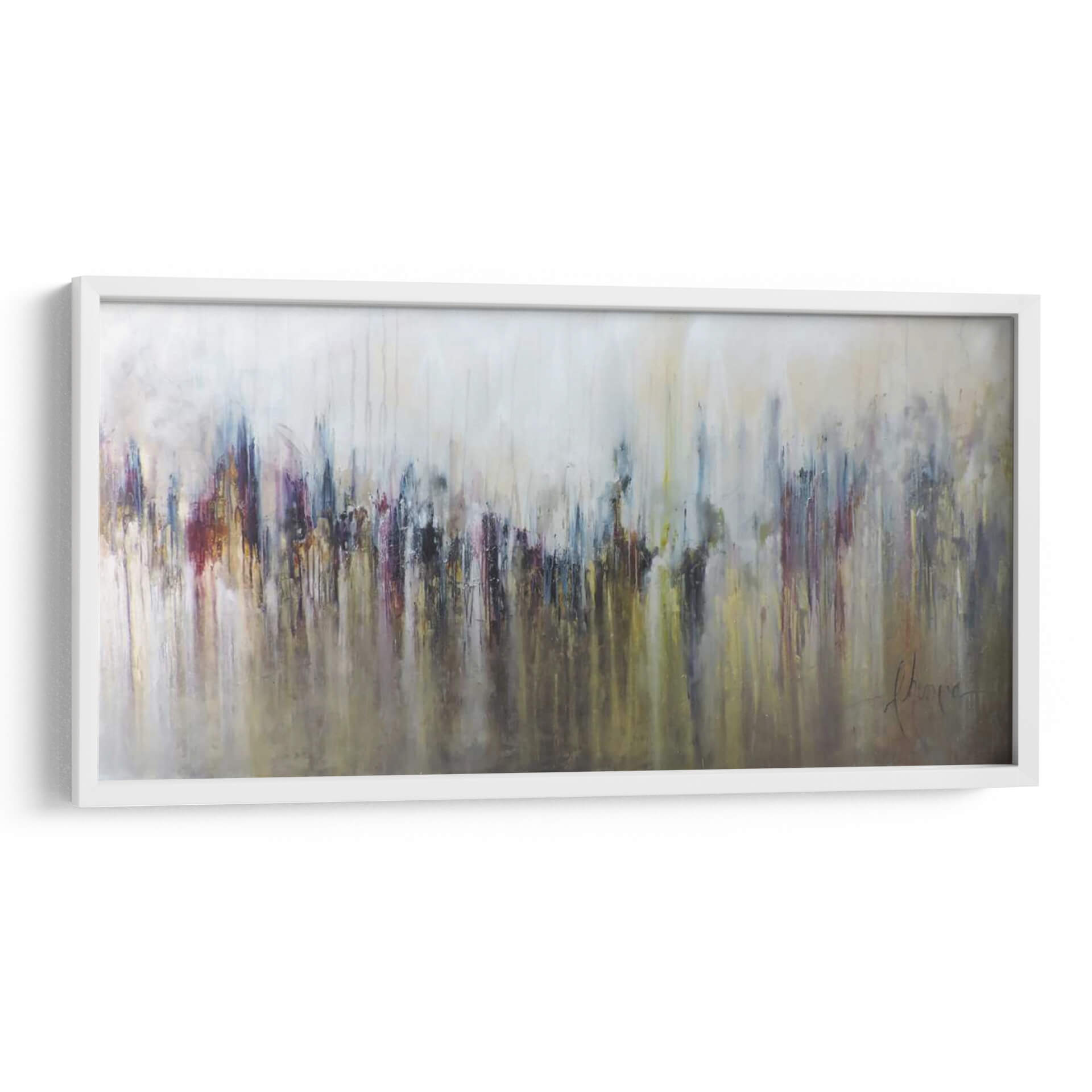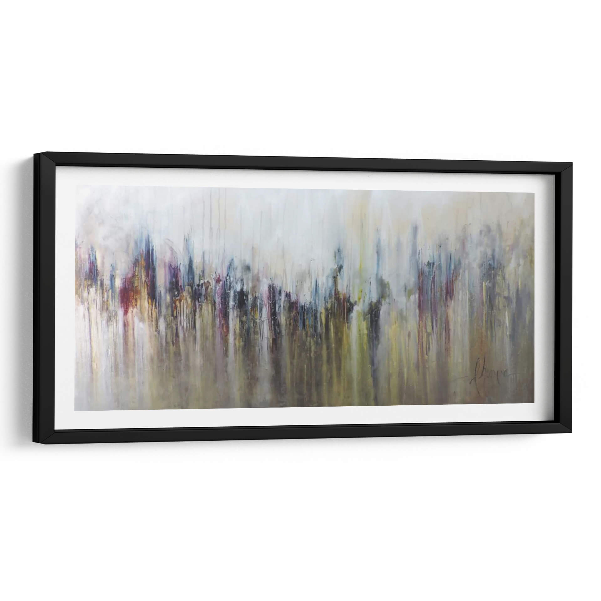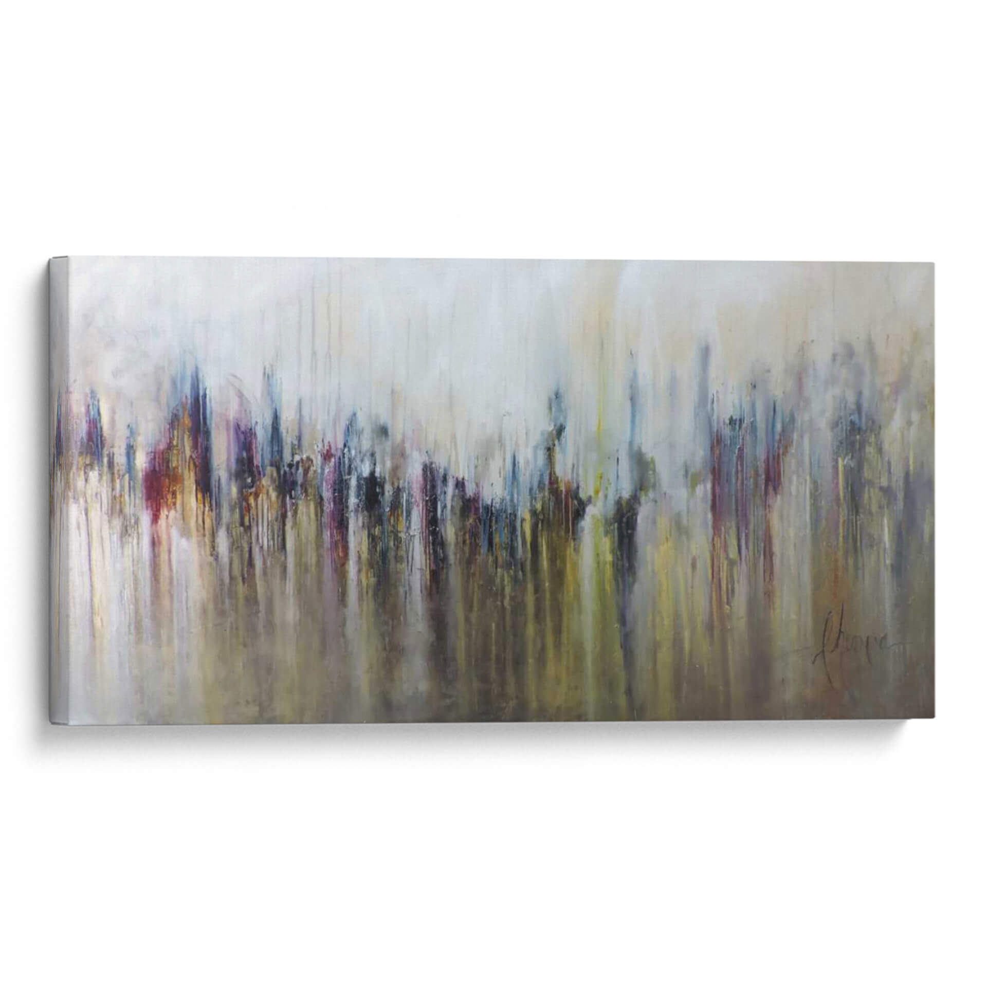 Sumérgete en la cautivadora abstracción de "Cascada Metálica" de Leticia Herrera, una obra que evoca la fuerza y la fluidez de la naturaleza con un toque moderno. Este cuadro decorativo se caracteriza por su técnica de goteo y pinceladas que crean una sensación de movimiento descendente, similar a una cascada. La paleta de colores, dominada por tonos metálicos, grises, ocres y toques vibrantes de burdeos y azul profundo, aporta una sofisticación industrial y a la vez orgánica a la pieza. Las formas abstractas, que sugieren una silueta urbana o una formación rocosa estilizada, invitan a la interpretación personal, permitiendo que cada espectador conecte con la obra a un nivel único. La composición es dinámica, con una base más oscura y densa que se difumina hacia un fondo más claro y etéreo, creando profundidad y equilibrio visual. Ideal para espacios que buscan un punto focal audaz pero elegante, como salas de estar contemporáneas, oficinas ejecutivas o recibidores. "Cascada Metálica" no es solo una decoración, sino una experiencia visual que infunde energía y refinamiento. Añade un toque de arte contemporáneo que inspire y eleve tu entorno, transformando cualquier pared en una declaración de estilo y personalidad. La obra de Leticia Herrera es una invitación a contemplar la fusión entre lo industrial y lo natural, lo abstracto y lo tangible, en una danza de texturas y colores.