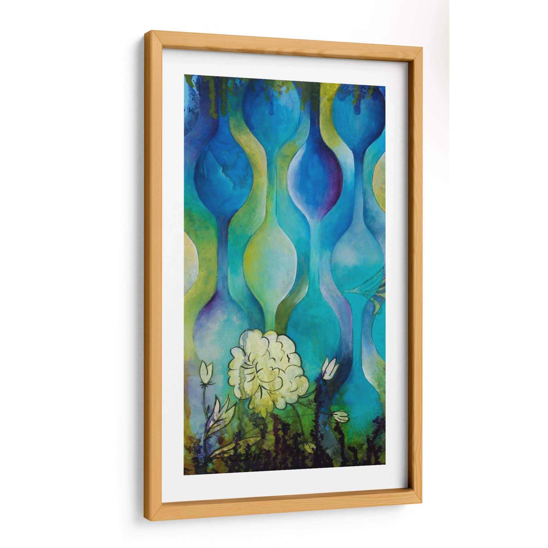 Sumérgete en la serenidad acuática con "Chinches De Estanque I", una obra de arte original de Heather Robinson que captura la esencia de un ecosistema acuático vibrante y sereno. Esta pieza se caracteriza por su cautivadora paleta de azules profundos y verdes turquesa, con toques sutiles de amarillo y púrpura que añaden profundidad y dinamismo. La composición presenta una serie de formas orgánicas y fluidas que recuerdan a tallos o flores sumergidas, creando un patrón rítmico y cautivador. En la parte inferior, un delicado arreglo de flores blancas y follaje oscuro contrasta con el fondo acuático, aportando un punto focal de ternura y vida. El estilo abstracto y expresionista de Robinson invita a la contemplación, evocando una sensación de calma, misterio y la belleza oculta del mundo natural. Este cuadro decorativo es ideal para transformar cualquier espacio, ya sea una sala de estar moderna, un sereno dormitorio o un inspirador estudio, en un oasis de tranquilidad y sofisticación. Añade un toque de naturaleza abstracta y contemporánea a tu hogar con esta pieza única, perfecta para aquellos que buscan arte que hable al alma y embellezca su entorno con una atmósfera de paz y elegancia acuática. Descubre la magia del estanque a través de la visión artística de Heather Robinson.