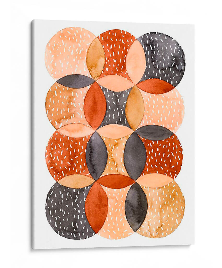 Sumérgete en la cautivadora obra 'Diapositiva De Barro I' de Grace Popp, una pieza que redefine la decoración de interiores con su enfoque abstracto y geométrico. Esta composición vibrante presenta una superposición de círculos en tonos tierra cálidos, que evocan la riqueza del barro y la calidez de la arcilla. Cada círculo está sutilmente texturizado con delicados trazos blancos, añadiendo una dimensión táctil y visual que invita a la contemplación. El diseño geométrico, con sus formas circulares entrelazadas, crea un patrón rítmico y dinámico que atrae la mirada y genera una sensación de orden y armonía. Ideal para espacios que buscan un toque de sofisticación moderna y terrenal, este cuadro decorativo es perfecto para salones, comedores o estudios, aportando una energía sutil pero impactante. Su paleta de colores, dominada por naranjas quemados, marrones profundos y toques de gris carbón, se integra fácilmente en diversas decoraciones, desde lo rústico hasta lo contemporáneo. 'Diapositiva De Barro I' no es solo una obra de arte, es una invitación a experimentar la belleza de la abstracción geométrica y la calidez de los elementos naturales en tu propio hogar.