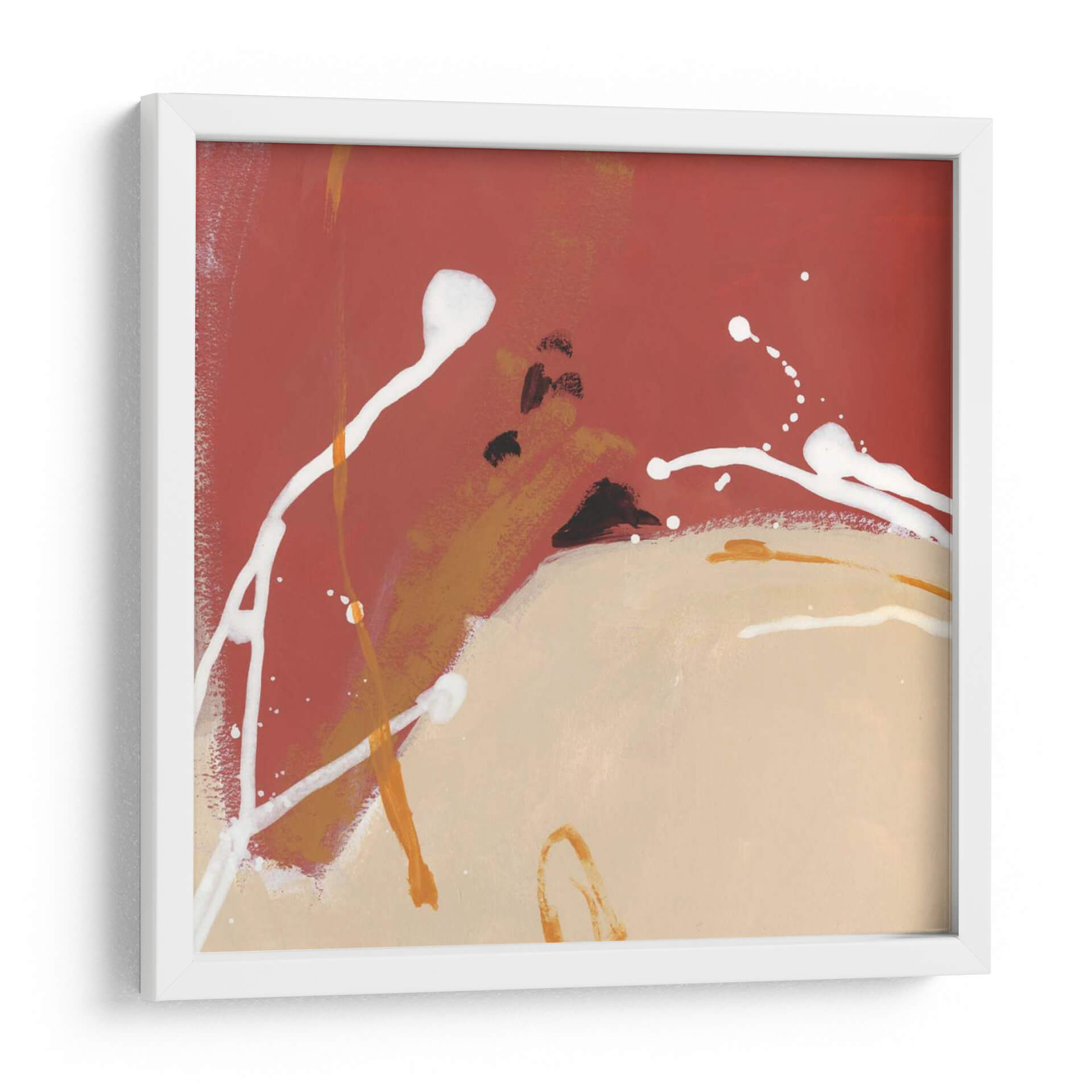 Sumérgete en la energía vibrante de "Dinámica Molecular II", una obra de arte abstracto contemporáneo de June Erica Vess. Esta pieza evoca una sensación de movimiento y fluidez a través de su audaz paleta de colores, dominada por tonos rojizos profundos que contrastan con pinceladas enérgicas de blanco puro, ocres terrosos y sutiles toques de naranja. Las formas orgánicas y las salpicaduras dinámicas crean una composición visualmente cautivadora que invita a la interpretación. Es una pieza ideal para inyectar vida y carácter a cualquier espacio, ya sea una sala de estar moderna, un estudio creativo o una oficina que busque inspirar. El estilo abstracto permite que "Dinámica Molecular II" se integre de manera fluida en diversas decoraciones, añadiendo un toque de sofisticación y originalidad. Cada vez que mires esta obra, descubrirás nuevos detalles y sentirás la pulsación de su diseño único. Transforma tu pared con este cuadro decorativo que no solo embellece, sino que también estimula la imaginación y la conversación, convirtiéndose en el centro de atención de tu hogar u oficina.