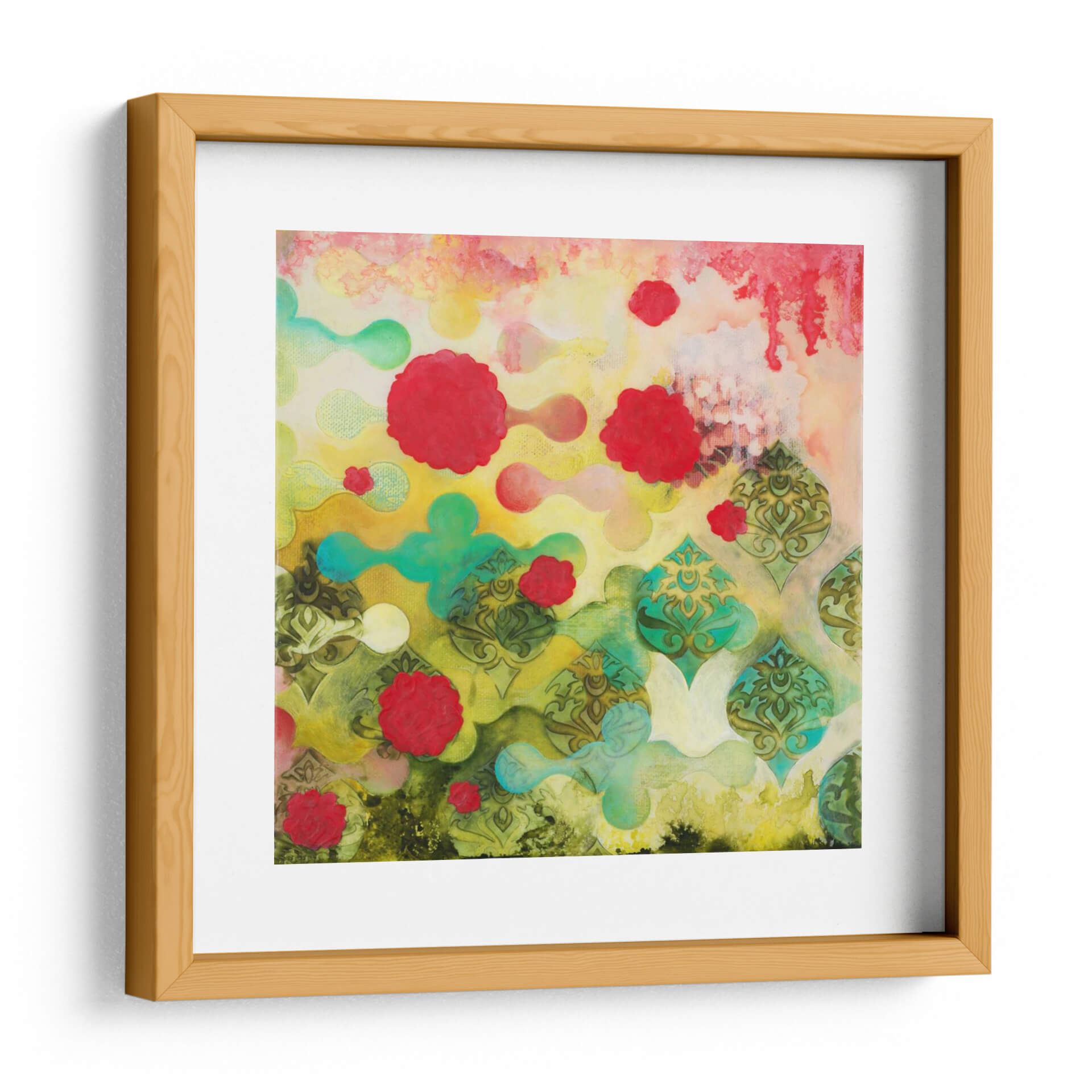 Sumérgete en la vibrante y enigmática obra de Heather Robinson, titulada 'Dudoso'. Este cuadro decorativo abstracto es una explosión de color y forma, ideal para infundir vida y carácter a cualquier espacio. La composición se caracteriza por la superposición de texturas y patrones, donde destacan las formas orgánicas en tonos turquesa y verde menta que contrastan con vibrantes toques de rojo carmesí, evocando la frescura de flores estilizadas. Los fondos en amarillo cálido y tonos pastel, con delicadas acuarelas rosadas, aportan una sensación de luminosidad y profundidad, creando una atmósfera lúdica y a la vez serena. Los motivos ornamentales de estilo oriental, integrados sutilmente, añaden un toque de sofisticación y misterio a la pieza. 'Dudoso' es más que una simple decoración de pared; es una invitación a la contemplación y a la interpretación personal, una pieza que estimula la conversación y añade un aire contemporáneo y artístico a tu hogar u oficina. Su versatilidad permite que encaje perfectamente en salones modernos, dormitorios acogedores o estudios creativos, aportando un toque de originalidad y buen gusto.