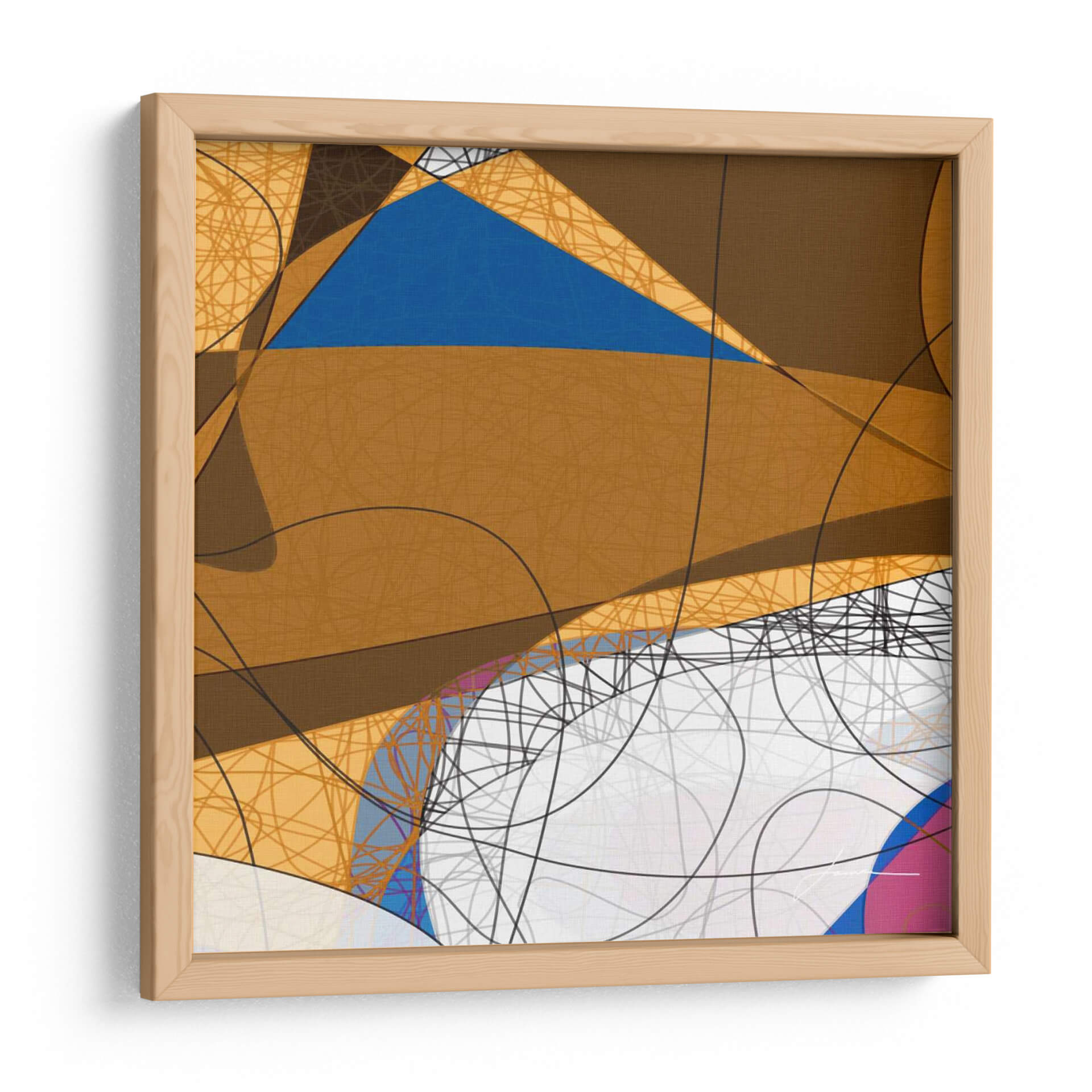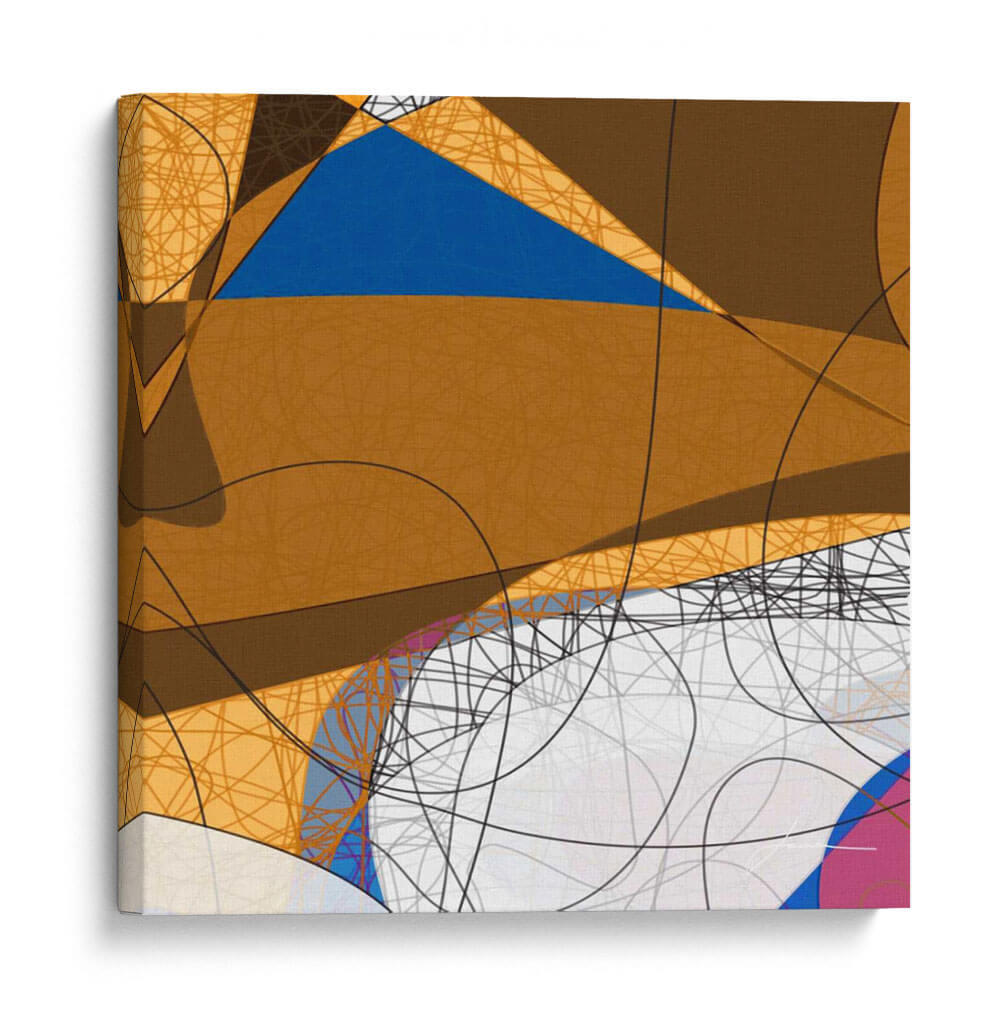 Sumérgete en la complejidad visual de "Enredado Yo" de James Burghardt, una obra de arte abstracto que desafía la percepción. Esta pieza cautivadora se caracteriza por una audaz superposición de formas geométricas y líneas orgánicas, creando una textura dinámica y llena de profundidad. La paleta de colores, dominada por cálidos tonos tierra y un vibrante azul, se equilibra con sutiles toques de rosa y blanco, generando una atmósfera intrigante y moderna. Las intrincadas tramas de líneas negras y amarillas añaden una capa de detalle que invita a una contemplación prolongada, mientras que las formas curvas y angulares interactúan para sugerir un diálogo entre el orden y el caos. "Enredado Yo" es ideal para espacios que buscan un toque de vanguardia y sofisticación, como salas de estar contemporáneas, estudios o oficinas creativas. Este cuadro decorativo abstracto no solo embellece, sino que también estimula la conversación y la reflexión, convirtiéndose en un punto focal distintivo para cualquier decoración.