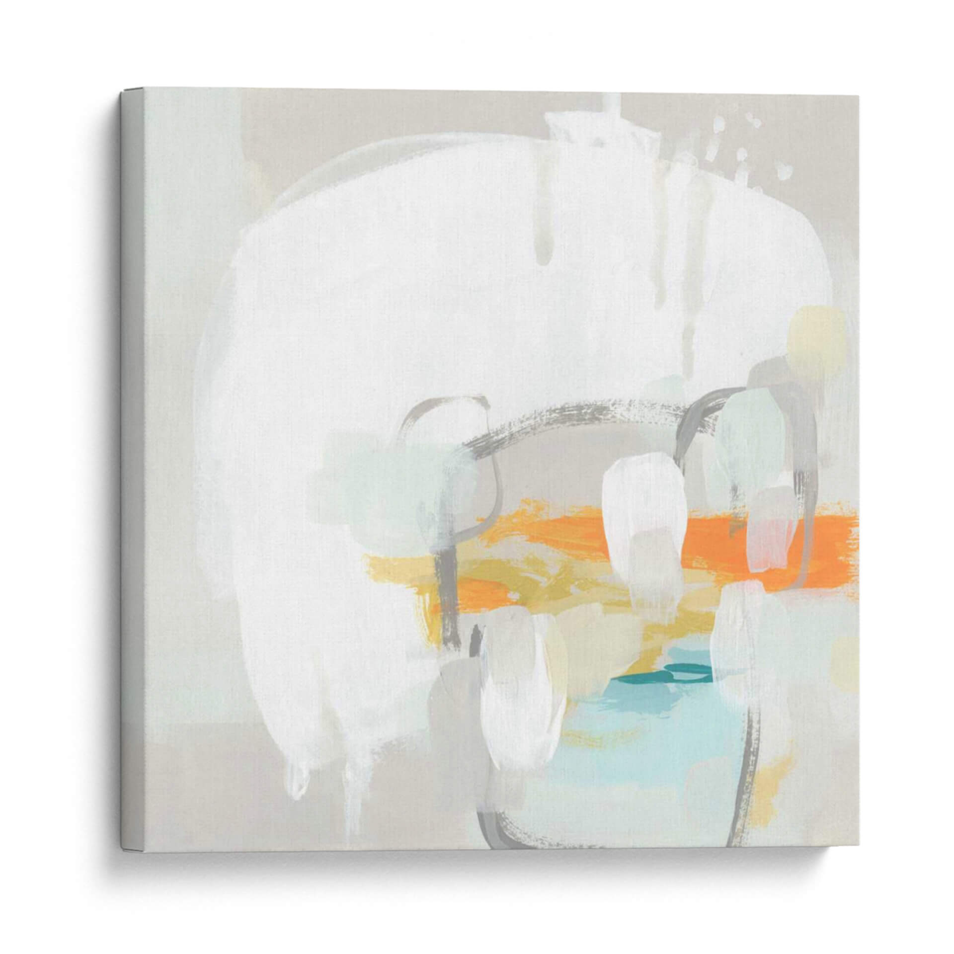 Inyecta una dosis de arte abstracto contemporáneo en tu espacio con "Estéreo Fade Iv", una cautivadora obra de June Erica Vess. Esta pieza se caracteriza por su composición dinámica de formas fluidas y pinceladas audaces, creando una sensación de movimiento y profundidad. La paleta de colores se centra en tonos neutros como el gris pálido y el blanco roto, salpicados con vibrantes toques de naranja, amarillo y un sereno azul turquesa. Esta combinación de colores suaves y acentos energéticos aporta un equilibrio visual que puede revitalizar cualquier ambiente. El estilo abstracto de la obra permite una interpretación personal, invitando a la contemplación y a la reflexión. Es la elección perfecta para quienes buscan añadir un elemento de sofisticación moderna y un punto focal intrigante a su sala de estar, oficina o dormitorio. "Estéreo Fade Iv" no es solo un cuadro decorativo, es una invitación a experimentar la belleza a través de la abstracción, fusionando el arte contemporáneo con el diseño de interiores para crear un hogar verdaderamente único y lleno de estilo. Su diseño versátil se adapta a una amplia gama de decoraciones, desde las más minimalistas hasta las más eclécticas, aportando una personalidad distintiva.