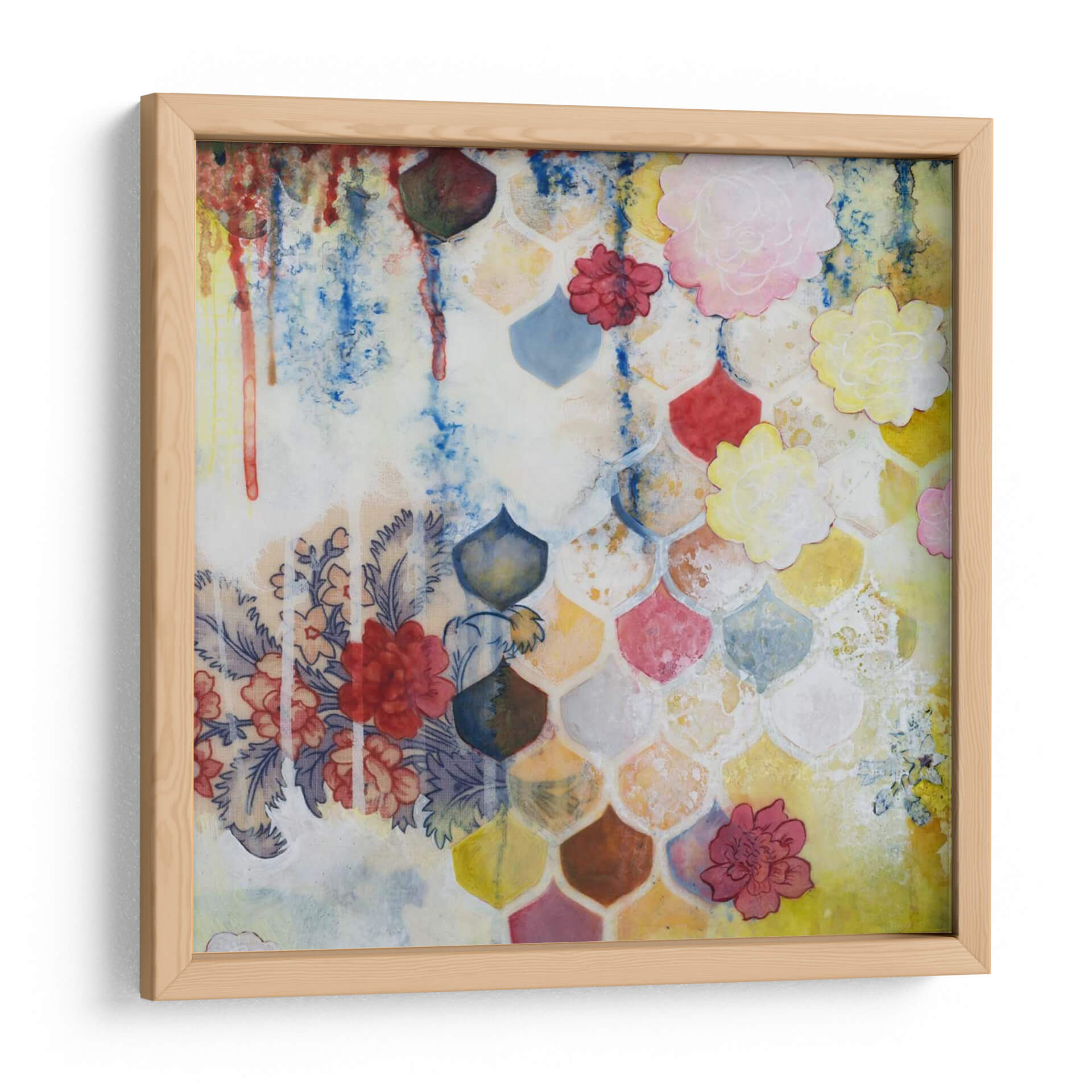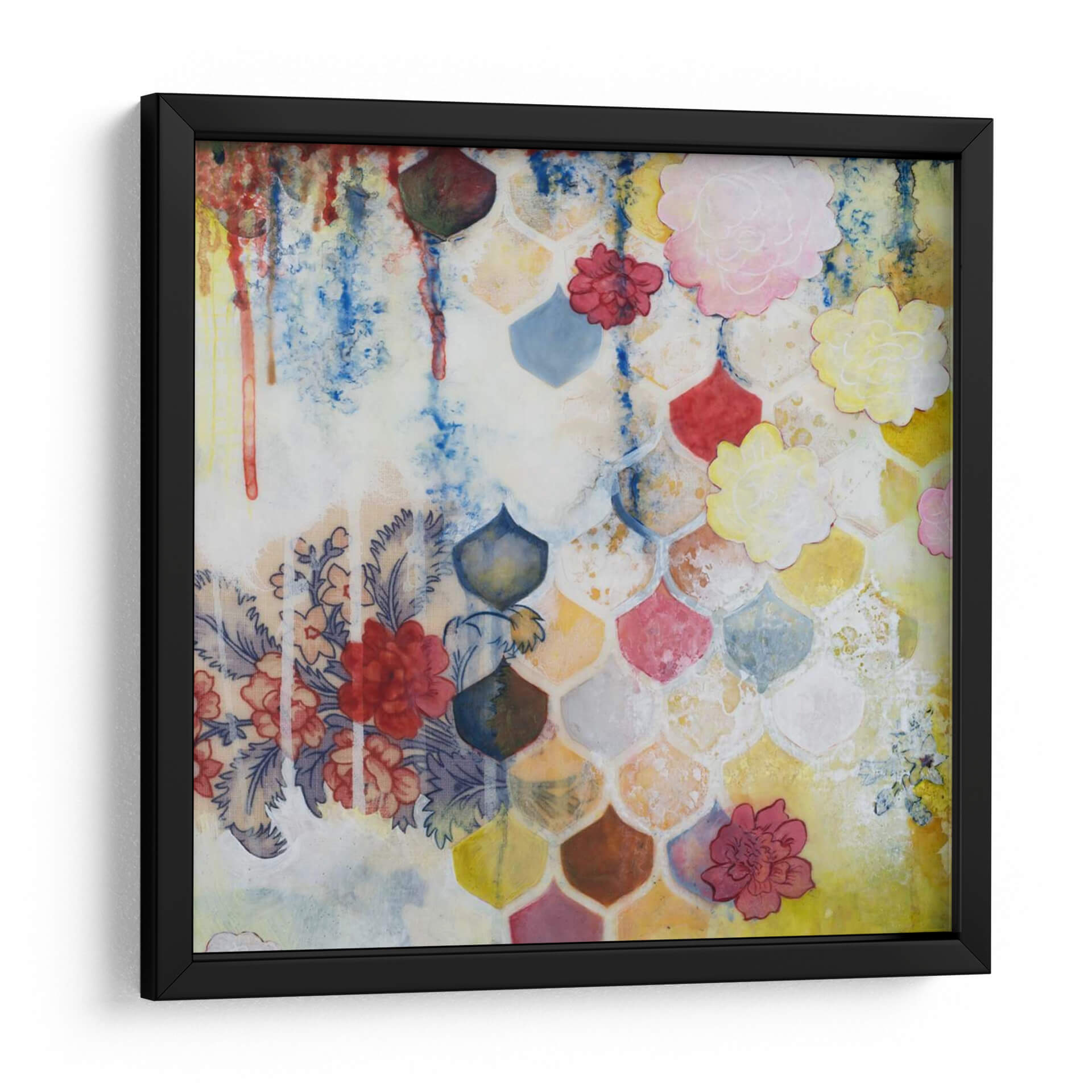 Sumérgete en la vibrante y etérea obra de Heather Robinson, titulada 'Flores De Pescado'. Este cuadro decorativo contemporáneo es una explosión de color y textura, donde delicadas flores y formas escamosas se entrelazan en una composición armoniosa. La paleta de colores, que abarca desde cálidos amarillos y rosas hasta fríos azules y matices terrosos, crea una atmósfera juguetona y a la vez serena. Las técnicas mixtas, incluyendo salpicaduras de pintura y detalles lineales sutiles, añaden profundidad y un carácter único a la pieza. Ideal para espacios que buscan un toque de originalidad y alegría, como una sala de estar moderna, un dormitorio acogedor o una oficina creativa. 'Flores De Pescado' no es solo una decoración; es una invitación a la contemplación y al disfrute del arte que celebra la belleza de lo inesperado. Transforma tu hogar con esta pieza inspiradora que combina elementos florales y abstractos de una manera fascinante y moderna, aportando vitalidad y un estilo distintivo a cualquier ambiente.