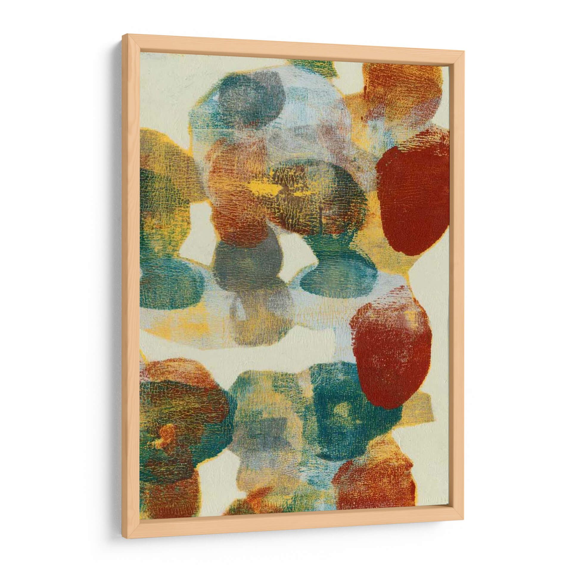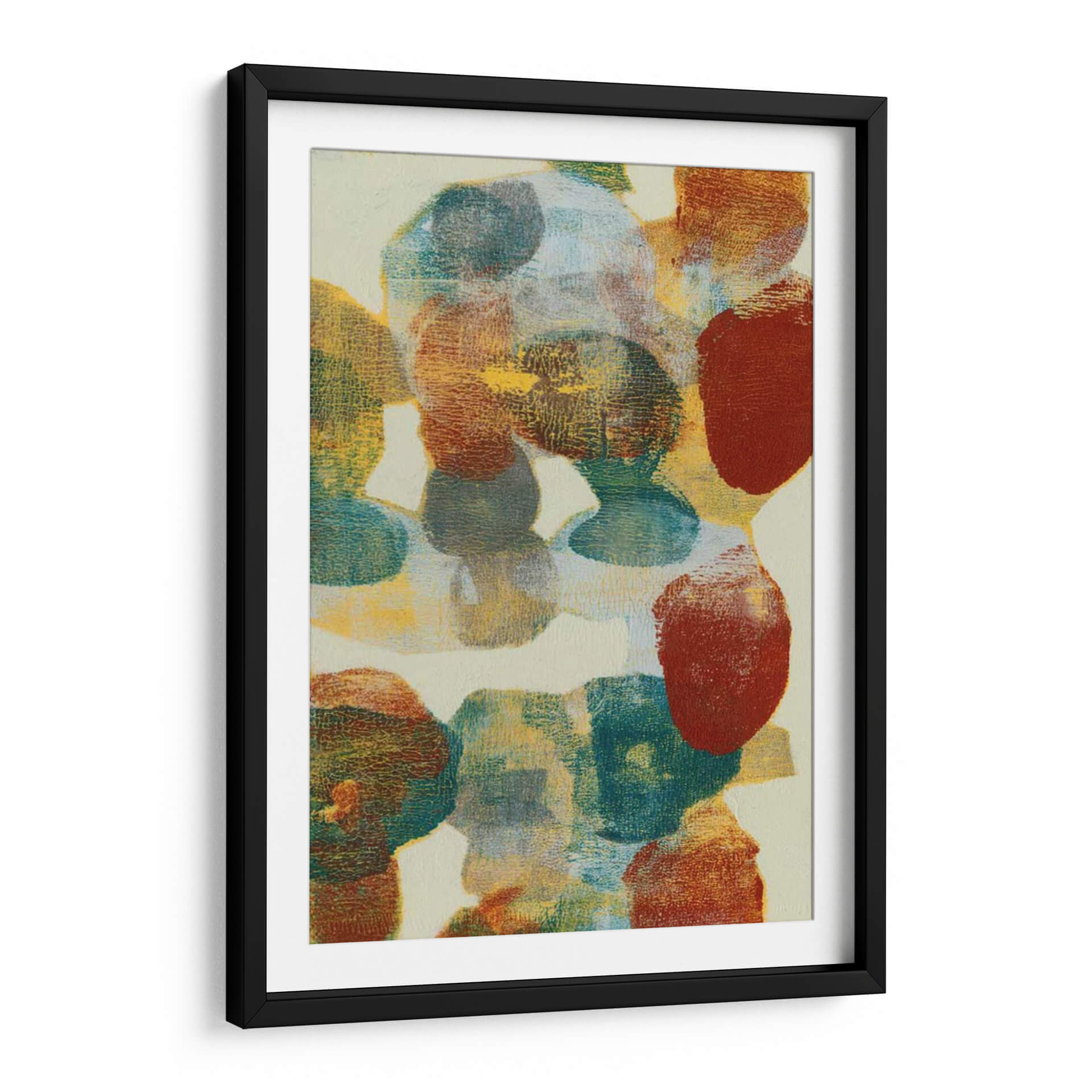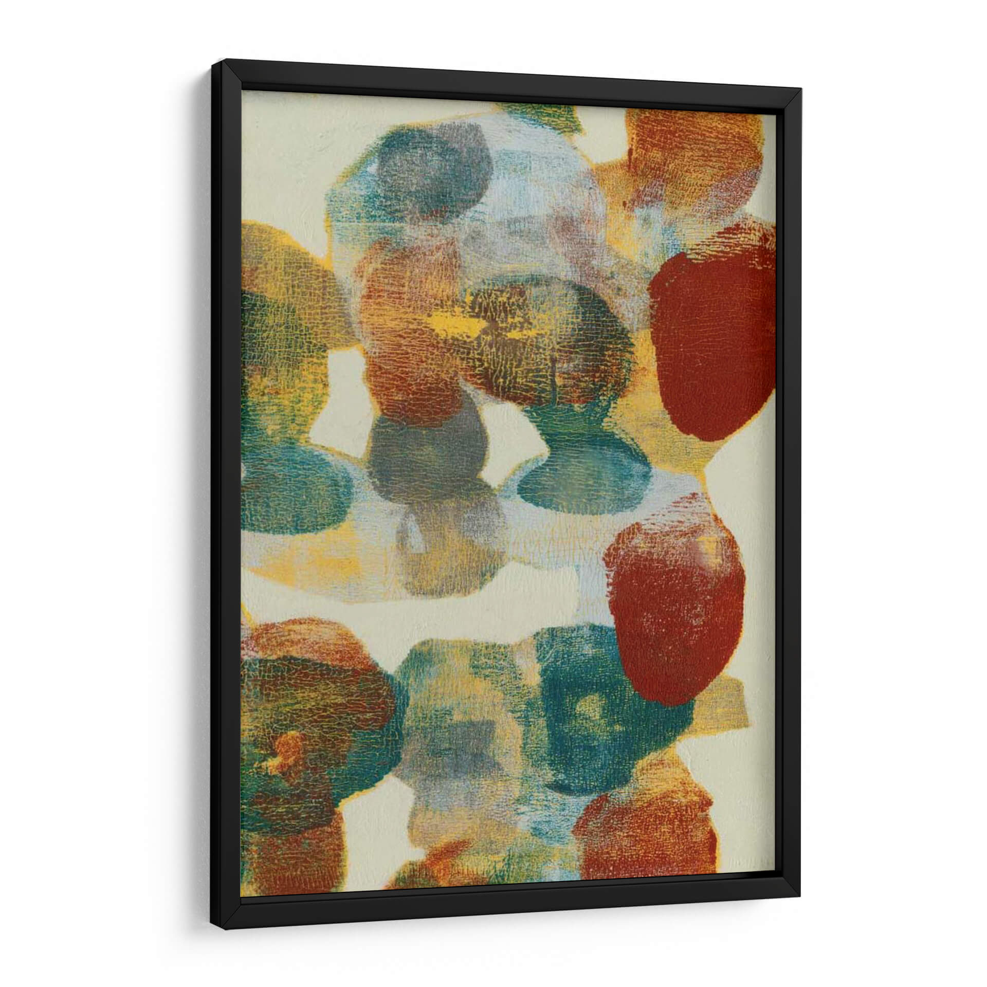Sumérgete en la cautivadora obra de arte abstracto 'Forma Shift II' de Jennifer Goldberger, una pieza que redefine la expresión visual contemporánea. Esta composición se caracteriza por un vibrante despliegue de formas orgánicas y redondeadas que parecen flotar sobre un lienzo de fondo neutro. La paleta de colores es rica y terrosa, dominada por tonos cálidos de óxido, ocre y amarillo, contrastando con profundos azules verdosos y toques de rojo ladrillo. La textura juega un papel crucial, con capas que sugieren profundidad y un acabado que evoca la sutil rugosidad de materiales naturales. 'Forma Shift II' no es solo un cuadro decorativo, sino una invitación a la contemplación, evocando una sensación de movimiento y transformación. Su estilo abstracto y la armonía cromática la convierten en la elección perfecta para añadir un toque de sofisticación y calidez a cualquier sala de estar moderna, un estudio o un espacio de oficina que busque inspiración. Esta obra de arte de pared contemporánea es ideal para quienes aprecian la belleza en la abstracción y desean infundir a su hogar una atmósfera de creatividad y dinamismo. La fluidez de sus formas y la riqueza de sus colores aseguran que 'Forma Shift II' se convierta en un punto focal inolvidable, resonando con la individualidad y el gusto estético de cada observador, convirtiendo cualquier pared en una galería personal. Experimenta la evolución de la forma y el color con esta impresionante pieza.