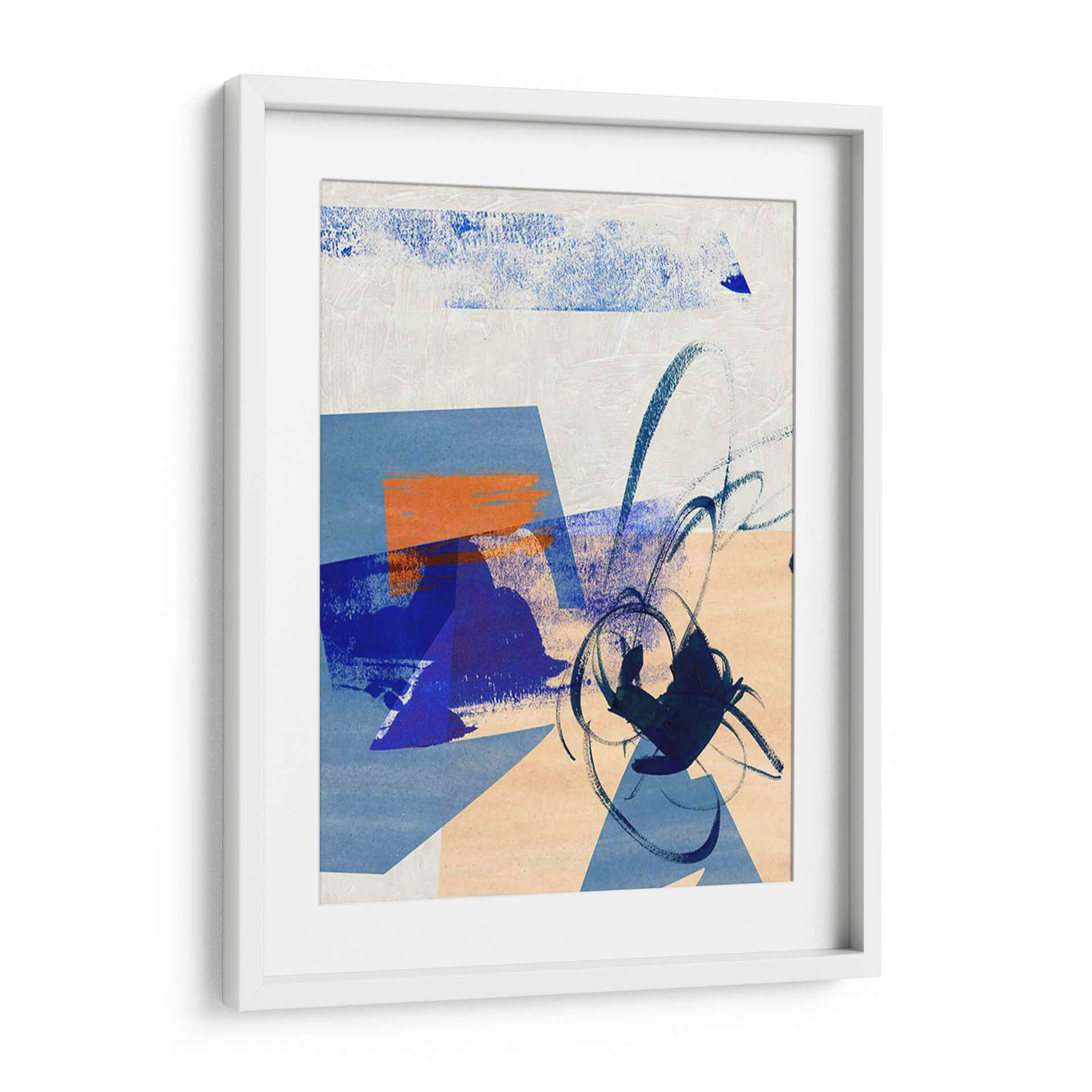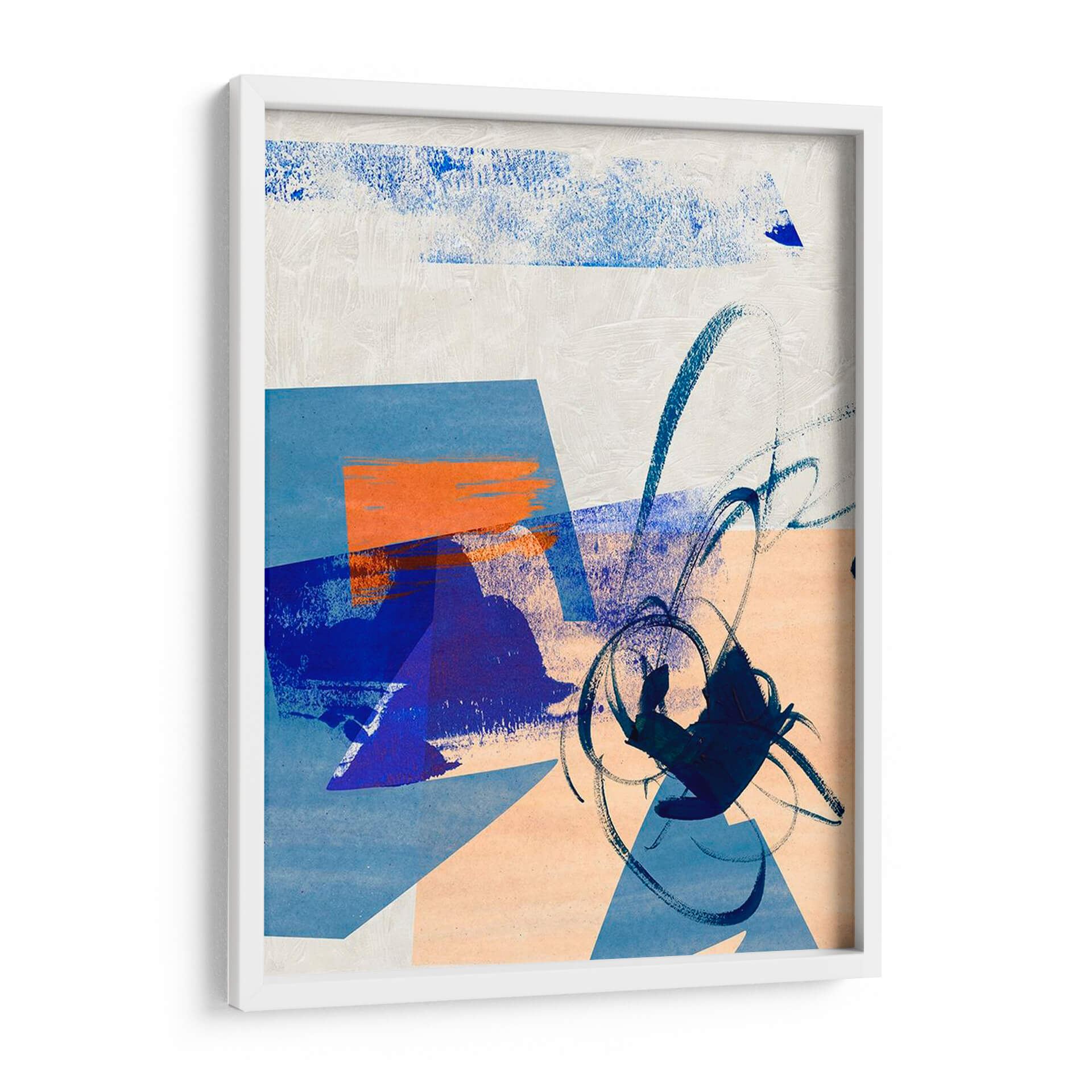 Sumérgete en la atmósfera enigmática de 'Fragmento Nocturno III', una cautivadora obra de arte abstracto de Melissa Wang. Esta pieza evoca la serenidad de la noche a través de una paleta de colores serena que combina azules profundos, toques de naranja vibrante y sutiles matices de melocotón y blanco roto. Las formas geométricas se entrelazan con pinceladas audaces y expresivas, creando una dinámica visual que invita a la contemplación. La composición, que juega con la superposición de planos y texturas, genera una sensación de profundidad y misterio, como si se desvelara un secreto bajo la luz de la luna. Este cuadro decorativo contemporáneo es perfecto para añadir un toque de sofisticación y calma a cualquier espacio, ya sea una sala de estar moderna, un estudio tranquilo o un dormitorio acogedor. Su estilo abstracto y la calidad artística intrínseca lo convierten en una pieza versátil que puede complementar una variedad de decoraciones interiores, aportando un punto focal de interés y una atmósfera de introspección. Descubre la magia de lo abstracto con 'Fragmento Nocturno III', una elección ideal para quienes buscan arte que hable al alma.