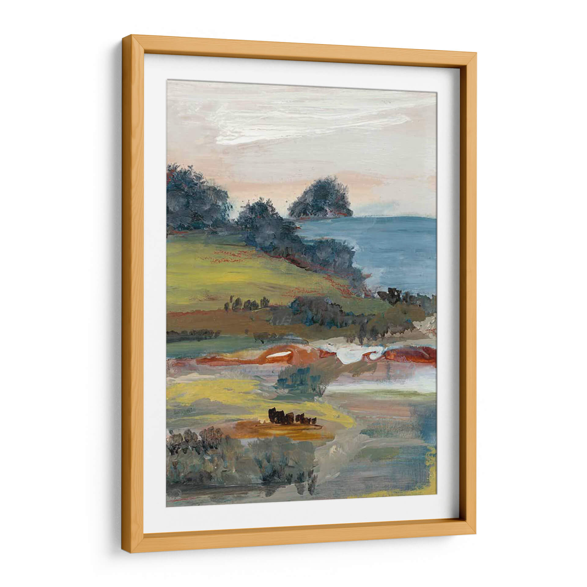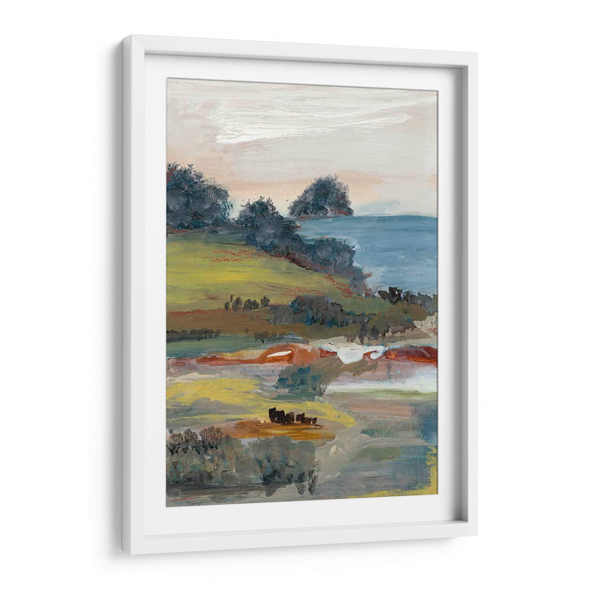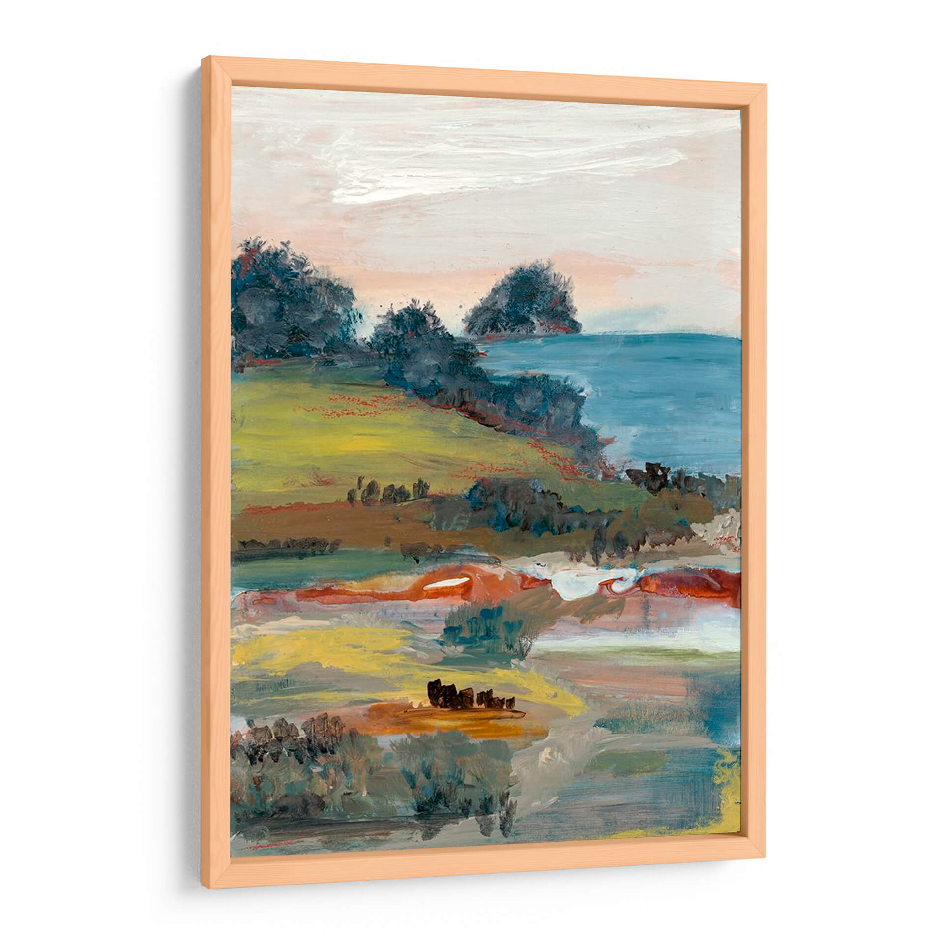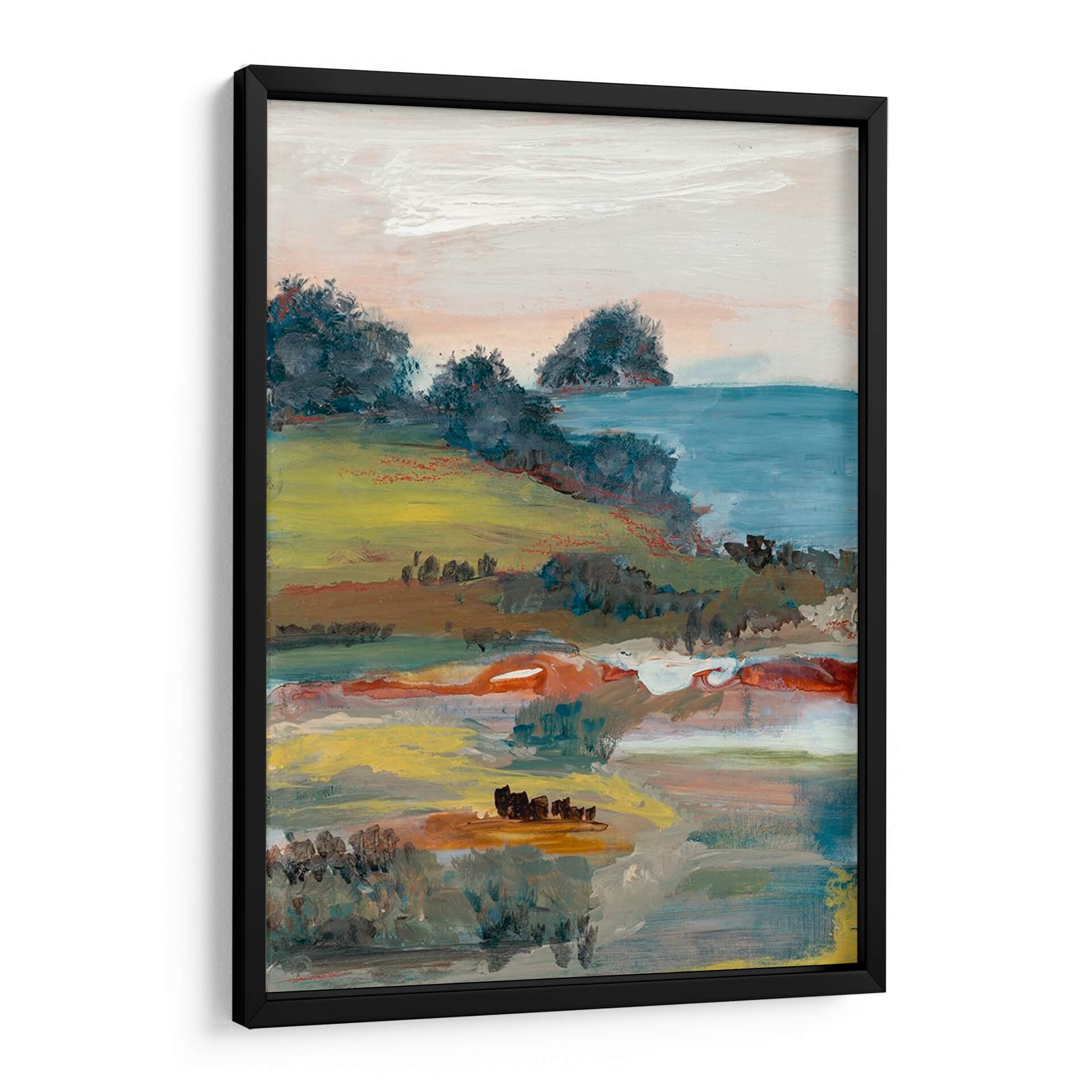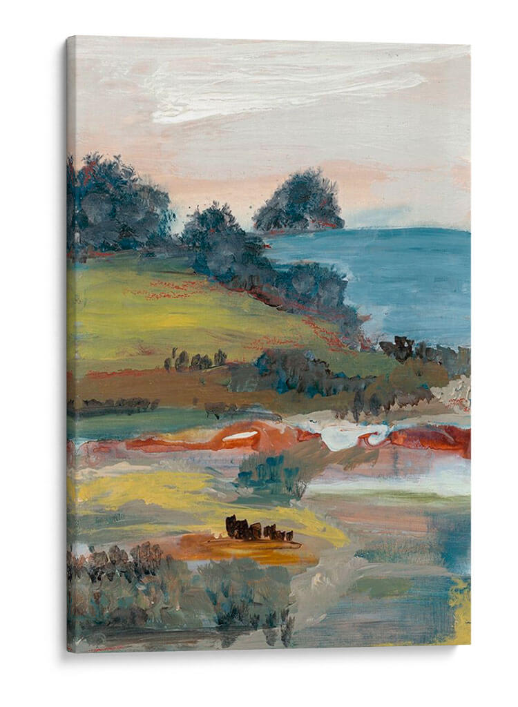 Sumérgete en la serenidad y la belleza natural con "Generosidad I", una cautivadora obra de arte de Lila Bramma. Este cuadro decorativo captura un paisaje evocador con una paleta de colores suaves y terrosos, dominada por verdes vibrantes, ocres cálidos y toques de azul sereno. La composición, que recuerda a una vista costera o rural, presenta colinas onduladas cubiertas de vegetación exuberante que descienden hacia un cuerpo de agua tranquilo. Las pinceladas sueltas y expresivas otorgan a la pieza una cualidad impresionista, invitando a la contemplación y a la conexión con la naturaleza. Los sutiles contrastes y la profundidad lograda a través de las capas de color crean una atmósfera de paz y abundancia. "Generosidad I" es la elección perfecta para añadir un toque de sofisticación natural a tu hogar u oficina, ideal para salones, dormitorios o espacios de trabajo que busquen un ambiente relajante y estético. Transforma tus paredes en un lienzo de tranquilidad y estilo contemporáneo con esta pieza única que celebra la generosidad del paisaje.