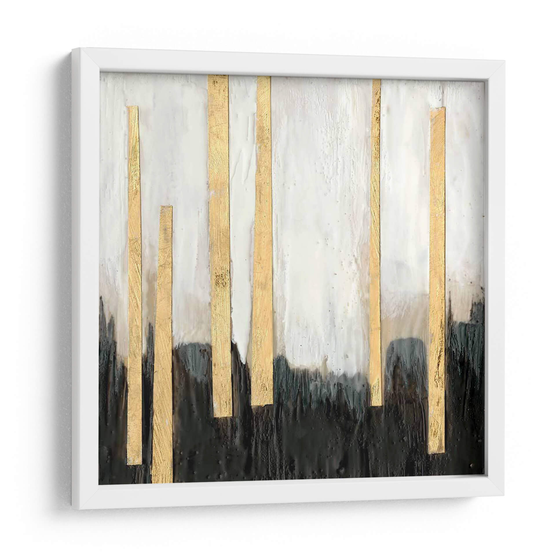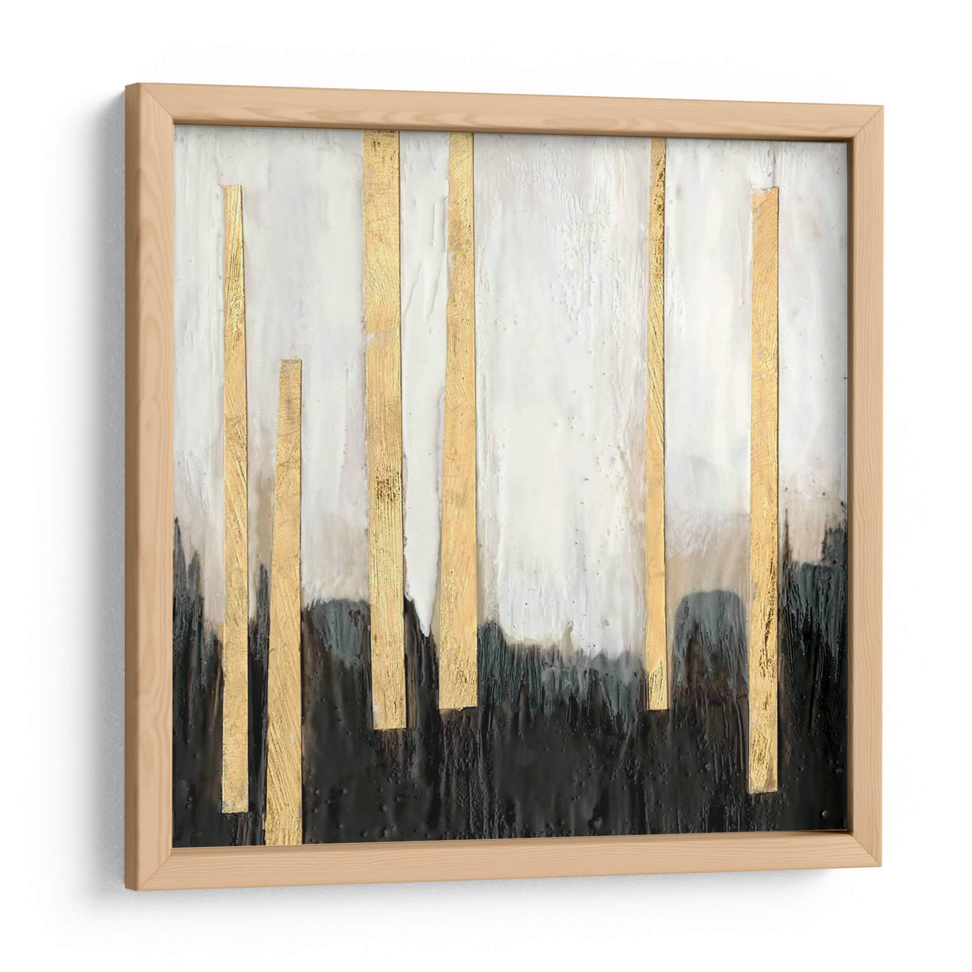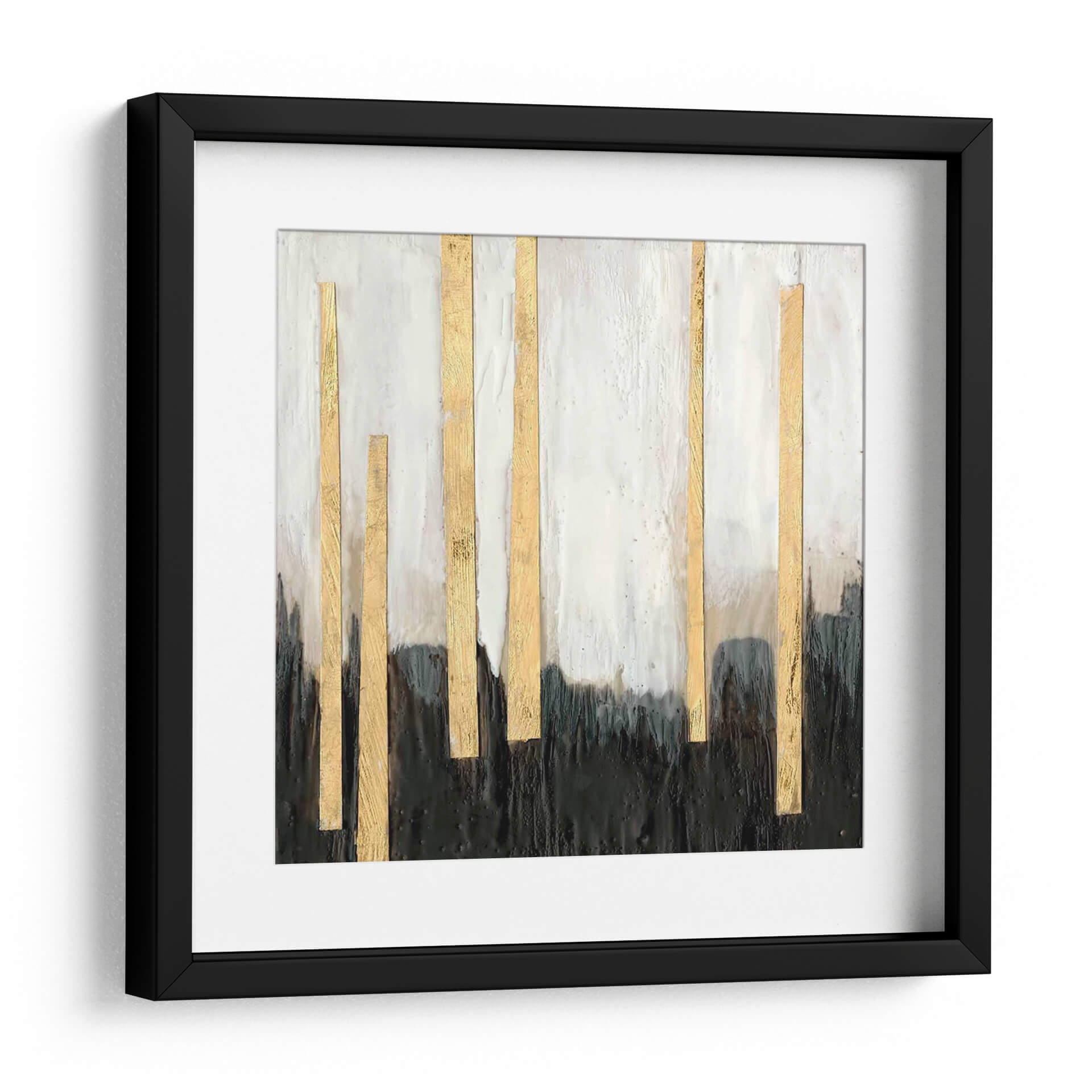 Transforma tu espacio con la cautivadora obra de arte contemporáneo "Gilt Treeline I" de Jennifer Goldberger. Esta pieza evoca la majestuosidad de un bosque bañado por la luz dorada, con líneas verticales que sugieren árboles estilizados y un juego de texturas que añade profundidad y riqueza visual. La paleta de colores, dominada por blancos, grises, negros y toques sutiles de dorado, crea una atmósfera sofisticada y serena, perfecta para complementar una decoración moderna o minimalista. La composición abstracta, aunque inspirada en la naturaleza, permite una interpretación personal, invitando a la contemplación y aportando un aire de elegancia atemporal a cualquier habitación. Ideal para salones, oficinas o dormitorios que buscan un punto focal distinguido y una sensación de calma y lujo. "Gilt Treeline I" es más que un cuadro decorativo; es una expresión artística que eleva tu hogar con estilo y carácter, capturando la esencia de la naturaleza a través de una visión artística única y contemporánea que resonará en tu día a día.