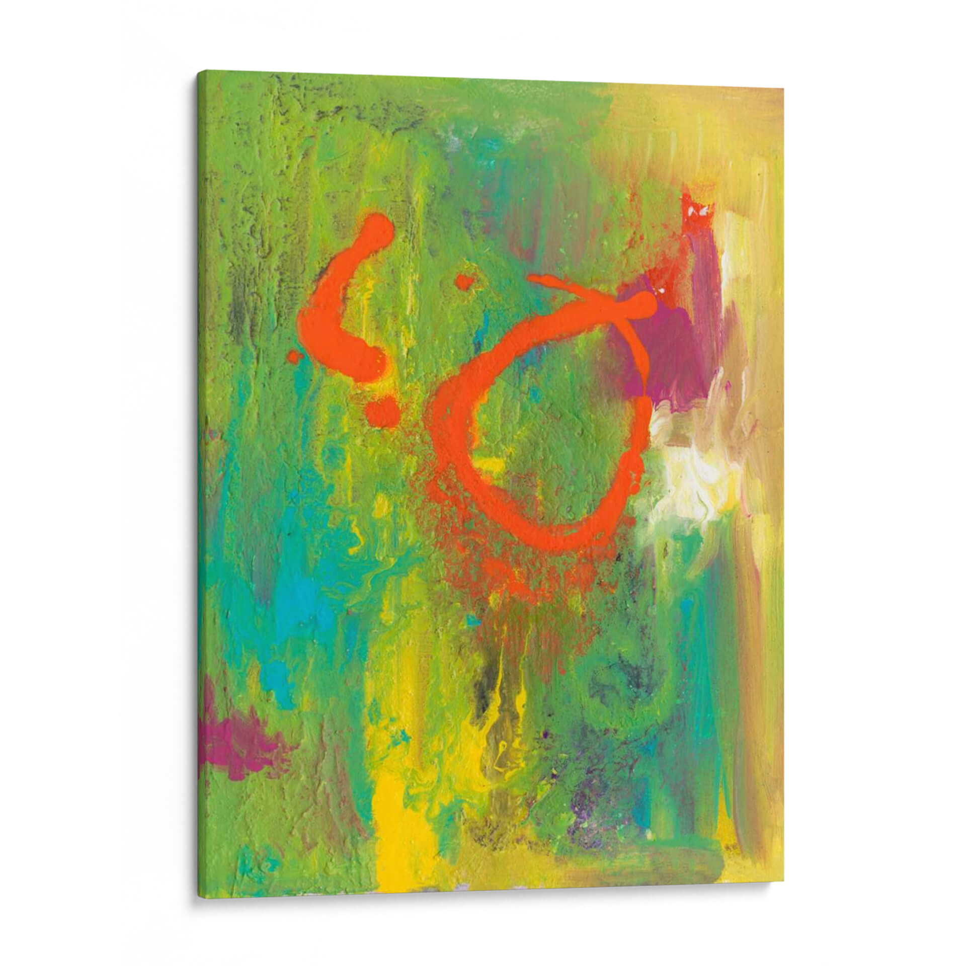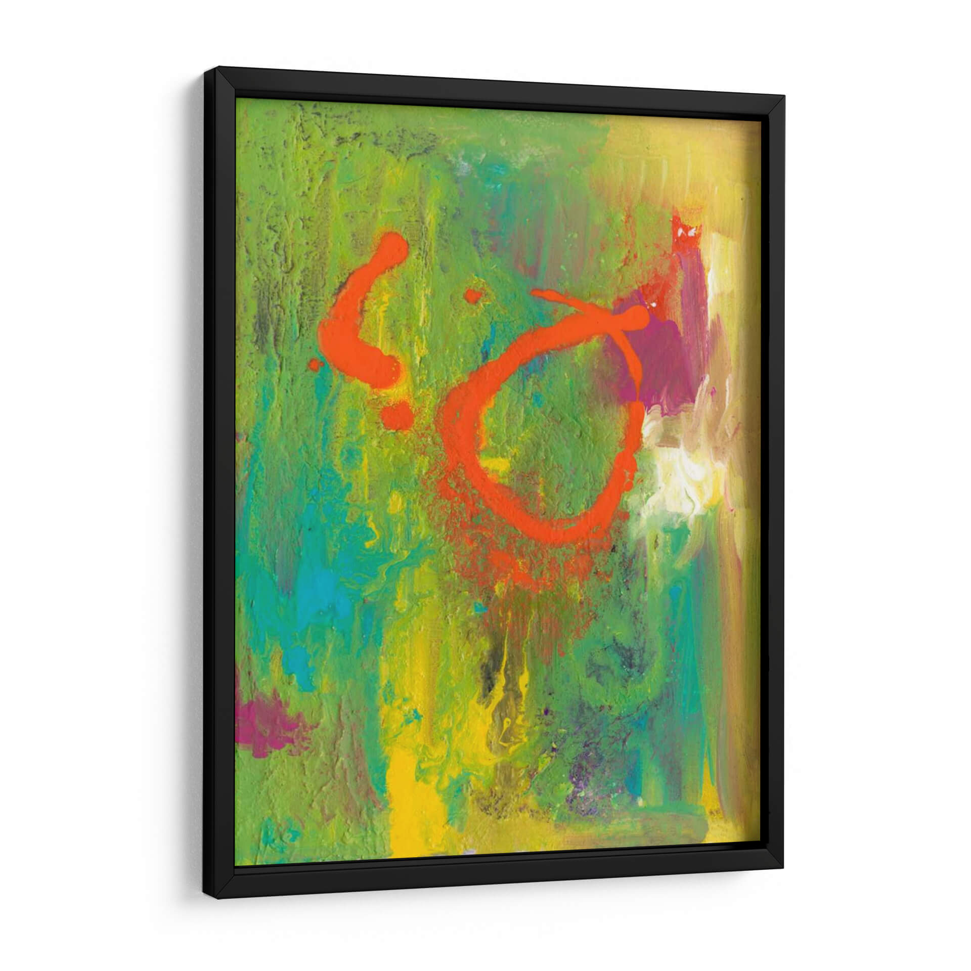 Sumérgete en la vibrante energía de "Graffiti Naranja IV", una obra de arte contemporáneo que irradia dinamismo y audacia. Creada por la talentosa Joyce Combs, esta pieza abstracta es una explosión de color y textura, dominada por un audaz graffiti naranja que contrasta con un fondo rico en verdes, amarillos y toques de azul y magenta. Las pinceladas visibles y la aplicación texturizada de la pintura confieren a la obra una profundidad y un carácter únicos, invitando a la contemplación y al descubrimiento de nuevas formas y matices. Su composición dinámica y su paleta de colores enérgica la convierten en el punto focal perfecto para cualquier espacio moderno, inyectando vitalidad y personalidad a salas de estar, oficinas o cualquier ambiente que busque una declaración artística audaz. Este cuadro decorativo es ideal para aquellos que aprecian el arte abstracto con un toque urbano y contemporáneo, buscando transformar sus paredes en lienzos de expresión y estilo. Añade un toque de vanguardia y sofisticación a tu decoración con esta cautivadora obra.