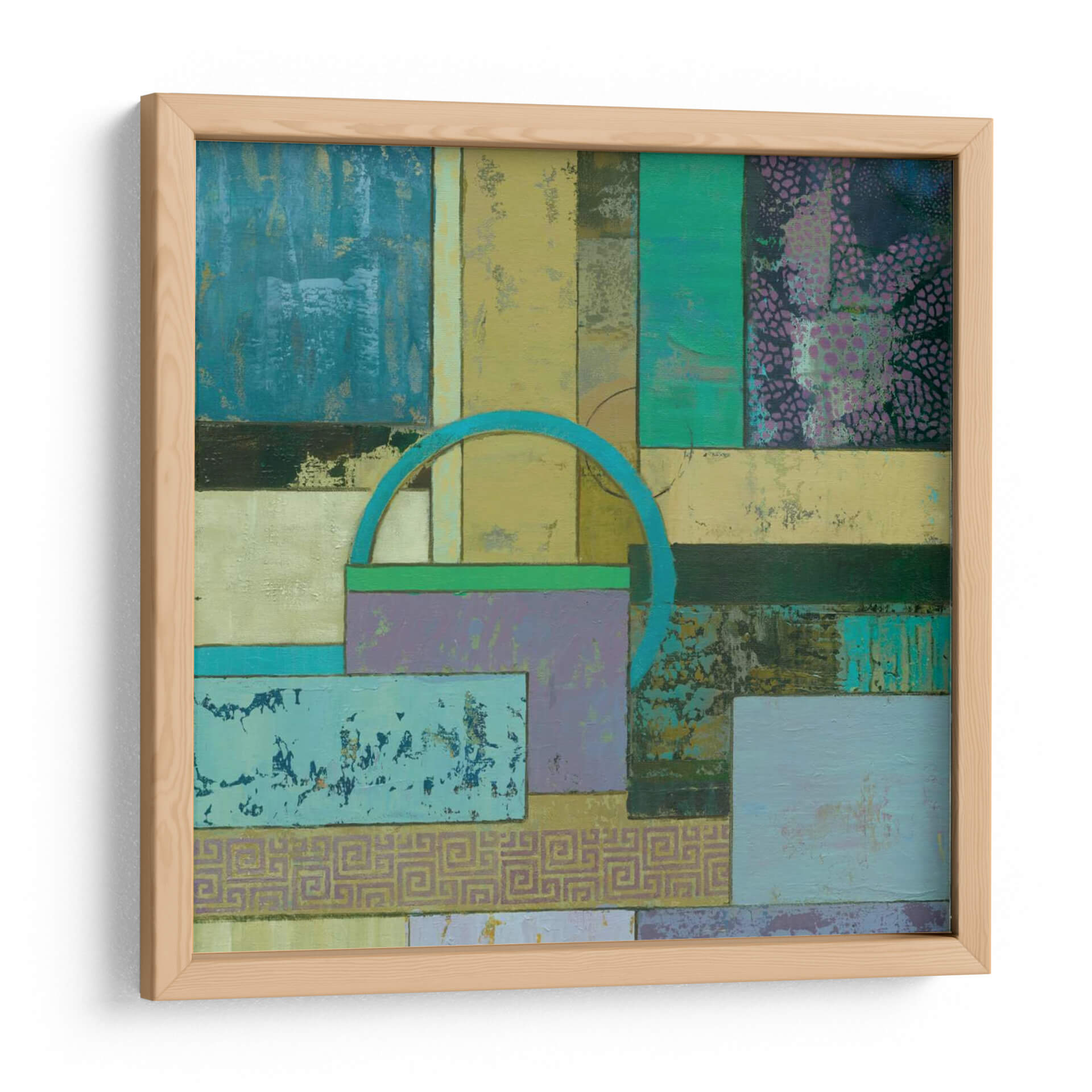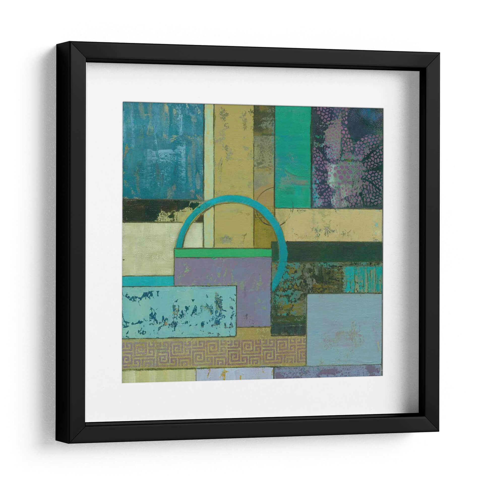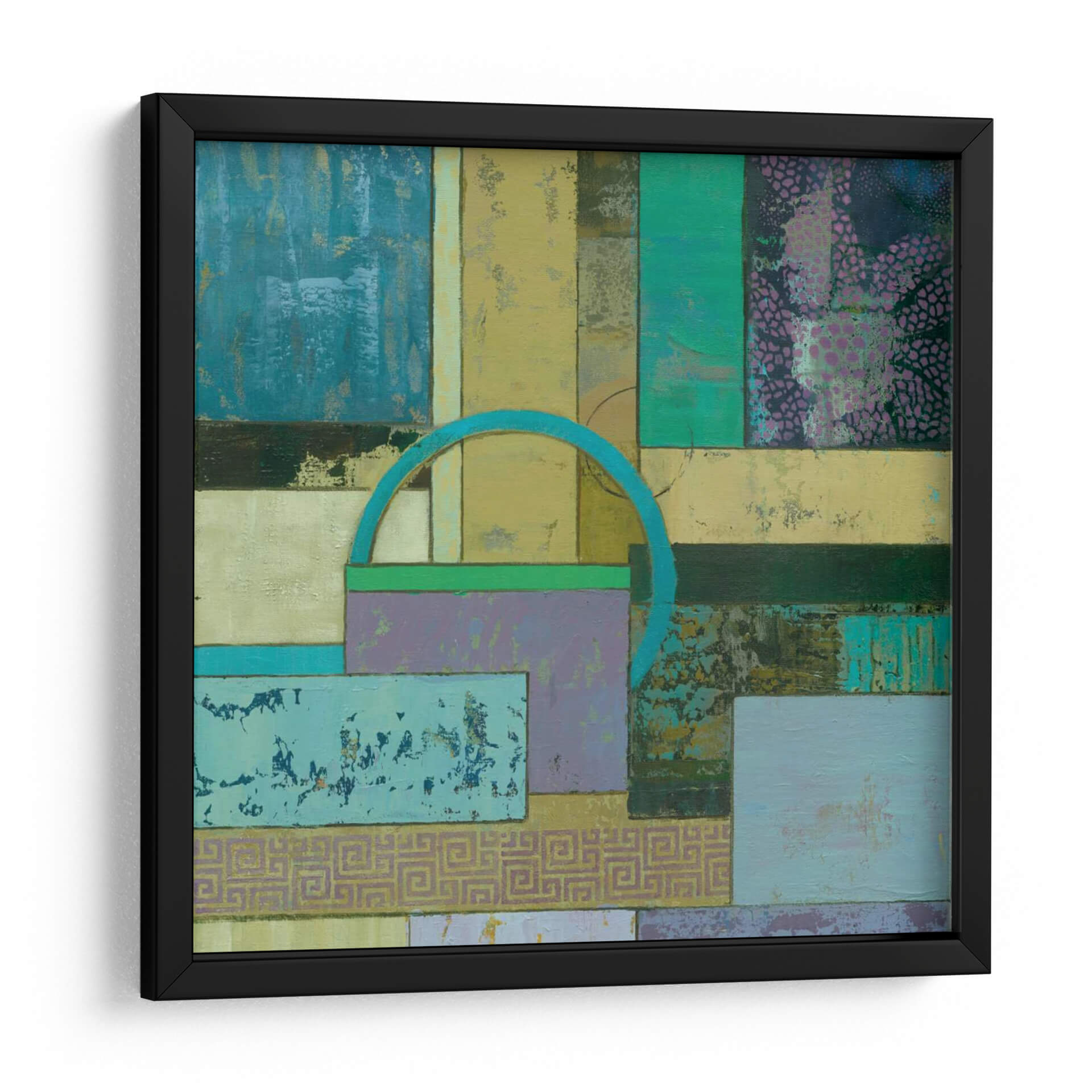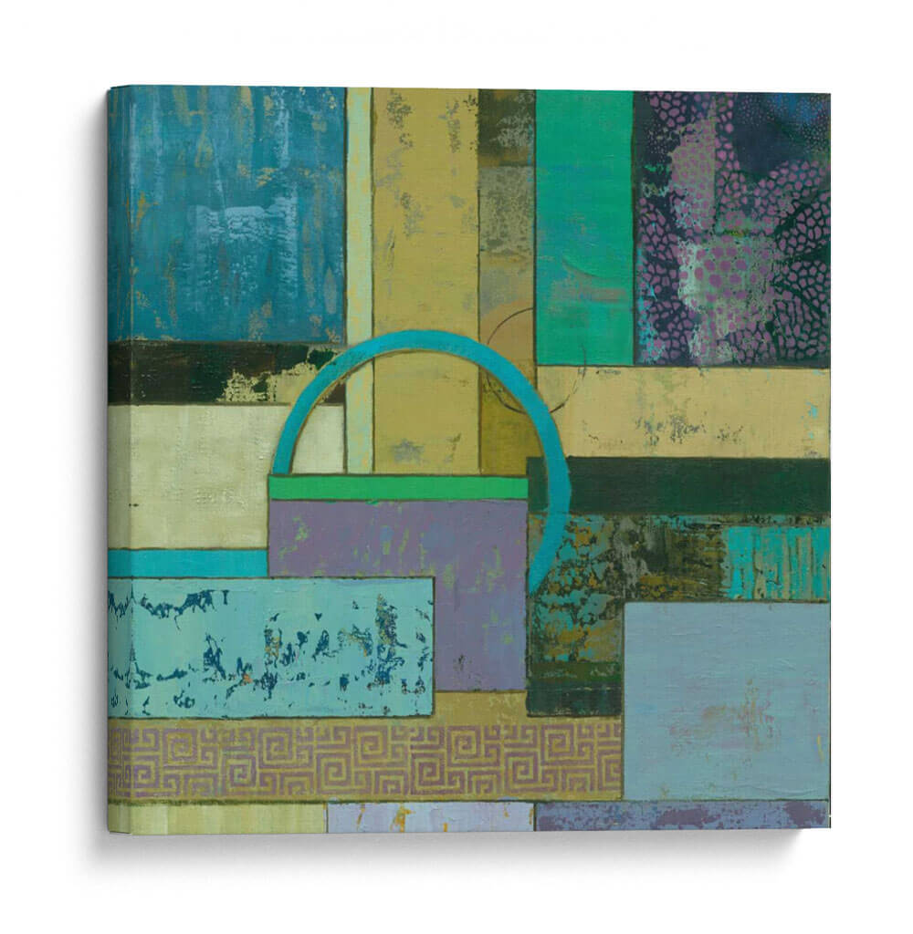 Sumérgete en la fascinante abstracción de 'Infusión Fósil I Un' de Julie Joy, una obra de arte contemporáneo que redefine el espacio con su cautivadora composición. Este cuadro decorativo se despliega como un tapiz visual de texturas y formas geométricas entrelazadas, invitando a la contemplación. La paleta de colores, dominada por tonos azules profundos, verdes esmeralda, amarillos ocre y toques de lila y púrpura, crea una atmósfera rica y enigmática que evoca tanto la serenidad de la naturaleza como la complejidad de la mente humana. La superposición de rectángulos y cuadrados, salpicados de patrones sutiles y texturas desgastadas, genera una sensación de profundidad y descubrimiento. Un arco azul turquesa emerge como un elemento focal intrigante, añadiendo un toque de dinamismo y misterio. Esta pieza abstracta es ideal para cualquier persona que busque infundir su hogar u oficina con un carácter único y una explosión de color controlada. 'Infusión Fósil I Un' no es solo una decoración de pared, es una experiencia sensorial que estimula la imaginación y añade un toque de sofisticación moderna a cualquier ambiente. Transforma tu espacio con esta cautivadora obra de arte, perfecta para salas de estar, estudios o pasillos donde el arte contemporáneo es apreciado por su capacidad de evocar emociones y conversaciones.