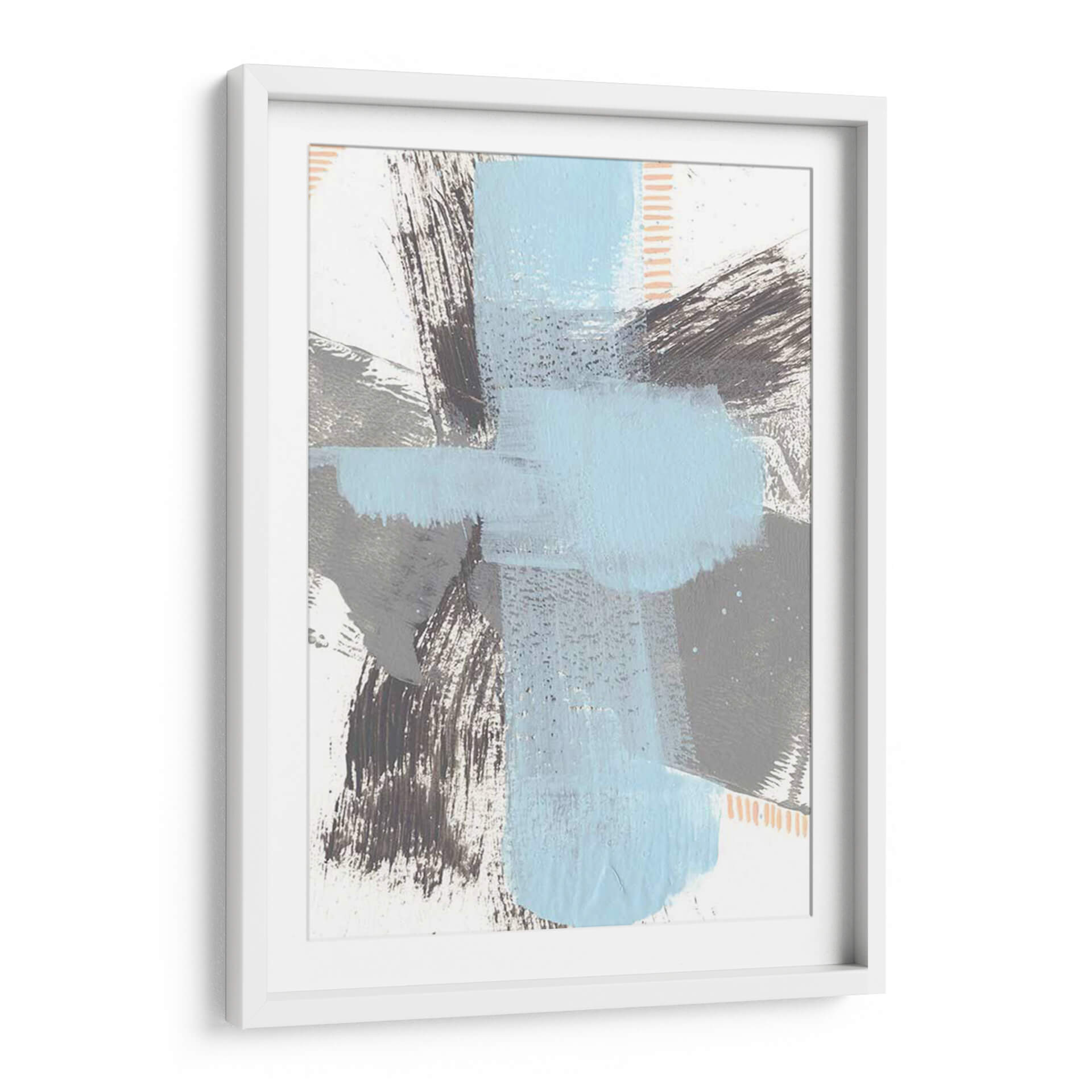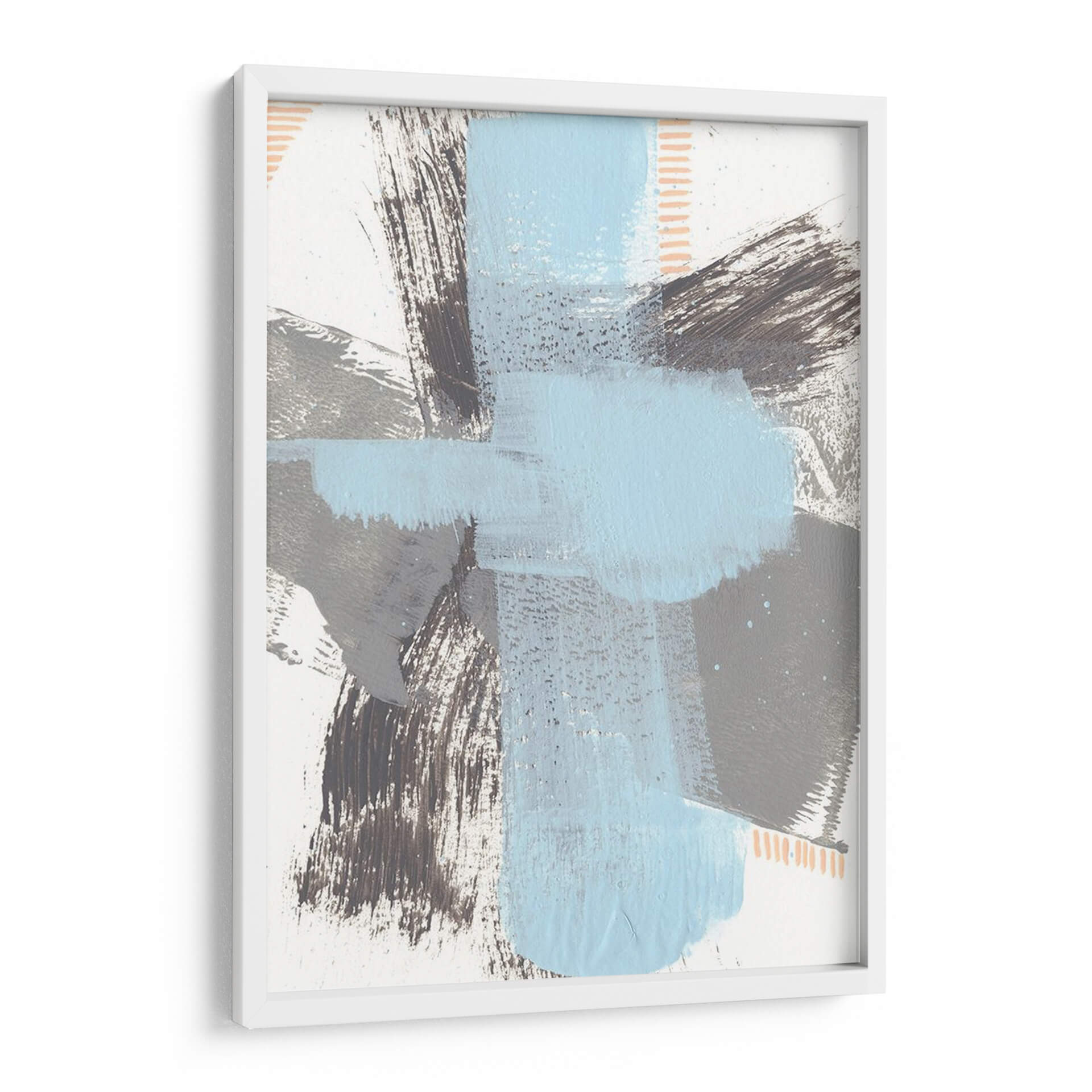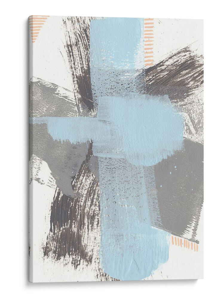 Sumérgete en la serenidad moderna con "Kenético Vi", una obra de arte abstracto que redefine la elegancia contemporánea. Esta pieza cautiva con su audaz pero armoniosa composición de pinceladas expresivas y formas geométricas superpuestas. La paleta de colores, dominada por serenos tonos de azul cielo y grises profundos, se complementa con sutiles toques de melocotón y contrastes en blanco, creando una atmósfera de calma y sofisticación. Las texturas visibles, creadas por el trazo enérgico del artista Regina Moore, invitan a la contemplación, añadiendo profundidad y dimensión a la obra. "Kenético Vi" es un cuadro decorativo ideal para infundir un ambiente de tranquilidad y estilo en cualquier espacio, desde una sala de estar minimalista hasta una oficina moderna o un sereno dormitorio. Su diseño abstracto y la cuidada interacción de colores lo convierten en un punto focal dinámico que dialoga con el entorno, aportando un toque de arte contemporáneo y originalidad. Transforma tu hogar u oficina con este cuadro decorativo que inspira paz y refleja un gusto exquisito por el arte moderno.