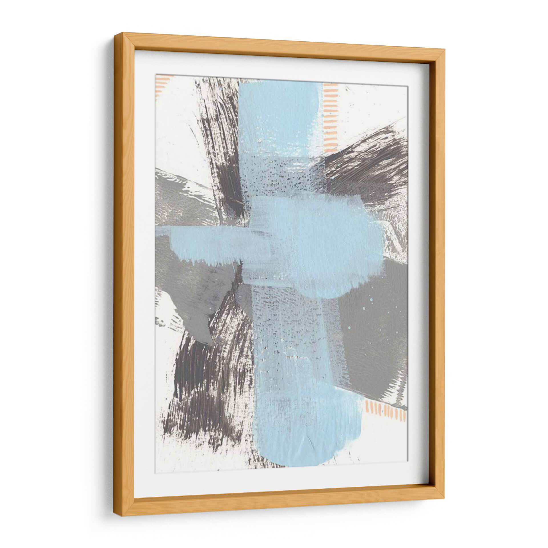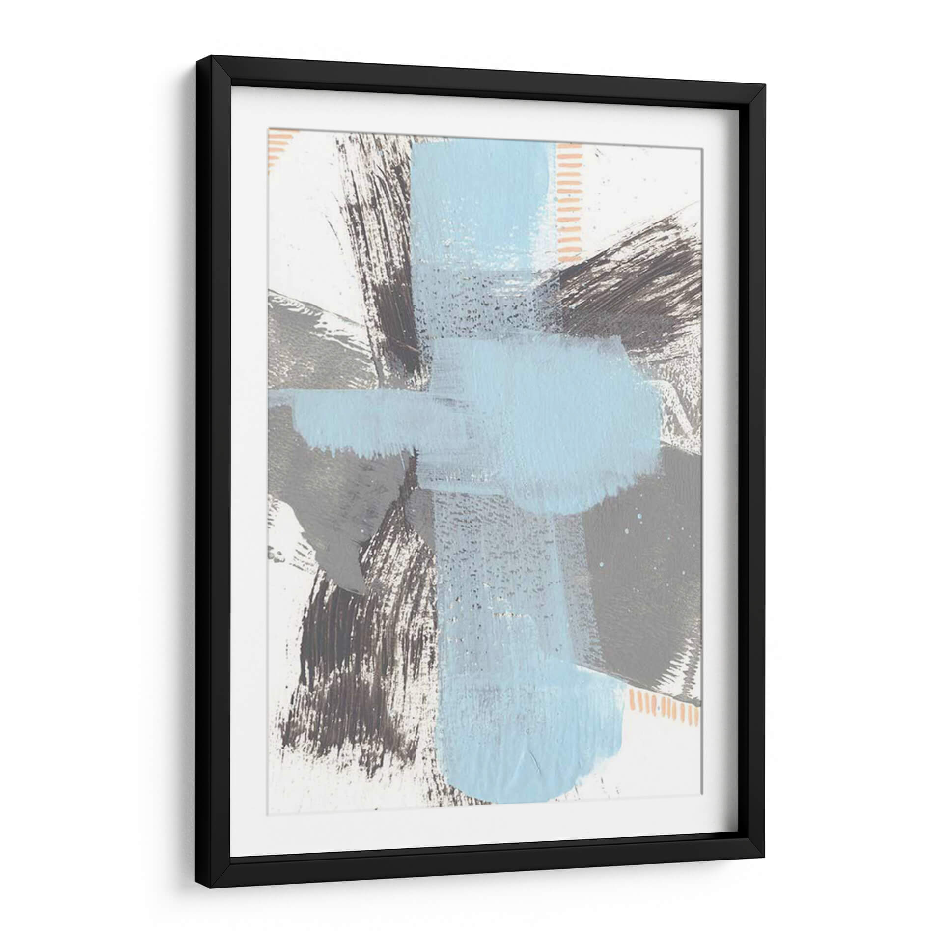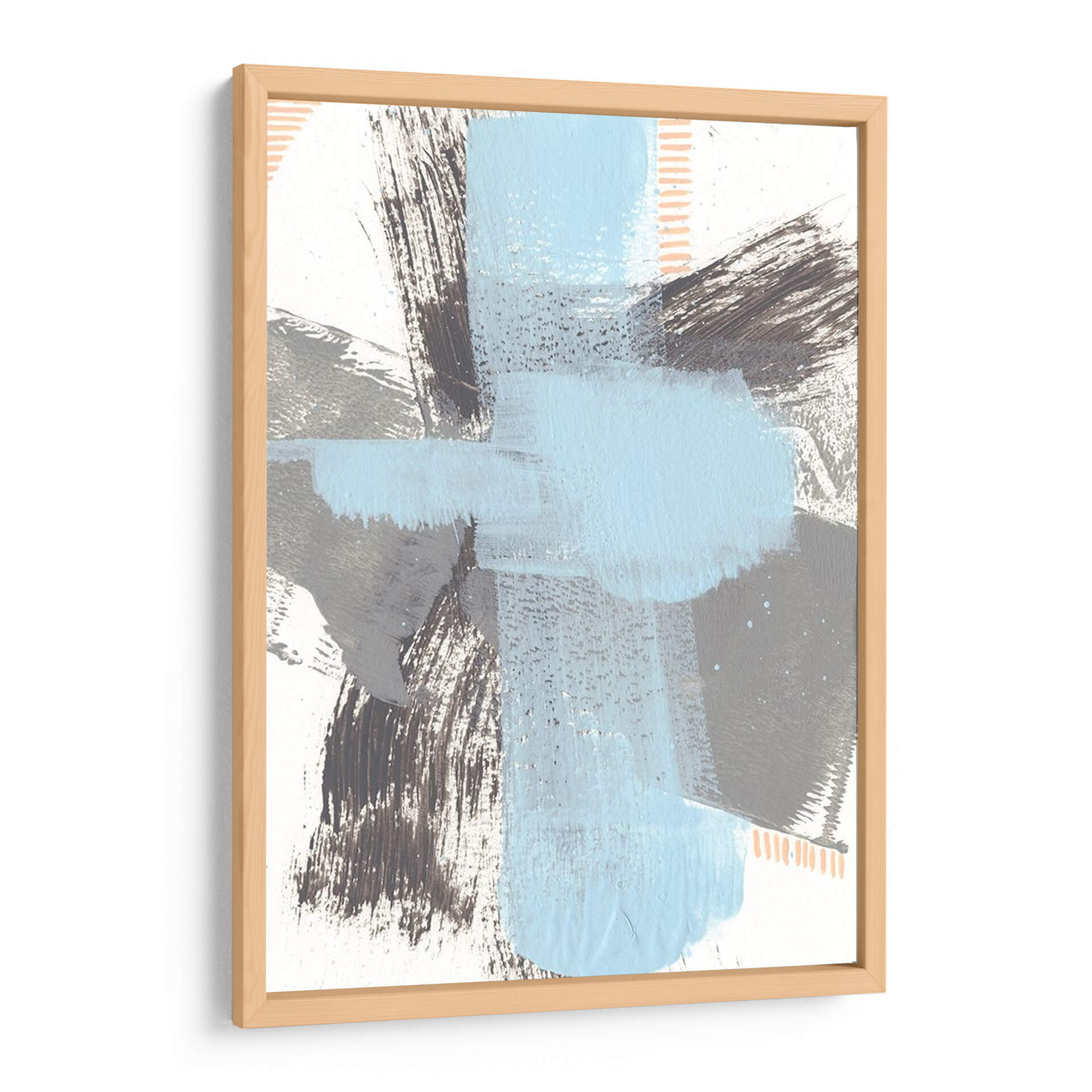 Sumérgete en la serenidad moderna con "Kenético Vi", una obra de arte abstracto que redefine la elegancia contemporánea. Esta pieza cautiva con su audaz pero armoniosa composición de pinceladas expresivas y formas geométricas superpuestas. La paleta de colores, dominada por serenos tonos de azul cielo y grises profundos, se complementa con sutiles toques de melocotón y contrastes en blanco, creando una atmósfera de calma y sofisticación. Las texturas visibles, creadas por el trazo enérgico del artista Regina Moore, invitan a la contemplación, añadiendo profundidad y dimensión a la obra. "Kenético Vi" es un cuadro decorativo ideal para infundir un ambiente de tranquilidad y estilo en cualquier espacio, desde una sala de estar minimalista hasta una oficina moderna o un sereno dormitorio. Su diseño abstracto y la cuidada interacción de colores lo convierten en un punto focal dinámico que dialoga con el entorno, aportando un toque de arte contemporáneo y originalidad. Transforma tu hogar u oficina con este cuadro decorativo que inspira paz y refleja un gusto exquisito por el arte moderno.
