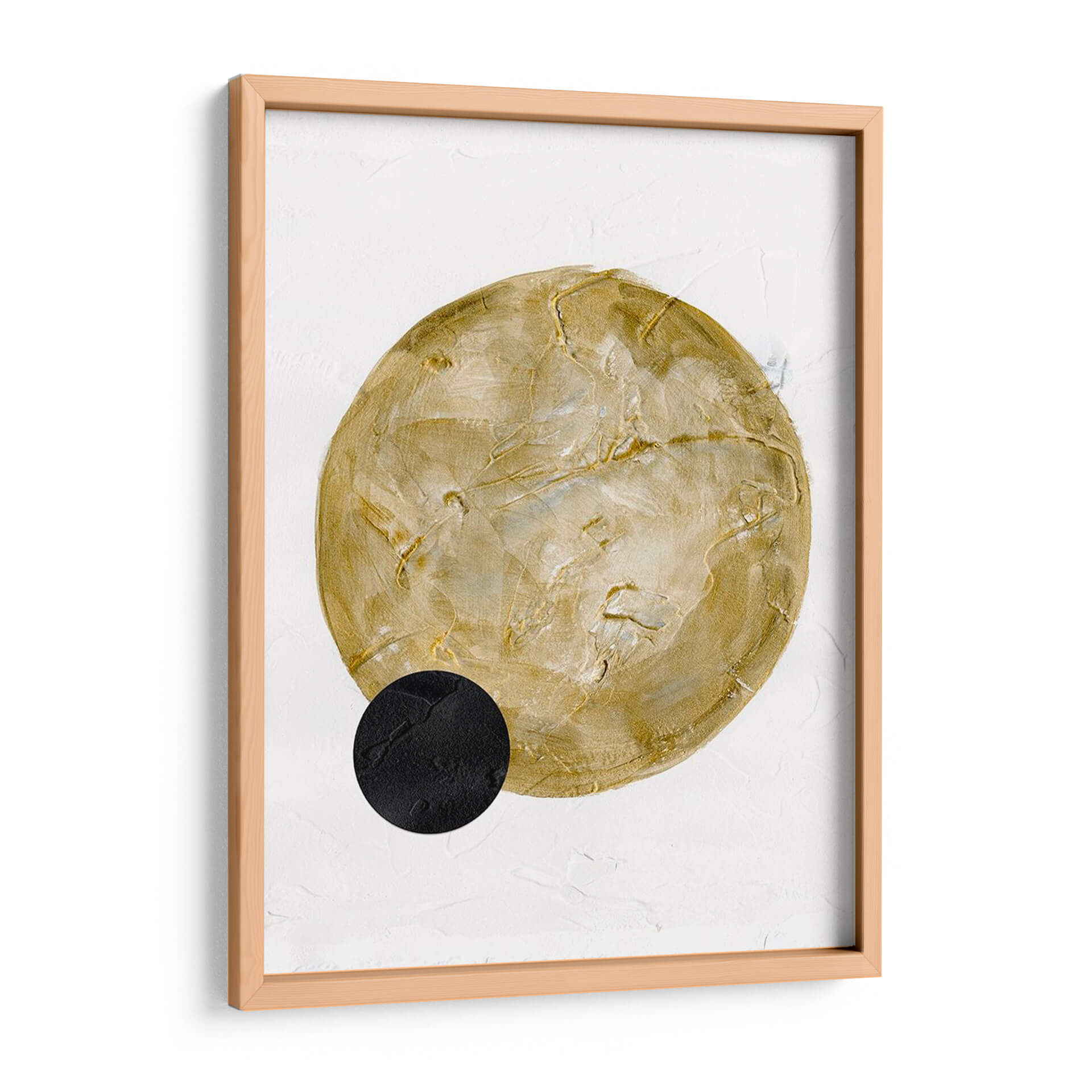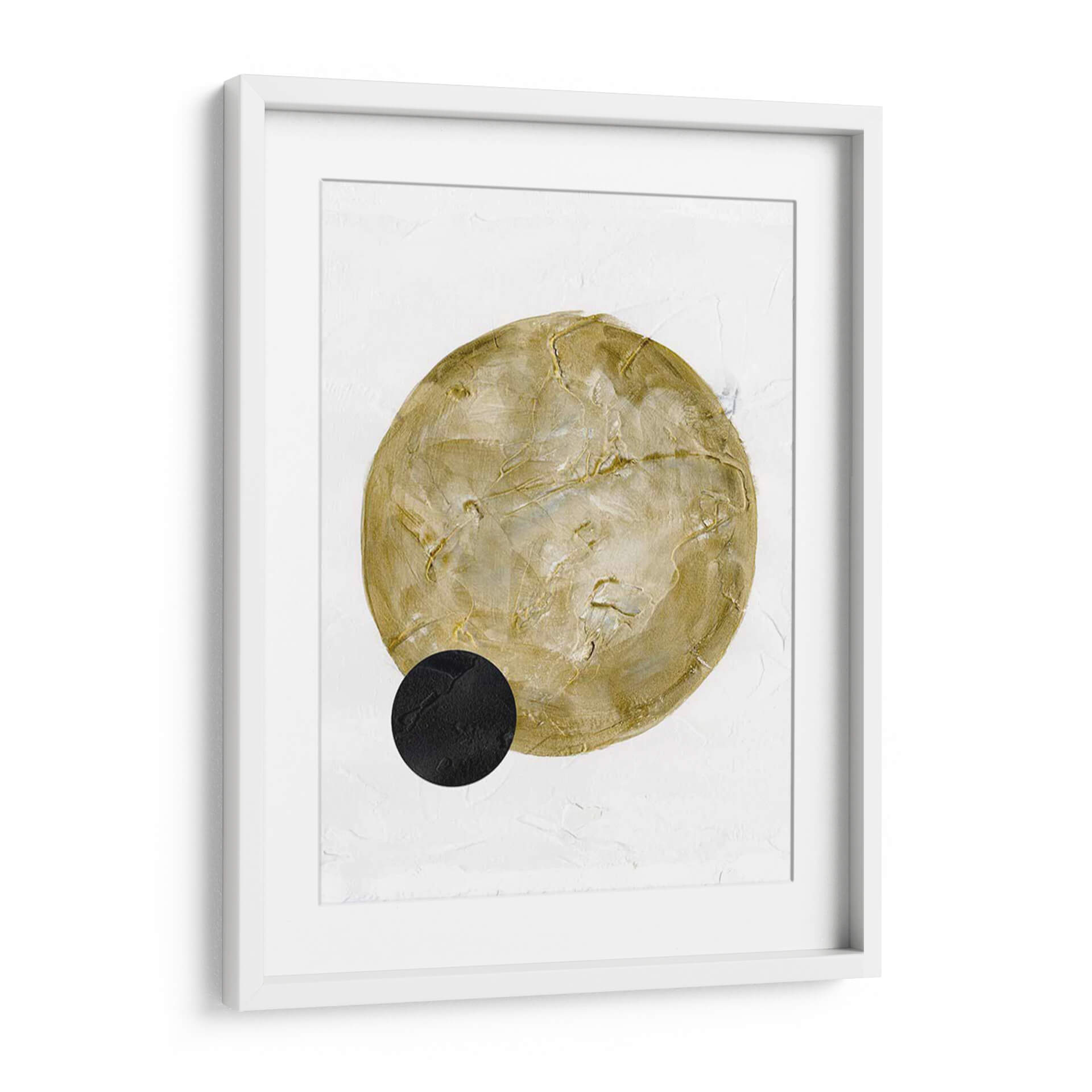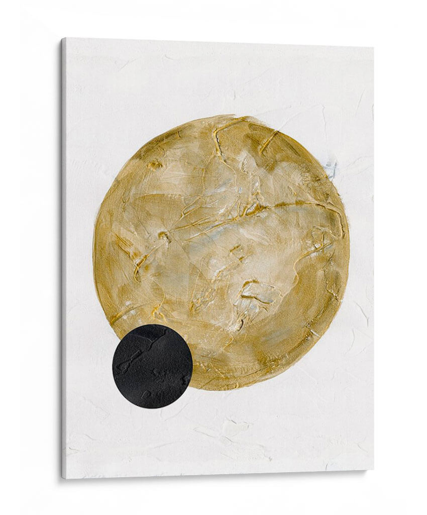 Sumérgete en la serenidad y el minimalismo escandinavo con "Luna Escandinava I", una obra de arte que evoca calma y sofisticación. Esta pieza, creada por W. Rutledge, presenta una gran forma circular en tonos dorados y ocre, texturizada y con una sutil profundidad, que contrasta elegantemente con un pequeño círculo negro en la parte inferior izquierda. El fondo blanco, con una textura sutil que recuerda a una pared encalada, proporciona el lienzo perfecto para que los elementos centrales destaquen con una presencia serena. La paleta de colores se centra en tonos neutros y terrosos, infundiendo una sensación de calidez y armonía. El estilo abstracto y la composición minimalista hacen de este cuadro decorativo una adición versátil para cualquier espacio. Es ideal para crear un ambiente de tranquilidad en dormitorios, salones modernos o espacios de meditación, aportando un toque de elegancia contemporánea sin abrumar. "Luna Escandinava I" es más que una simple decoración; es una invitación a la contemplación y a la apreciación de la belleza en su forma más pura, perfecta para quienes buscan arte que combine estilo y serenidad.
