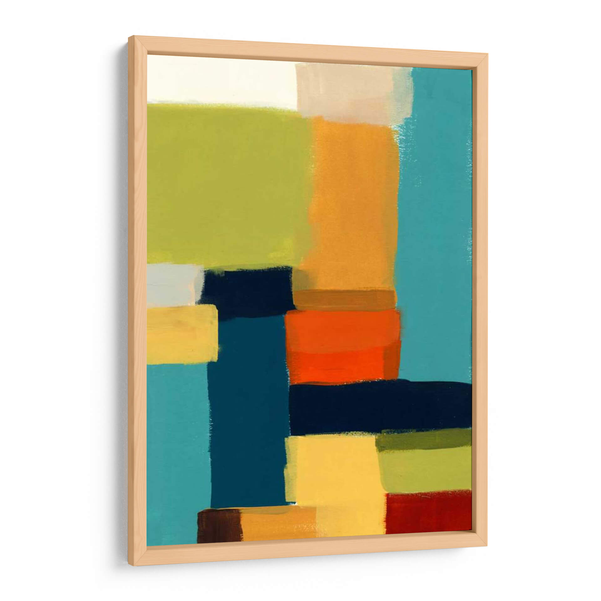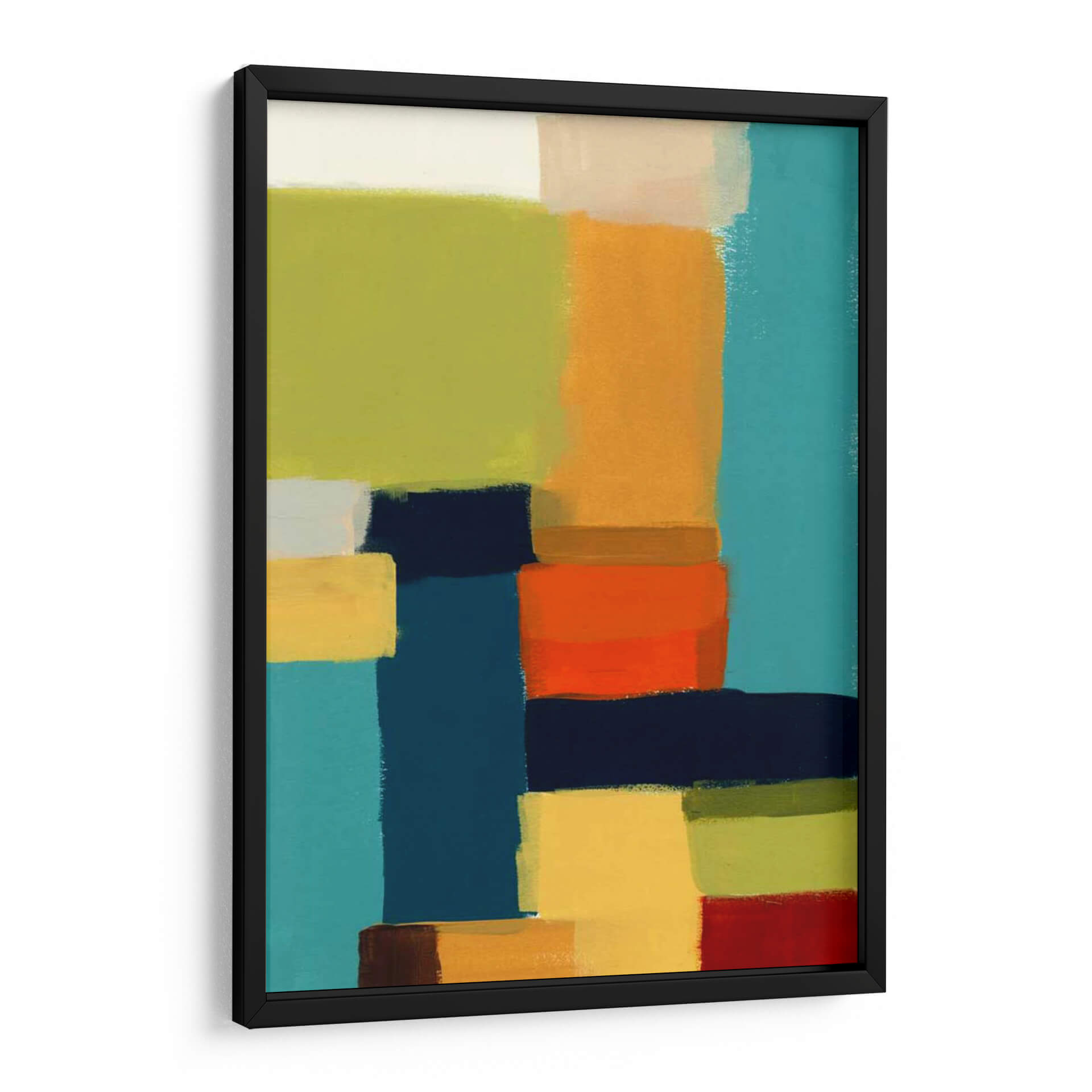 Sumérgete en la vibrante abstracción de "Metro Paleta II", una obra de arte contemporáneo que redefine la energía visual de tu espacio. Creada por la talentosa artista June Erica Vess, esta pieza se caracteriza por su audaz composición de bloques de color interconectados. Dominan la paleta tonalidades de azul turquesa profundo y brillante, contrastadas con vibrantes naranjas, ocres cálidos, verdes apacibles y toques de blanco puro y rojo intenso. La interacción de estos colores, aplicados con una textura que sugiere pinceladas gestuales, crea una sensación de profundidad y dinamismo, evocando la estructura rítmica de una ciudad moderna o la armonía de un paisaje abstracto. "Metro Paleta II" es más que un simple cuadro decorativo; es una declaración de estilo que aporta modernidad y carácter a cualquier ambiente. Ideal para salones, oficinas o estudios que buscan un toque de audacia y sofisticación. Deja que esta composición geométrica y llena de vida se convierta en el punto focal de tu decoración, invitando a la contemplación y al diálogo. Una pieza versátil que complementa tanto estilos decorativos contemporáneos como eclécticos, aportando una dosis de arte abstracto que inspira y energiza.