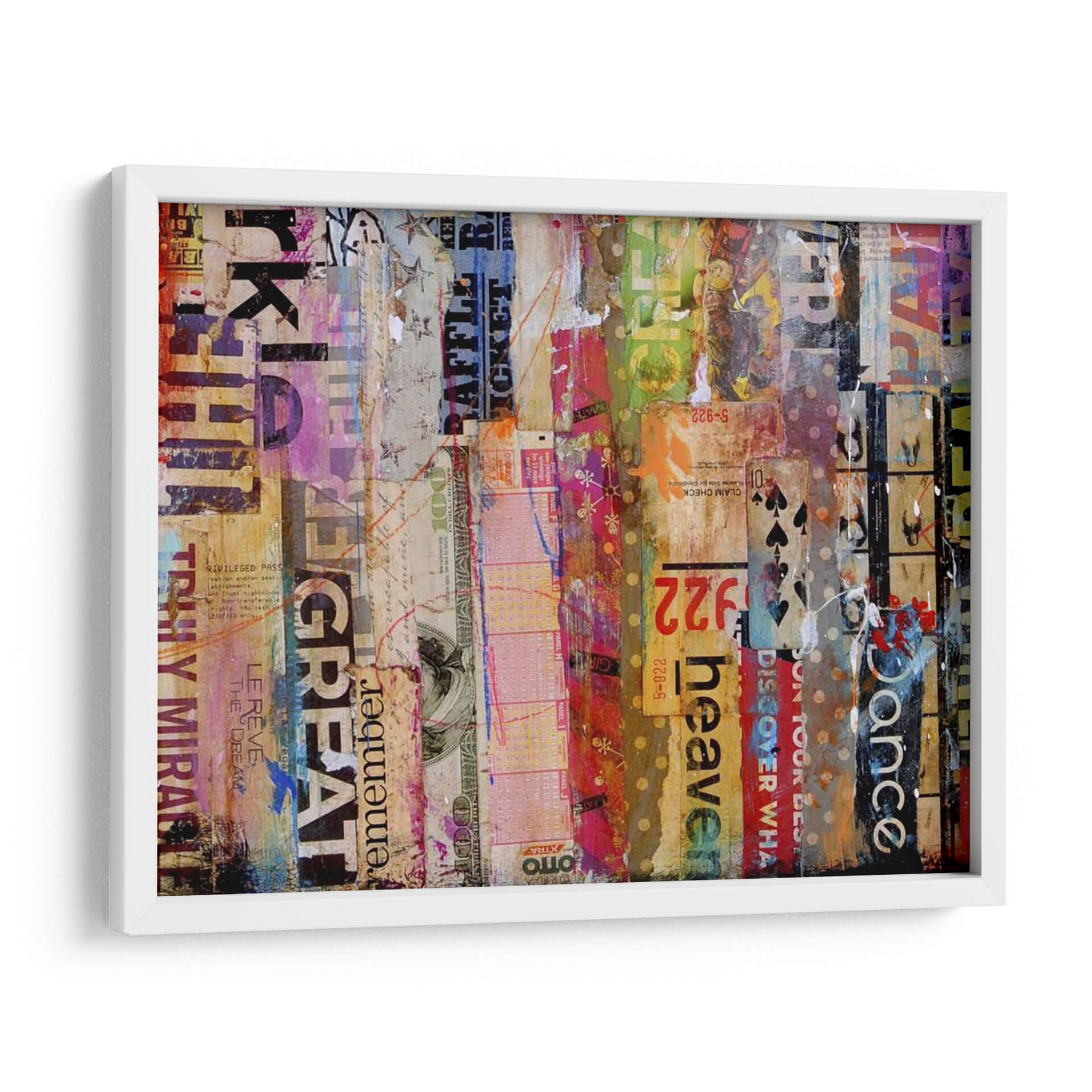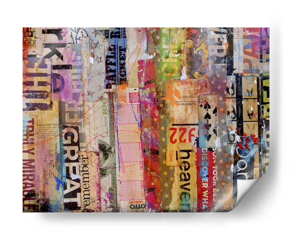 Sumérgete en la vibrante y caótica energía de 'Mezcla De Metro 21 Iii', una obra de arte contemporáneo que reinterpreta el collage urbano. Esta pieza, creada por Erin Ashley, es un tapiz visual que entrelaza fragmentos de texto, imágenes y patrones de manera audaz y dinámica. Los colores explotan en una paleta diversa que va desde tonos cálidos y terrosos hasta acentos vibrantes de rojo, amarillo y azul, creando un contraste fascinante. La composición se asemeja a una pila de periódicos, carteles y billetes desgastados por el tiempo, evocando una sensación de nostalgia y la crudeza de la vida urbana. Cada elemento, desde las letras desgastadas hasta los sellos y números aleatorios, cuenta una historia silenciosa, invitando al espectador a descifrar sus propios significados. Este cuadro decorativo es ideal para espacios que buscan un toque de carácter y modernidad, como una sala de estar, un estudio o una oficina. Su estilo ecléctico y su profundidad visual lo convierten en un punto focal cautivador que estimula la conversación y la reflexión. Añade un toque de arte urbano y originalidad a tu decoración con esta pieza única de Erin Ashley.