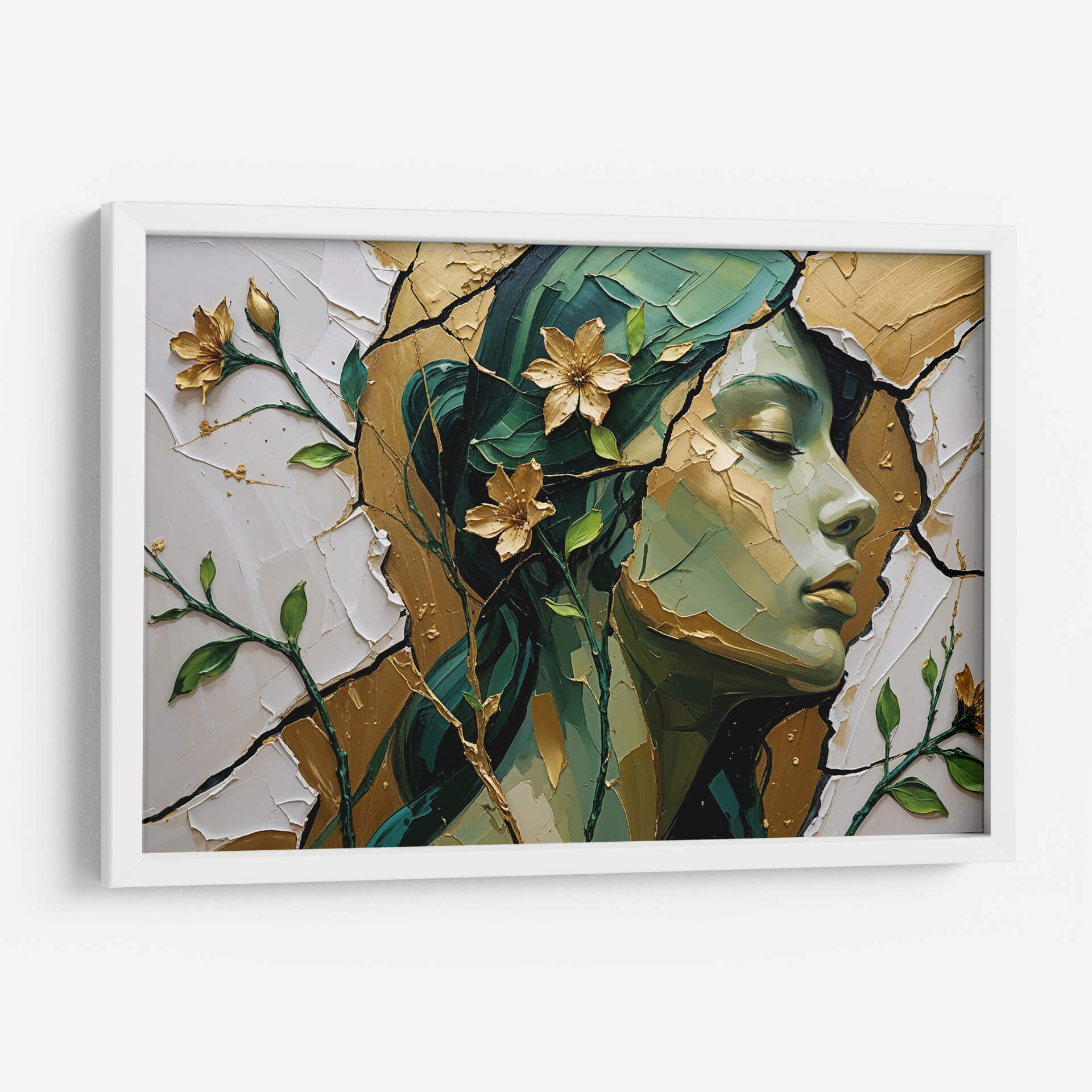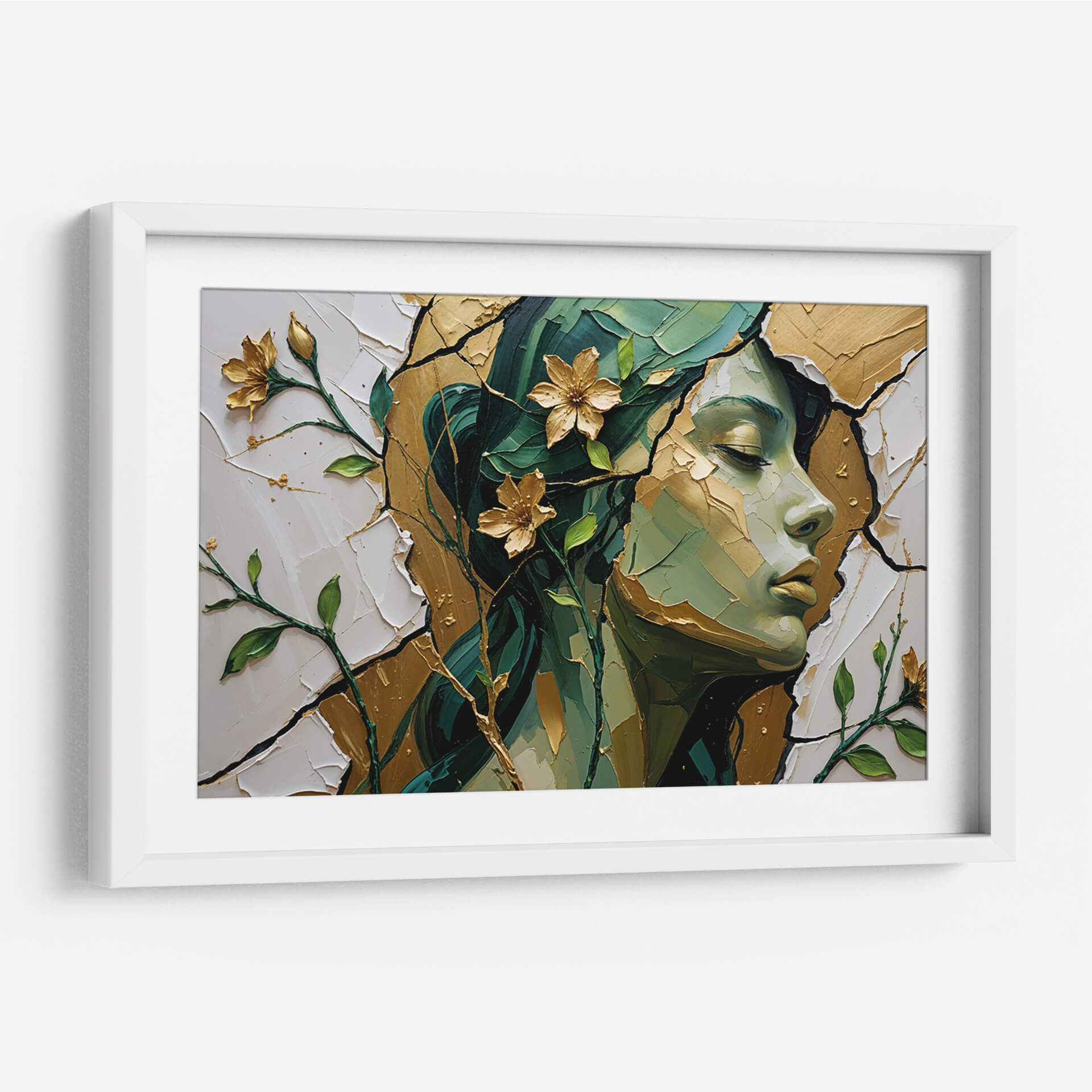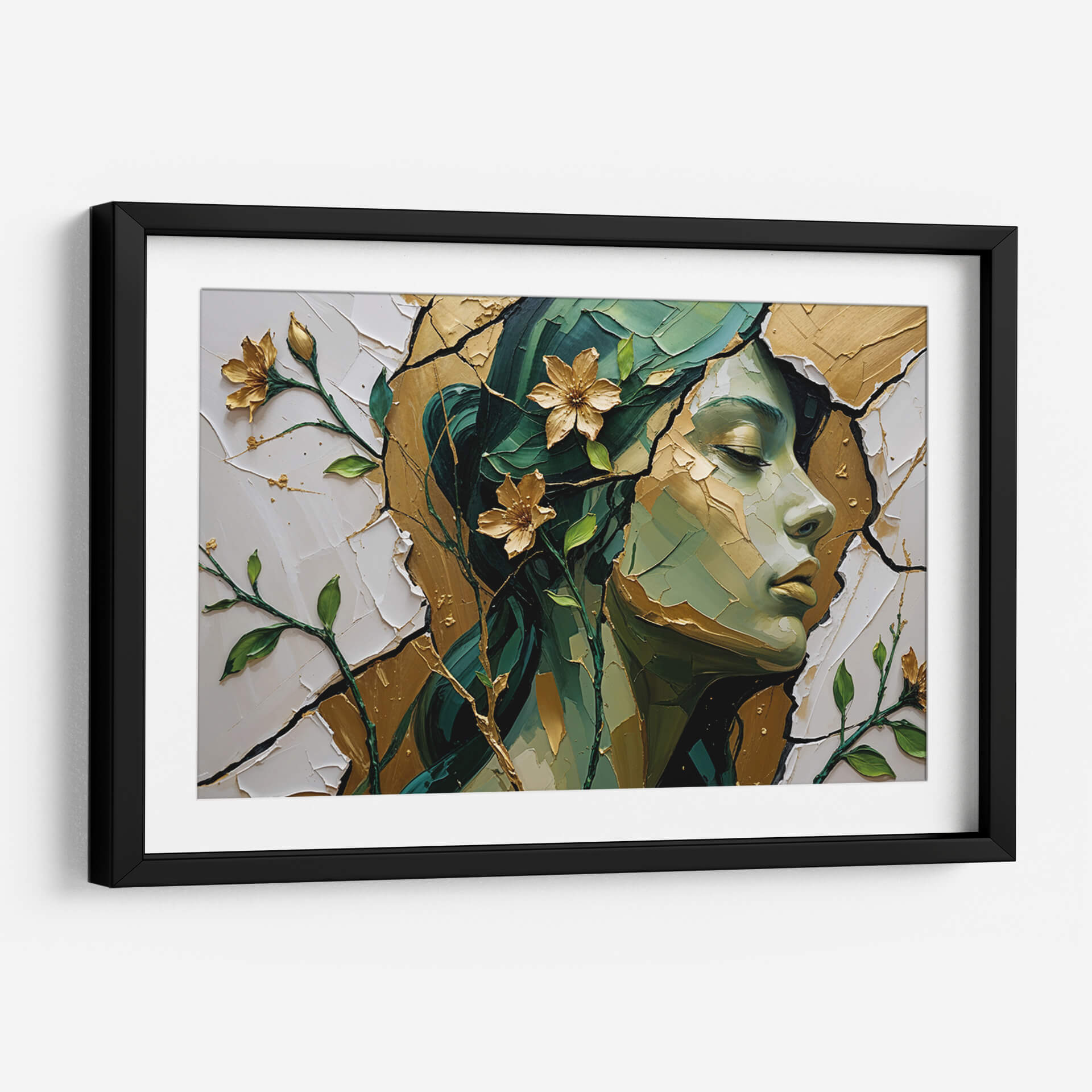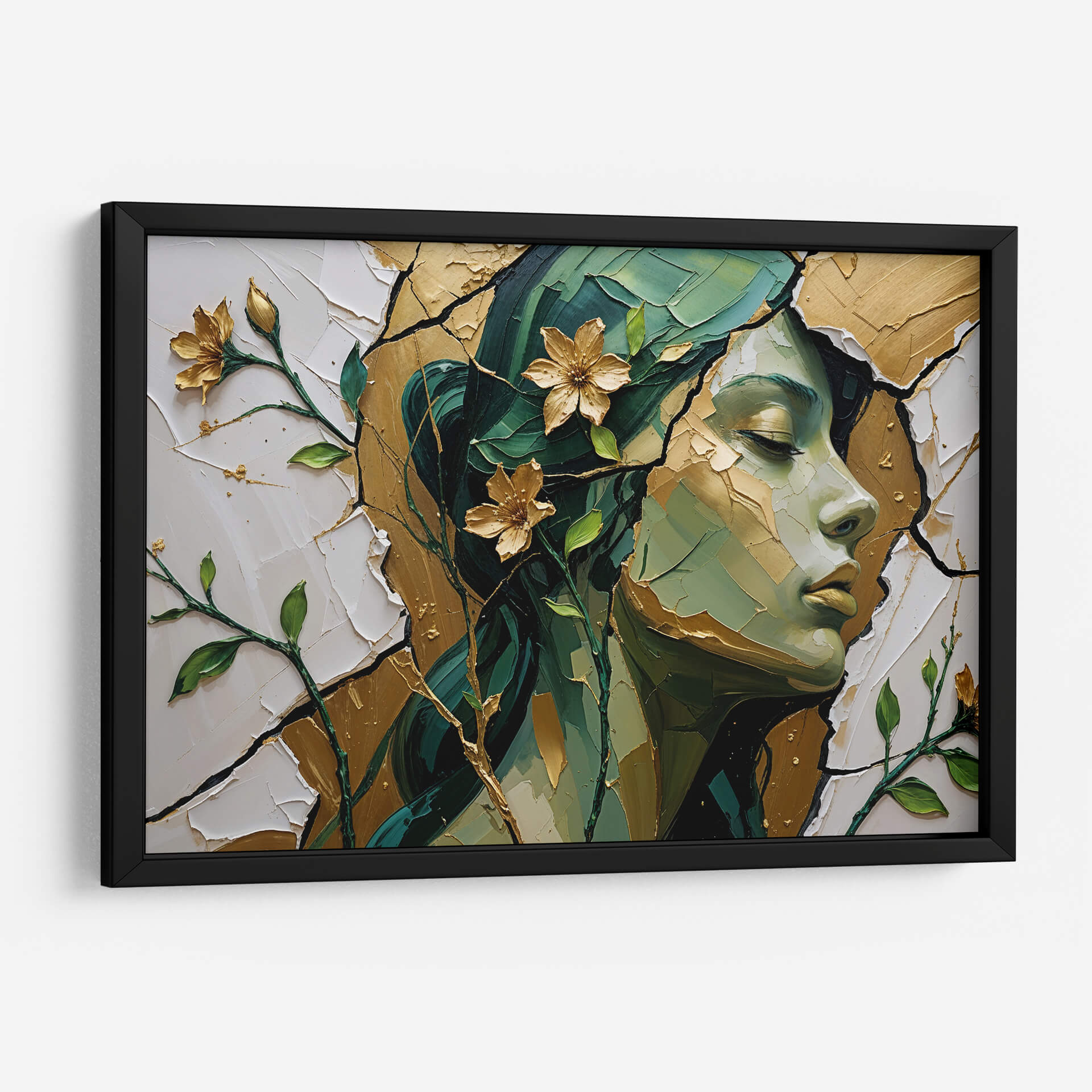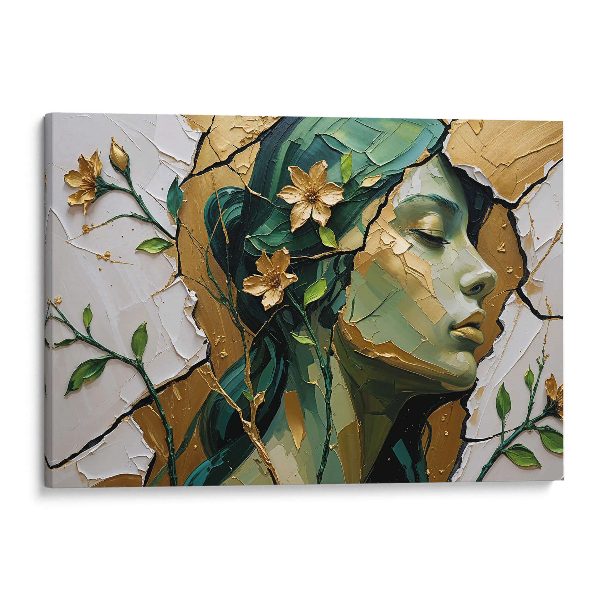 Sumérgete en la enigmática obra de arte "Nací entre Muros" de Carlos Franken, una pieza que trasciende la mera decoración para convertirse en una experiencia visual y emocional. Este cuadro decorativo cautiva con su representación de un rostro femenino, cuyos contornos se fusionan con elementos de la naturaleza y texturas que evocan estructuras rocosas o muros agrietados. La paleta de colores, dominada por tonos verde esmeralda y jade, se entrelaza magistralmente con dorados resplandecientes y blancos texturizados, creando un contraste impactante entre lo orgánico y lo construido, lo delicado y lo robusto. Las flores doradas, brotando entre las grietas, simbolizan la resiliencia y la belleza que emerge incluso en entornos restrictivos. La técnica de aplicación de la pintura, con empastes gruesos y pinceladas visibles, confiere a la obra una profundidad y una calidad casi escultórica, invitando al espectador a una contemplación detallada. "Nací entre Muros" es ideal para añadir un toque de sofisticación y misterio a tu sala de estar, un punto focal introspectivo para tu oficina, o una pieza de conversación única en cualquier espacio que busque un arte con alma y narrativa. Su estilo contemporáneo y su profunda carga simbólica la convierten en una elección excepcional para quienes aprecian el arte que inspira y provoca reflexiones sobre la fortaleza interior y la conexión con el entorno.