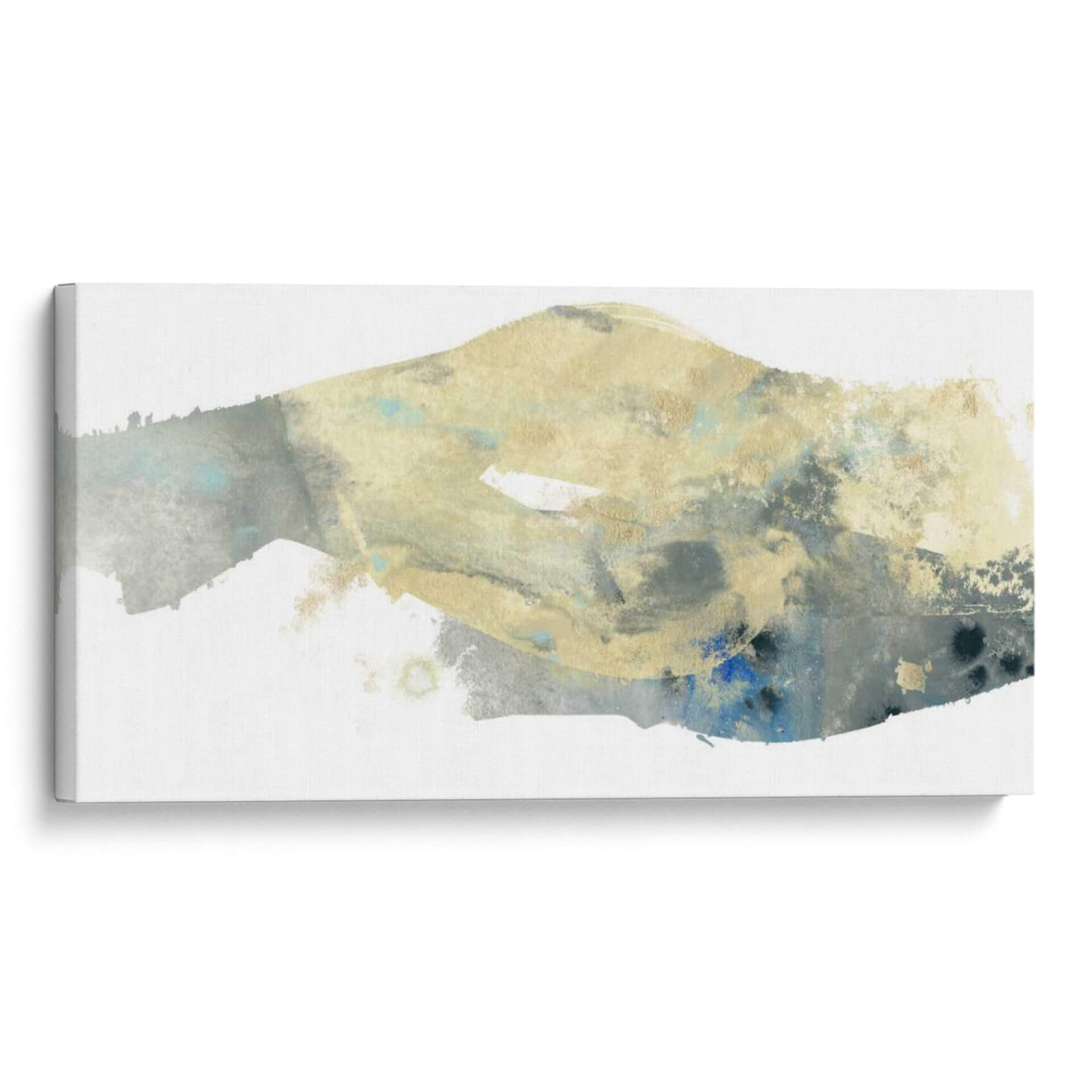 Sumérgete en la serenidad y la profundidad de "Paisaje Geode I", una obra de arte abstracta que evoca la belleza natural de formaciones geológicas y paisajes etéreos. June Erica Vess, con su maestría en la acuarela y la técnica mixta, ha creado una pieza que invita a la contemplación. Los tonos tierra, predominantemente ocres y dorados, se entrelazan con sutiles pinceladas de azul cobalto y grises profundos, creando un contraste dinámico y una atmósfera envolvente. La composición, que fluye horizontalmente, sugiere una vasta extensión o una sección transversal de la tierra, con texturas que recuerdan a rocas erosionadas o cristales formándose. Cada trazo parece capturar la esencia de un momento efímero, una visión fugaz de la naturaleza en su forma más pura y abstracta. Este cuadro decorativo es ideal para espacios que buscan un toque de sofisticación y calma, como salones modernos, estudios tranquilos o dormitorios que inviten al descanso. Añade una dimensión de elegancia atemporal y conexión con la tierra a tu decoración.