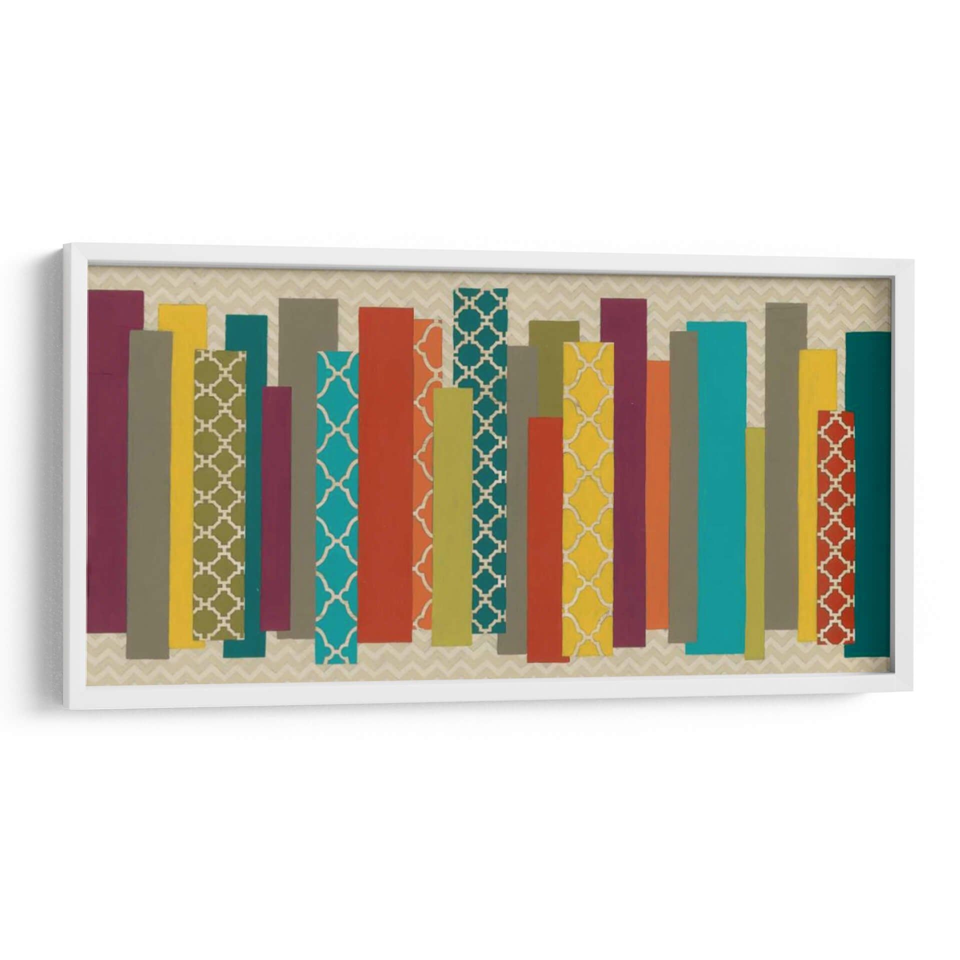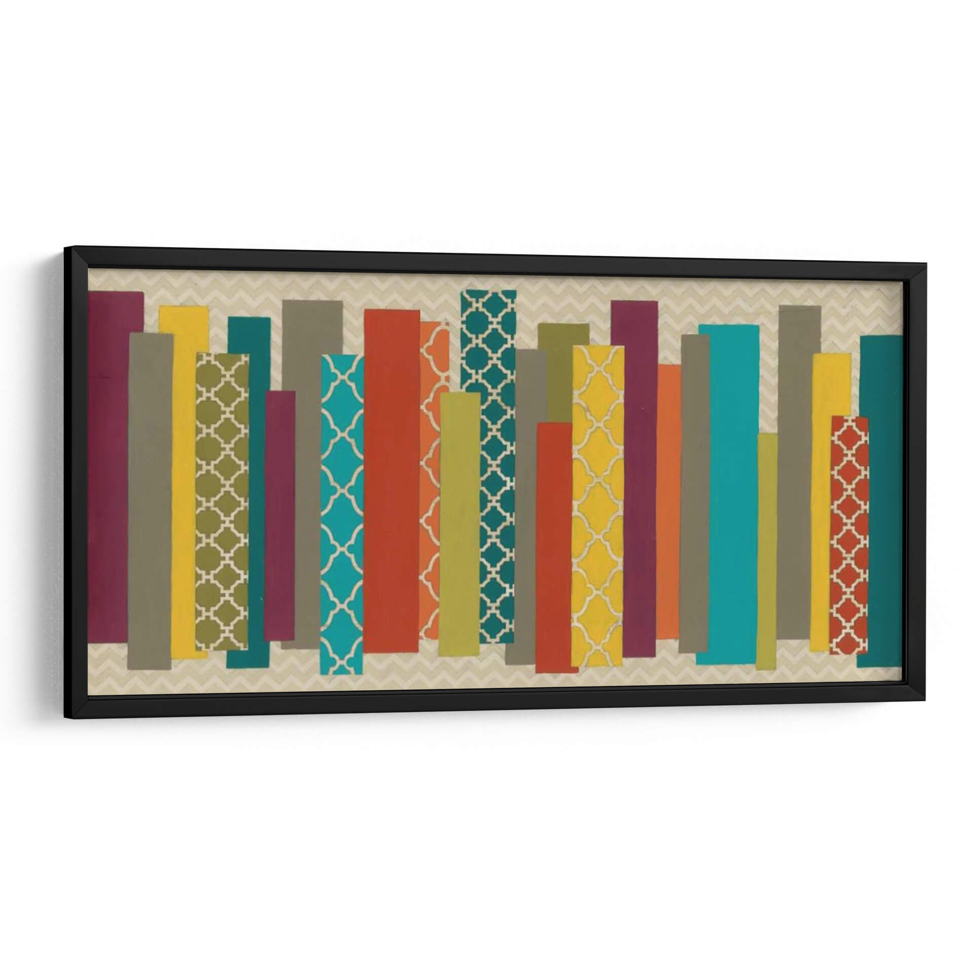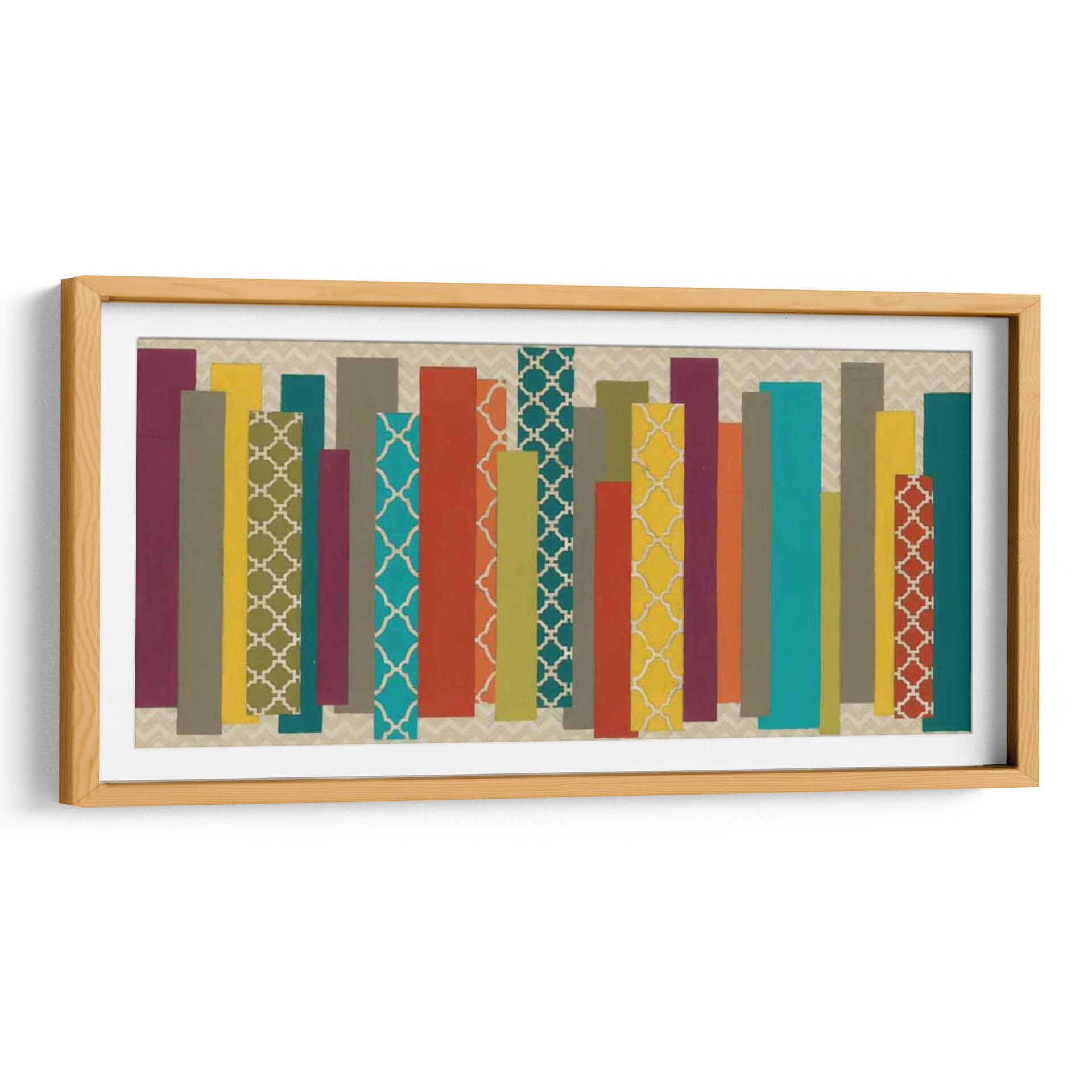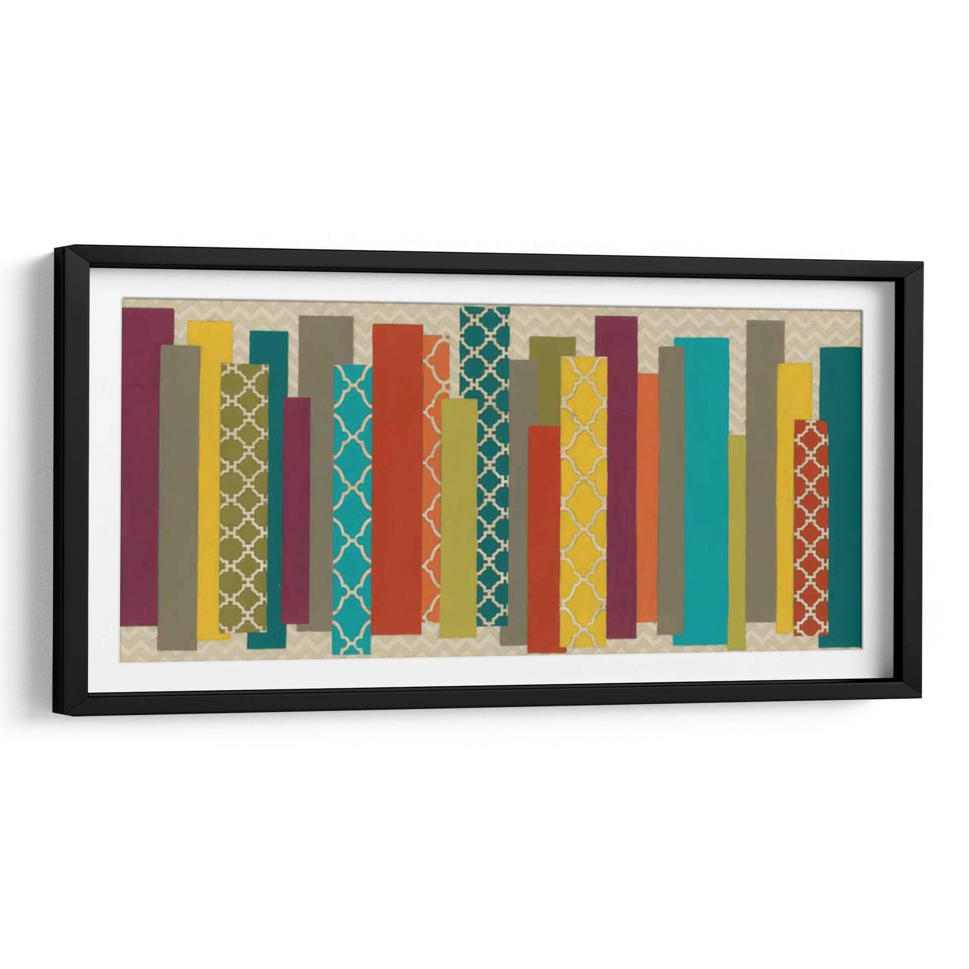 Transforma tu espacio con el vibrante cuadro decorativo "Patternscape I" de June Erica Vess. Esta obra de arte abstracta presenta una cautivadora composición de tiras verticales en una rica paleta de colores que incluye tonos tierra, cálidos naranjas, amarillos soleados, profundos burdeos y alegres turquesas, contrastando con patrones geométricos sutiles. El fondo, con un delicado patrón de espiga en beige, ancla la pieza y realza la energía de los elementos centrales. "Patternscape I" evoca una sensación de orden y dinamismo a la vez, ideal para añadir un toque de modernidad y estilo a cualquier habitación. Su diseño versátil lo convierte en la elección perfecta para salas de estar, oficinas o dormitorios que buscan un punto focal artístico y lleno de personalidad. Las diferentes alturas y anchuras de las franjas crean un ritmo visual que invita a la contemplación, mientras que la audacia de los colores asegura que esta pieza se convierta en el centro de atención. Descubre cómo este cuadro decorativo puede inyectar vida y sofisticación en tu hogar u oficina, reflejando buen gusto y una apreciación por el arte contemporáneo.