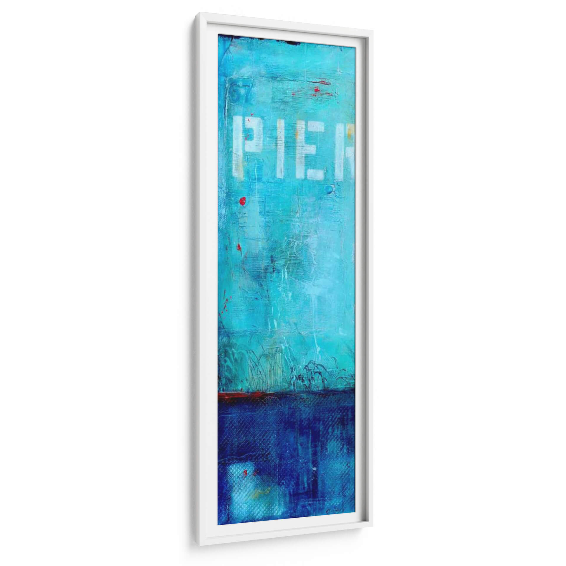 Sumérgete en la atmósfera marítima y moderna de "Pier 34 I", una obra de arte abstracta y evocadora del artista Erin Ashley. Este cuadro decorativo se caracteriza por su vibrante paleta de azules intensos que evocan la profundidad del océano y el cielo, contrastando sutilmente con toques de rojo y blanco que añaden dinamismo y un carácter urbano. La textura rica y las capas de pintura sugieren una narrativa visual que invita a la contemplación. Las formas abstractas y las marcas de stencil, que insinúan la palabra "PIER", confieren a esta pieza una cualidad industrial y contemporánea, perfecta para quienes buscan un arte con carácter y personalidad. "Pier 34 I" es ideal para transformar cualquier espacio, desde una sala de estar moderna hasta una oficina, aportando un toque de sofisticación y misterio. Su composición vertical y su paleta de colores energizante la convierten en un punto focal cautivador que complementa estilos decorativos diversos, desde el industrial hasta el contemporáneo, añadiendo profundidad y una sensación de lugar a tu hogar o lugar de trabajo. Descubre la fuerza del arte abstracto con esta pieza única.