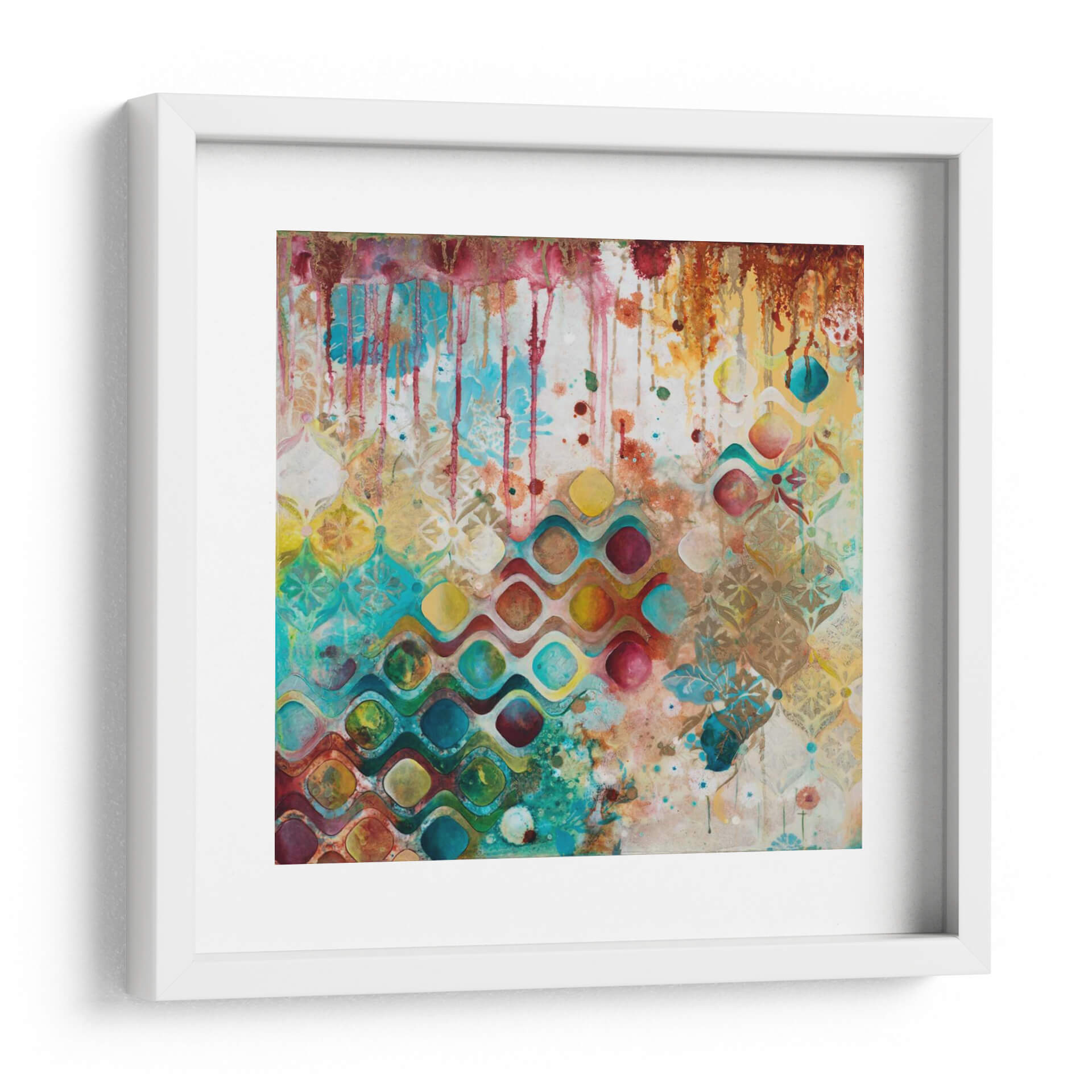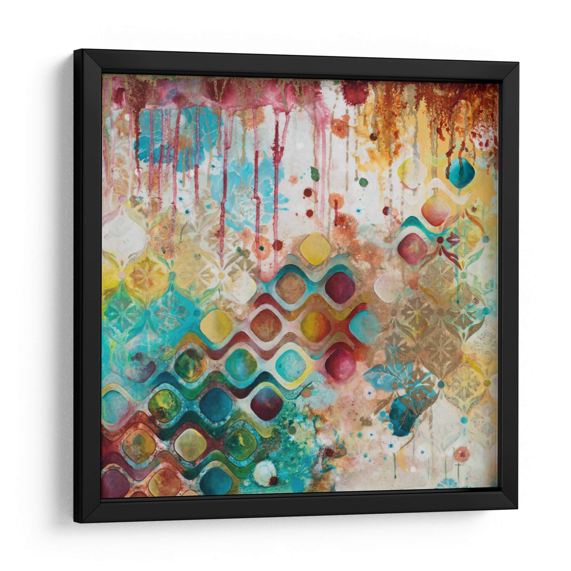 Sumérgete en un universo de color y textura con "Por El Bien De La Riqueza", una obra maestra abstracta de Heather Robinson. Este cuadro decorativo cautiva con su explosión vibrante de tonos, donde el azul turquesa, el amarillo dorado, el rojo carmesí y los toques de verde esmeralda se entrelazan en una danza hipnótica. Las formas geométricas fluidas, reminiscentes de olas o pétalos estilizados, se superponen a un patrón sutil y texturizado, creando una profundidad visual fascinante. Gotas de pintura y pinceladas expresivas añaden una cualidad dinámica y enérgica a la composición, evocando una sensación de movimiento y vitalidad. La obra transmite una atmósfera de alegría exuberante y sofisticación moderna, ideal para infundir vida y carácter en cualquier espacio. Perfecta como pieza focal en una sala de estar contemporánea, un comedor elegante o incluso para añadir un toque de arte vibrante a una oficina, "Por El Bien De La Riqueza" es una invitación a celebrar la belleza en su forma más pura y abstracta. Su riqueza cromática y su diseño intrincado aseguran que sea un tema de conversación y una fuente de inspiración diaria.