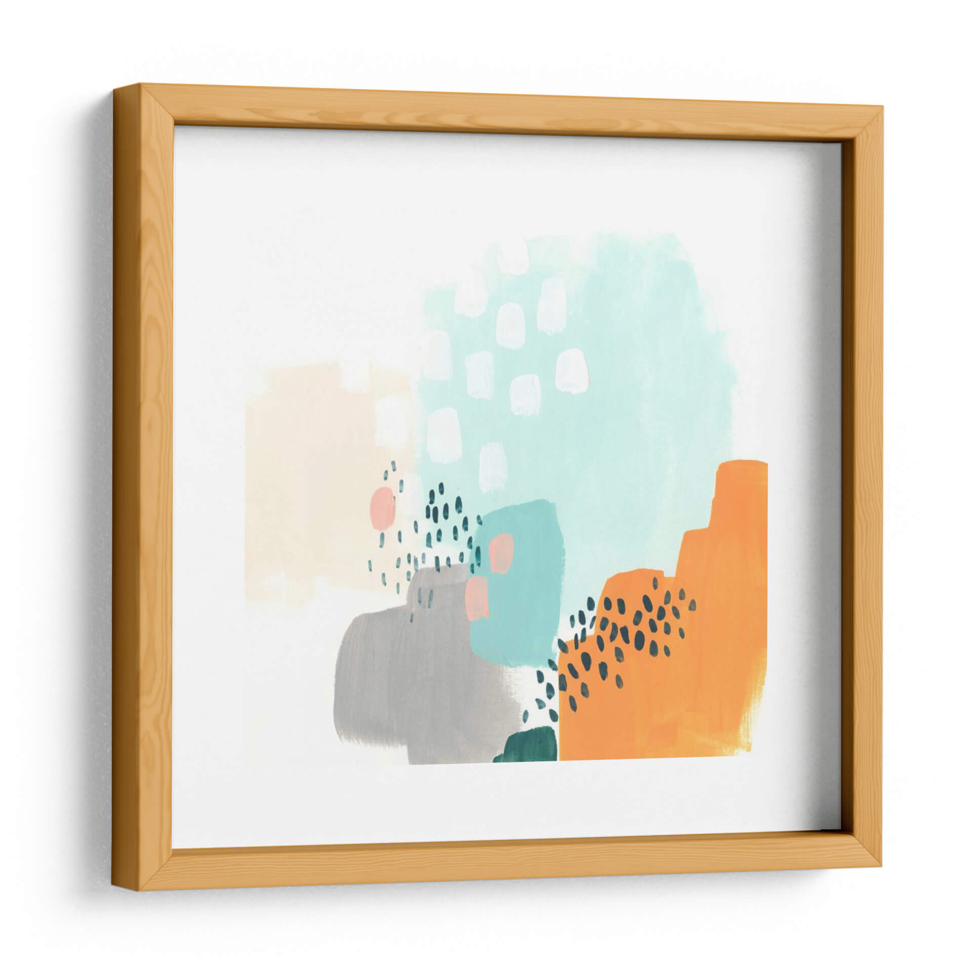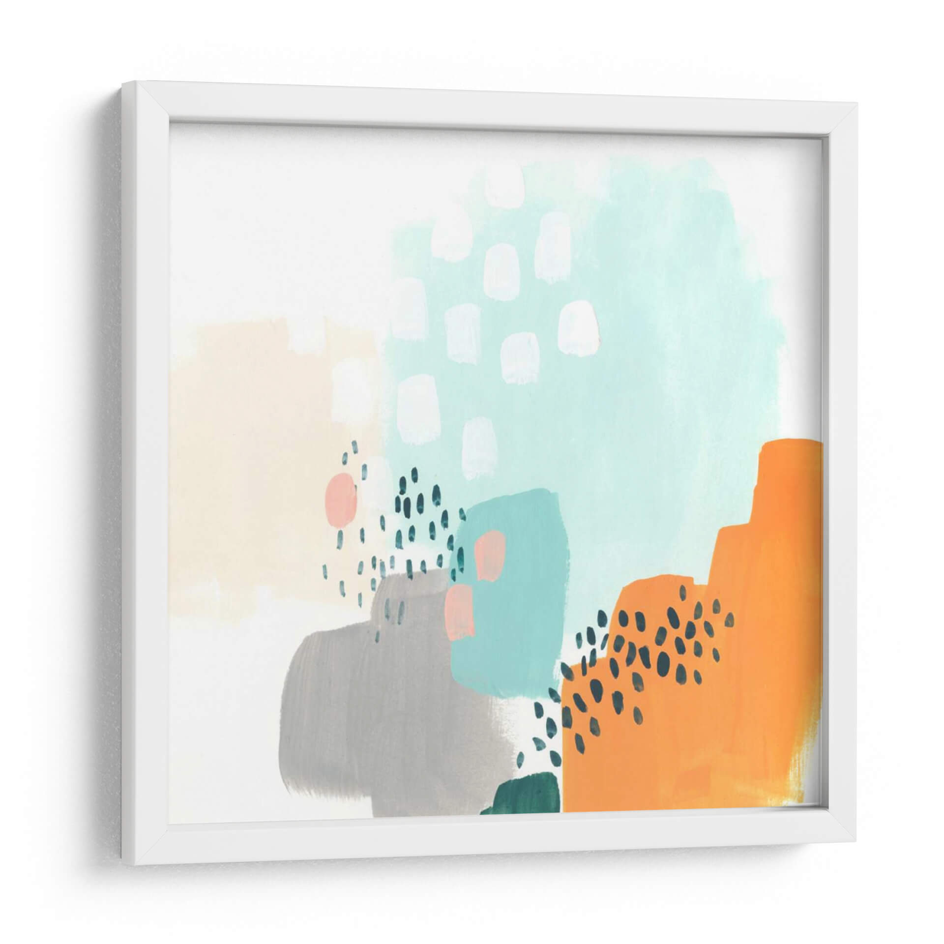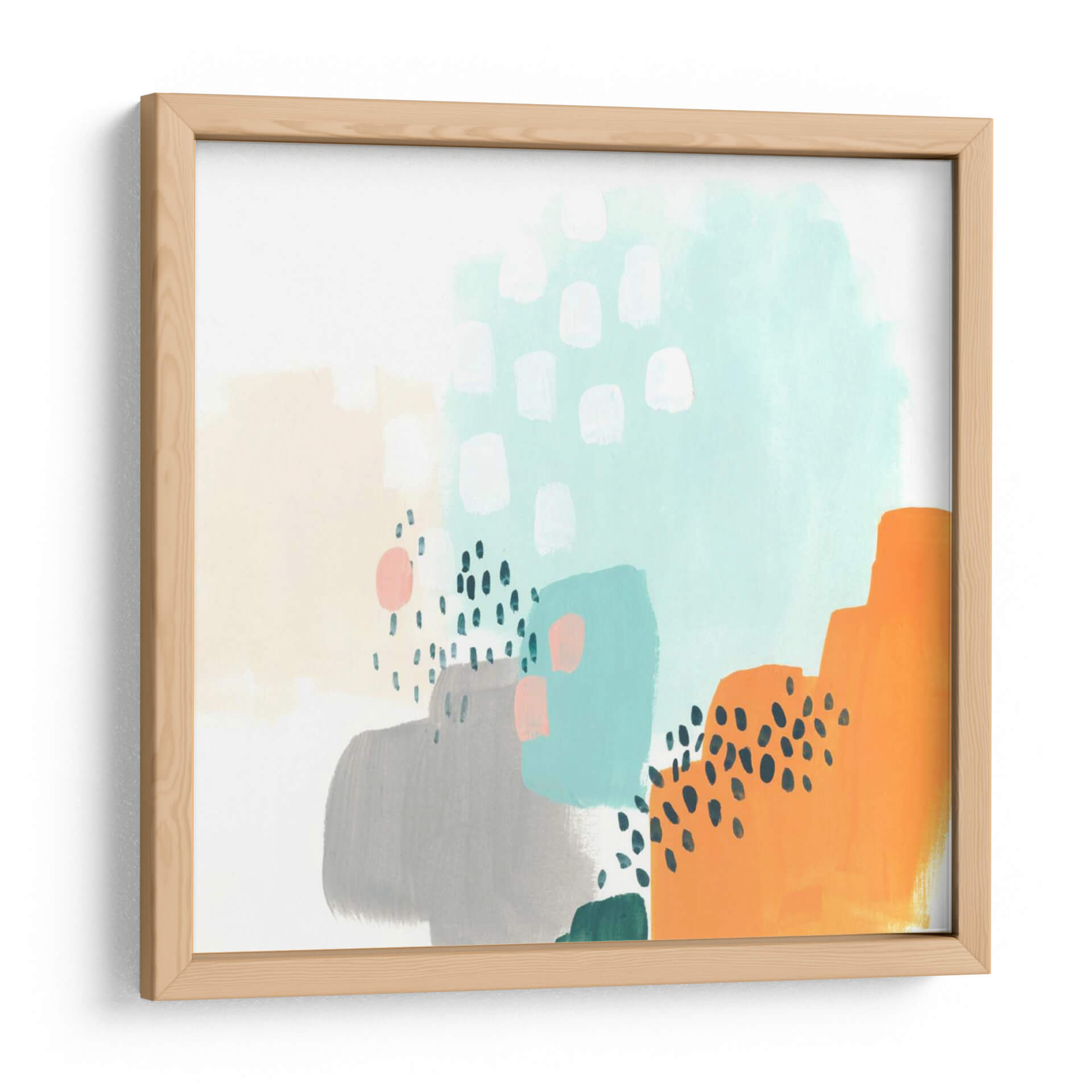 Sumérgete en la vibrante abstracción de "Precepto III", una obra de June Erica Vess que irradia energía y modernidad. Este cuadro decorativo es una explosión controlada de formas orgánicas y trazos juguetones, donde bloques de color pastel como el melocotón suave y el azul aguamarina se entrelazan con grises sutiles y un audaz naranja. Pequeños detalles de puntos negros y pinceladas verticales añaden textura y un dinamismo intrigante a la composición. La paleta de colores, aunque variada, mantiene una armonía refrescante, evocando una sensación de optimismo y creatividad. "Precepto III" es ideal para espacios que buscan un toque contemporáneo y un acento de color vibrante. Imagina este cuadro como el punto focal de tu sala de estar moderna, aportando vida a un comedor minimalista o inyectando inspiración en una oficina en casa. Su estilo abstracto lo convierte en una pieza versátil, capaz de dialogar con diversas decoraciones, desde las más sencillas hasta las más audaces. Deja que esta obra estimule tus sentidos y transforme tu entorno con su estética única y su carácter contemporáneo. Añade un toque de arte moderno a tu hogar y descubre la capacidad del color y la forma para transformar un espacio.