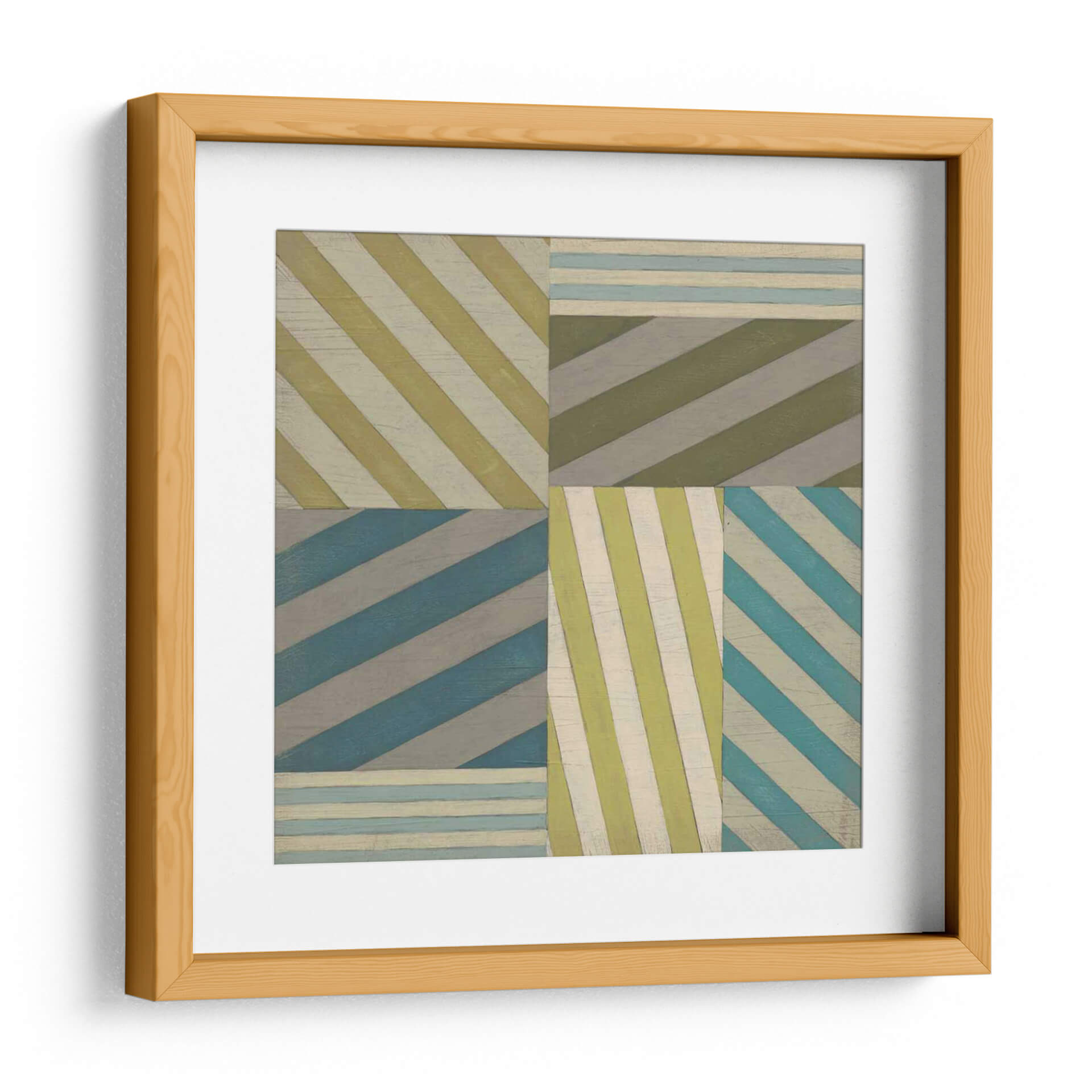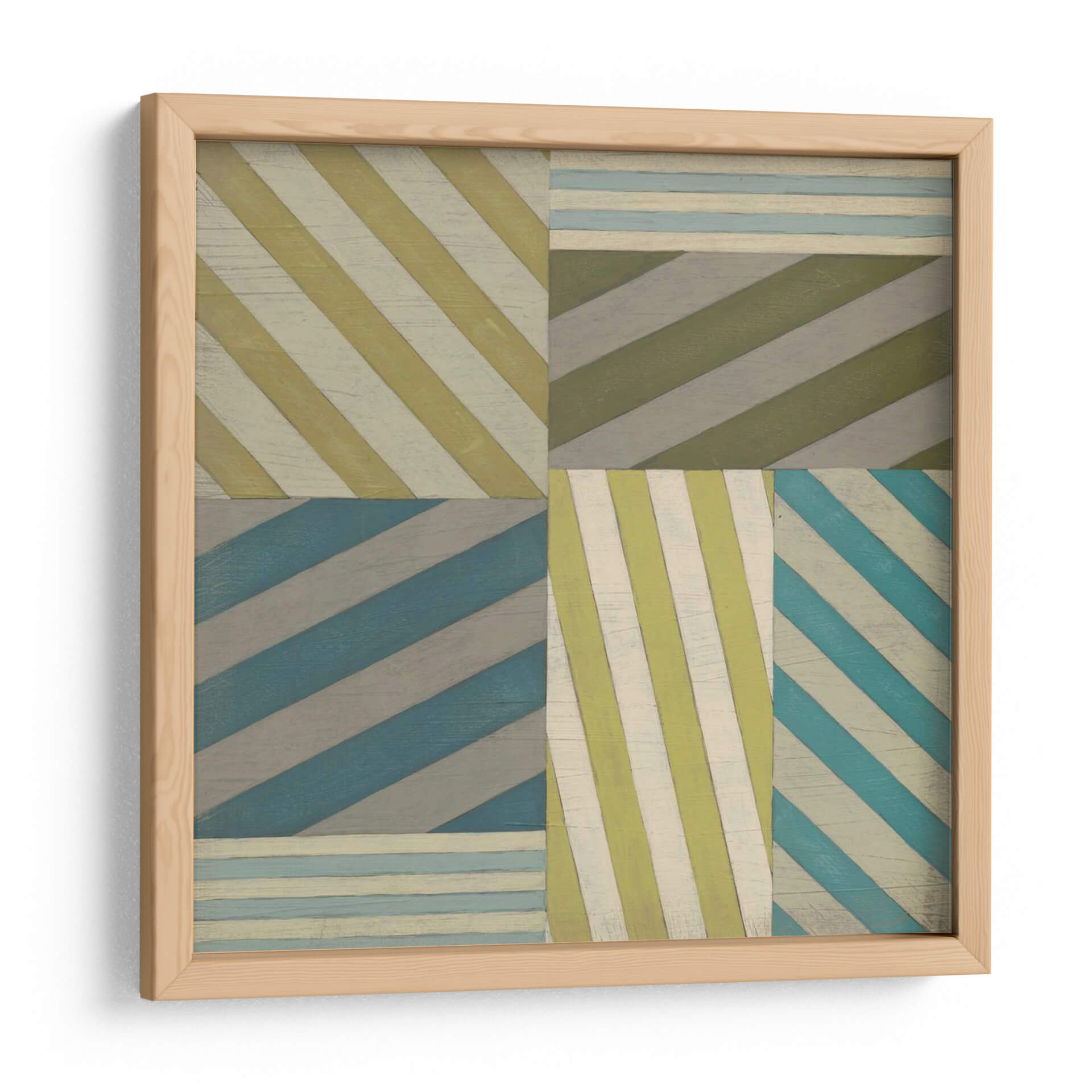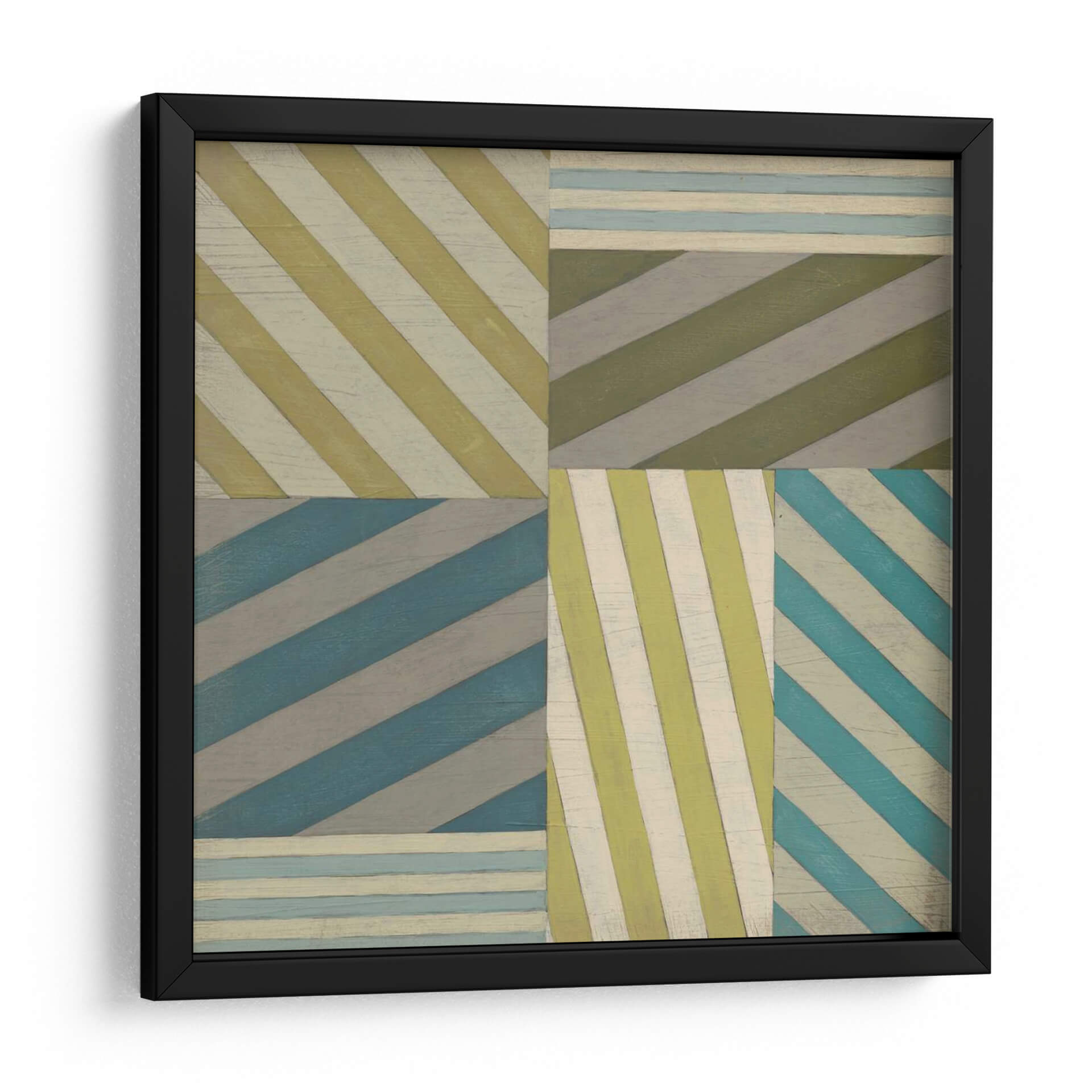 Transforma tu espacio con "Rayas Náuticas I", una obra de arte contemporánea de June Erica Vess que aporta una dosis de serenidad y estilo a cualquier habitación. Este cuadro decorativo se caracteriza por su audaz composición geométrica, dividida en bloques que presentan patrones de rayas diagonales y horizontales en una paleta de colores suave y relajante. Los tonos de verde oliva, azul marino, gris piedra y blanco roto se entrelazan creando una sensación de calma y orden, evocando la brisa marina y la tranquilidad de un día en la costa. La textura sutil y el acabado ligeramente desgastado añaden profundidad y carácter, invitando a la contemplación. Ideal para salones, dormitorios o estudios que buscan un toque de sofisticación moderna y un ambiente apacible. "Rayas Náuticas I" es más que una simple decoración de pared; es una invitación a la armonía visual y un punto focal que complementa tanto interiores minimalistas como decoraciones costeras o bohemias. Descubre cómo este diseño abstracto puede revitalizar tu hogar, aportando una atmósfera fresca y elegante que te transportará a un oasis de paz.