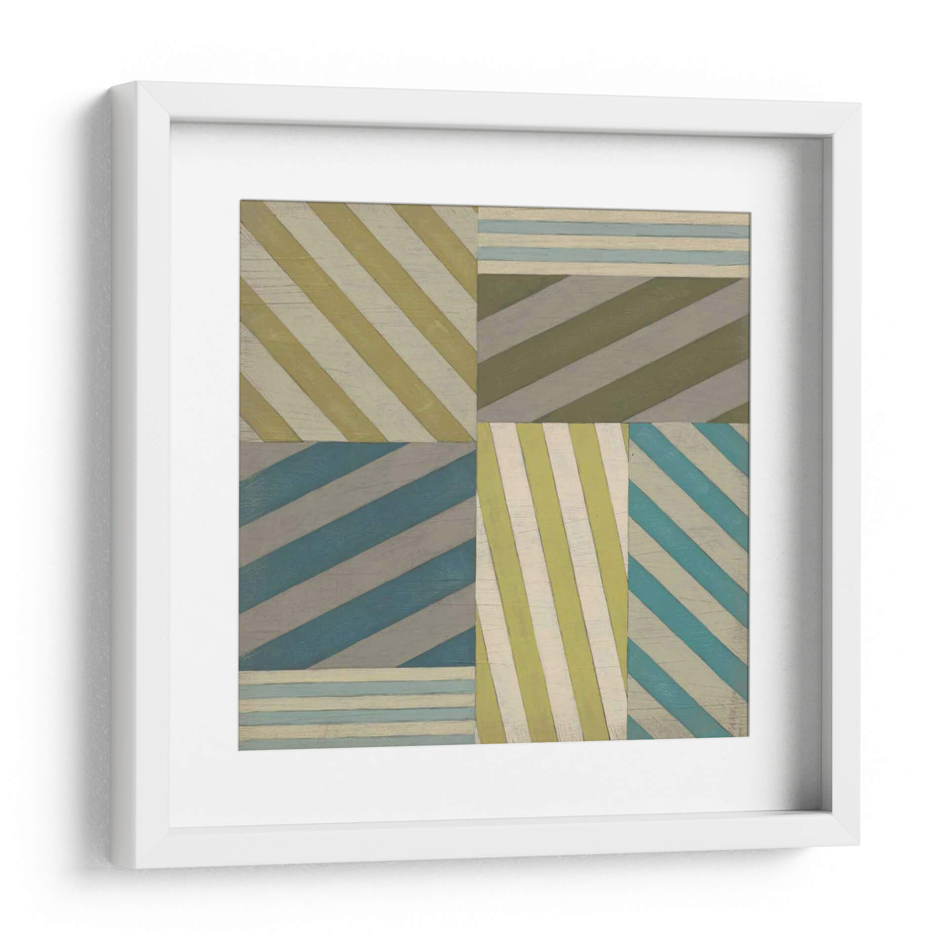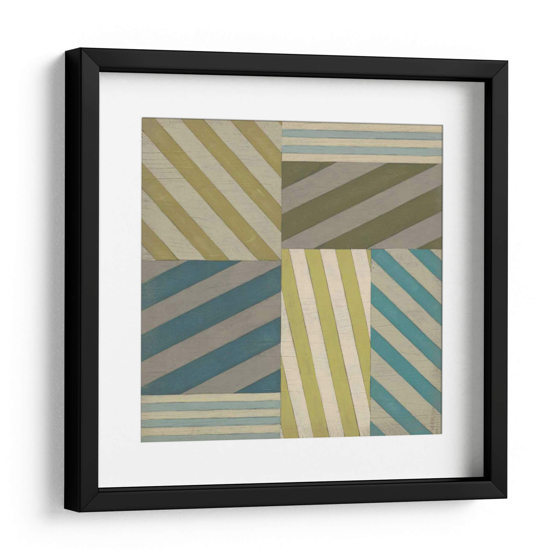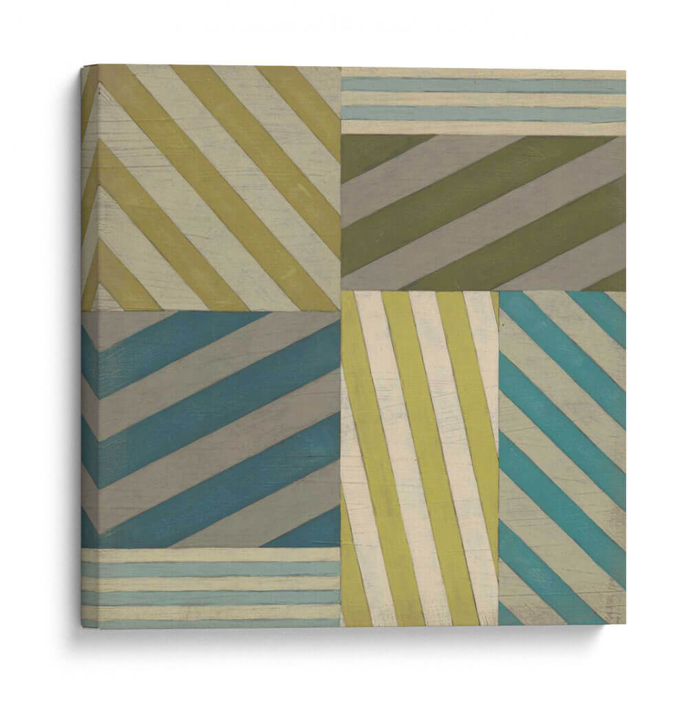 Transforma tu espacio con "Rayas Náuticas I", una obra de arte contemporánea de June Erica Vess que aporta una dosis de serenidad y estilo a cualquier habitación. Este cuadro decorativo se caracteriza por su audaz composición geométrica, dividida en bloques que presentan patrones de rayas diagonales y horizontales en una paleta de colores suave y relajante. Los tonos de verde oliva, azul marino, gris piedra y blanco roto se entrelazan creando una sensación de calma y orden, evocando la brisa marina y la tranquilidad de un día en la costa. La textura sutil y el acabado ligeramente desgastado añaden profundidad y carácter, invitando a la contemplación. Ideal para salones, dormitorios o estudios que buscan un toque de sofisticación moderna y un ambiente apacible. "Rayas Náuticas I" es más que una simple decoración de pared; es una invitación a la armonía visual y un punto focal que complementa tanto interiores minimalistas como decoraciones costeras o bohemias. Descubre cómo este diseño abstracto puede revitalizar tu hogar, aportando una atmósfera fresca y elegante que te transportará a un oasis de paz.