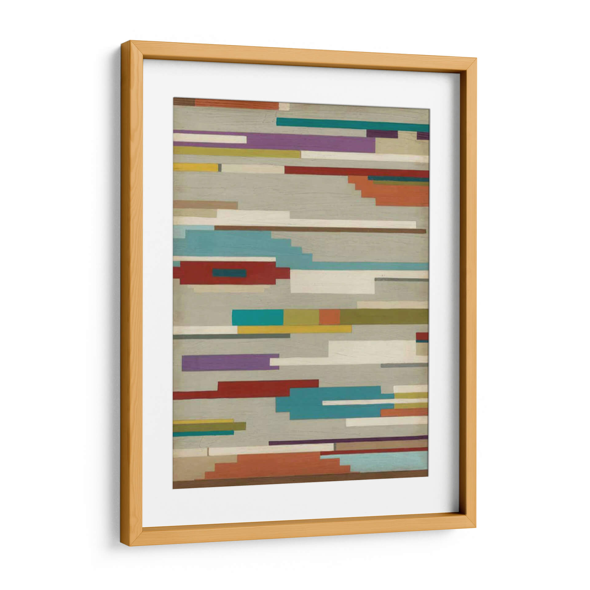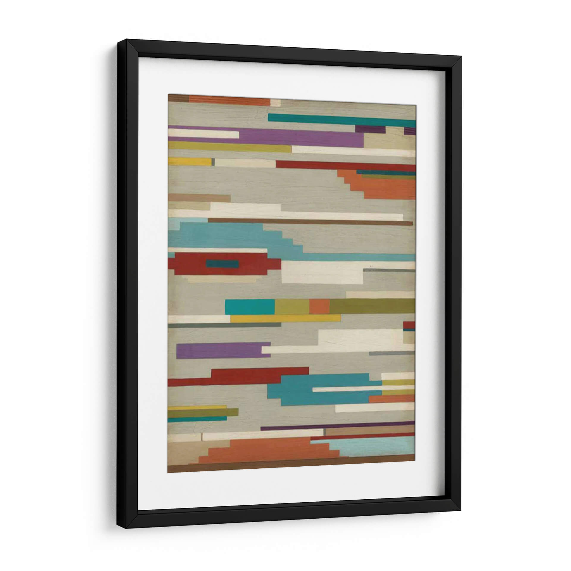 Embárcate en un viaje visual con "Southwest Signals II", una obra de arte contemporáneo que captura la esencia de las señales abstractas y los paisajes modernos. Este cuadro decorativo presenta un tapiz de líneas horizontales y rectángulos de colores vibrantes que se entrelazan sobre un fondo texturizado en tonos grises y beige, evocando la sensación de un horizonte lejano o un código visual intrigante. La paleta de colores, que abarca desde tonos tierra cálidos como el terracota y el ocre, hasta toques audaces de azul turquesa, púrpura intenso y rojo carmesí, crea una composición dinámica y atractiva. El estilo de June Erica Vess se caracteriza por su enfoque geométrico y abstracto, ofreciendo una pieza que dialoga con el espacio sin abrumarlo. Ideal para aquellos que buscan añadir un toque de sofisticación y color a su sala de estar, oficina o dormitorio, esta obra invita a la contemplación y añade una dimensión de interés moderno a cualquier decoración. Su diseño versátil la convierte en un punto focal cautivador, perfecto para interiores que buscan una expresión artística única y contemporánea. Añade esta pieza distintiva a tu colección y transforma tu entorno con su vibrante energía.