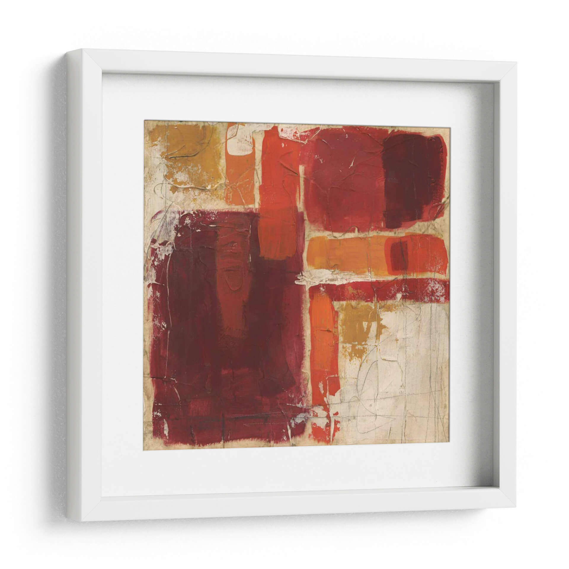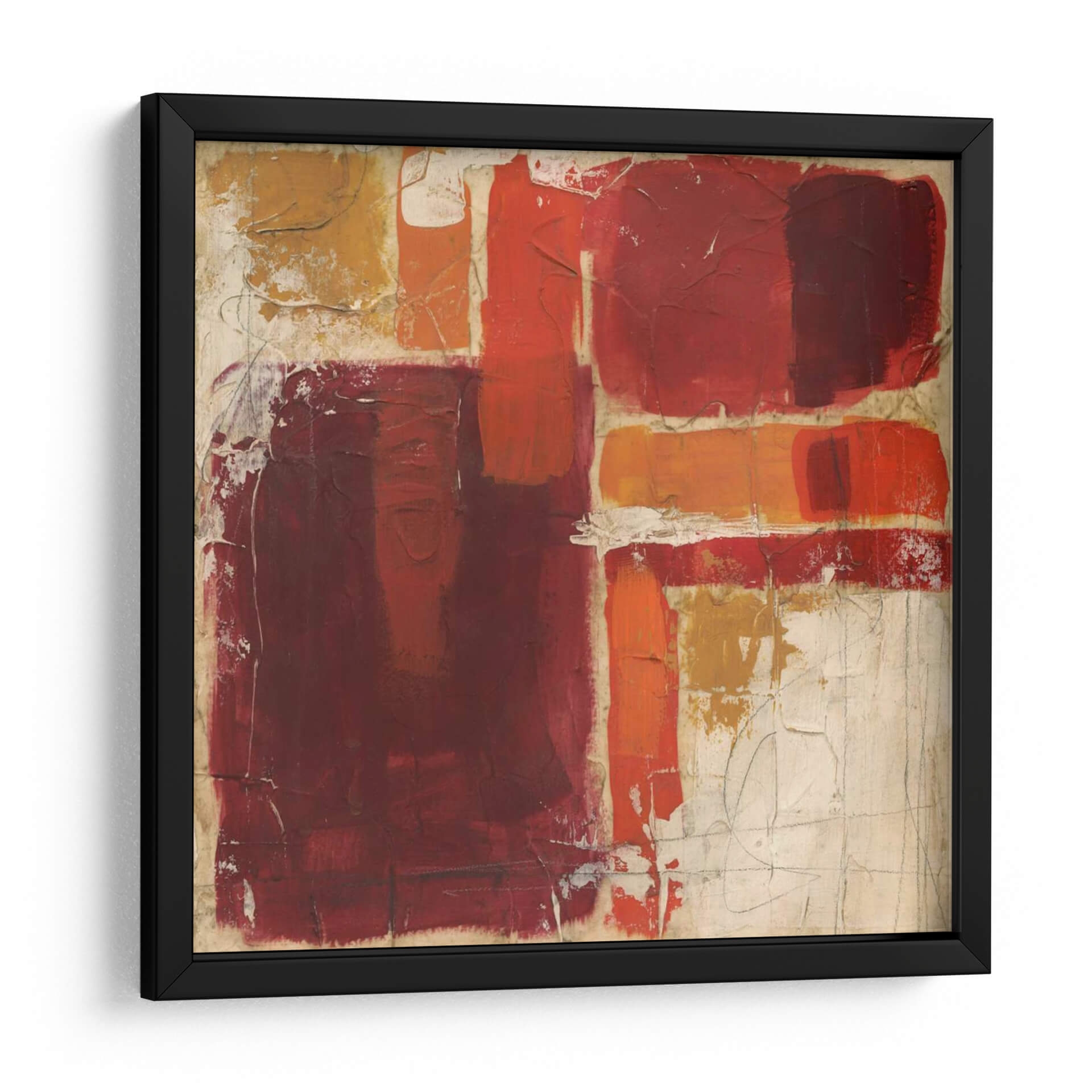 Sumérgete en la profundidad y la pasión de "Superposición I", una cautivadora obra de arte abstracto de la artista June Erica Vess. Esta pieza se caracteriza por una audaz superposición de formas geométricas y texturas ricas, dominada por una vibrante paleta de rojos intensos, naranjas cálidos y toques de ocre sobre un fondo neutro y texturizado. La composición, con sus bloques de color contrastantes y líneas sutiles, crea una dinámica visual que atrae la mirada y estimula la imaginación. "Superposición I" evoca una sensación de energía contenida y una sofisticación moderna, ideal para inyectar vida y carácter a cualquier espacio. Es una pieza que invita a la contemplación, perfecta para salas de estar contemporáneas, oficinas ejecutivas o cualquier lugar donde se desee un toque de arte audaz y expresivo. Su versatilidad le permite complementar una variedad de estilos decorativos, desde el minimalista hasta el ecléctico, convirtiéndose en un punto focal que genera conversación y admiración. Añade un elemento de diseño único y contemporáneo a tu hogar u oficina con este impresionante cuadro decorativo abstracto.