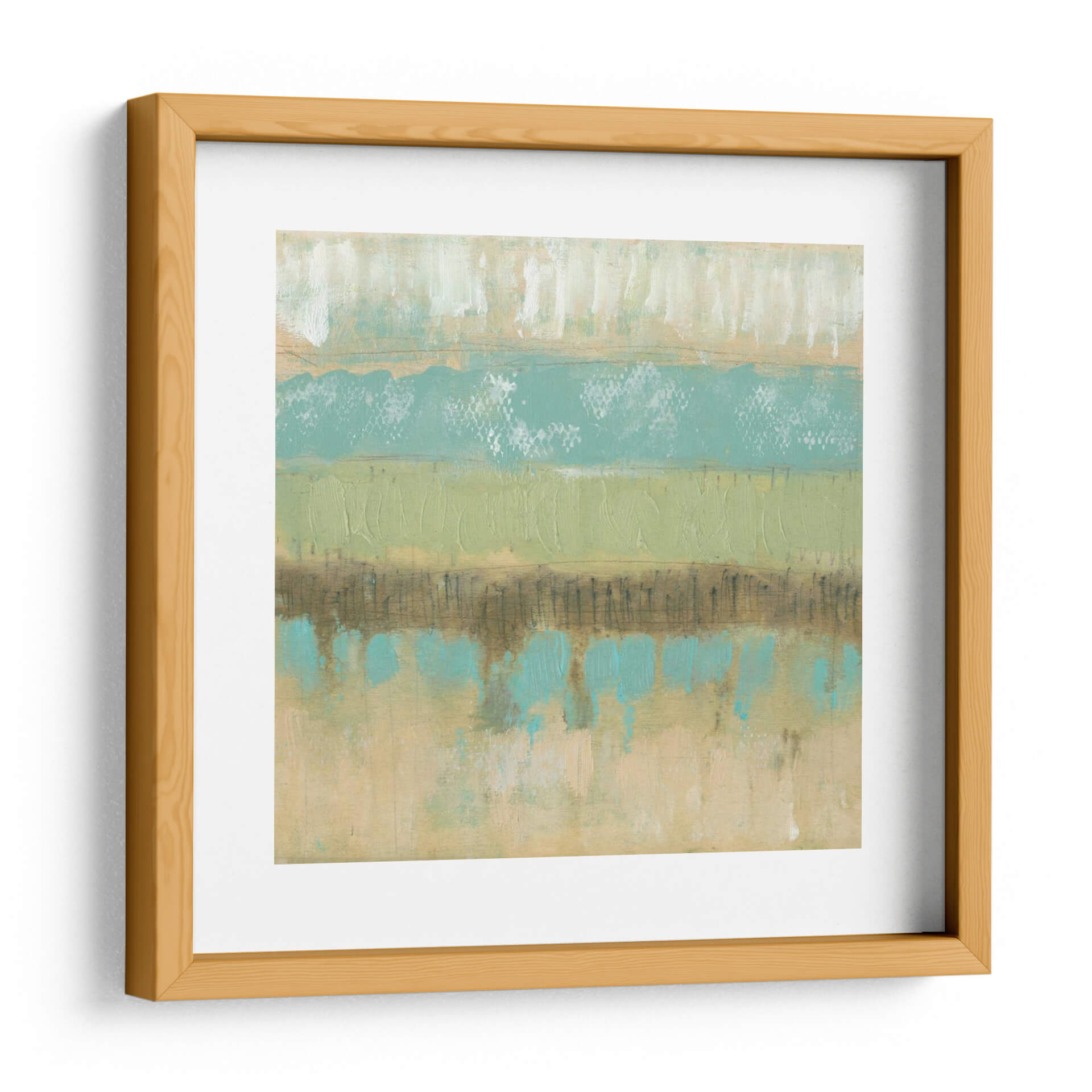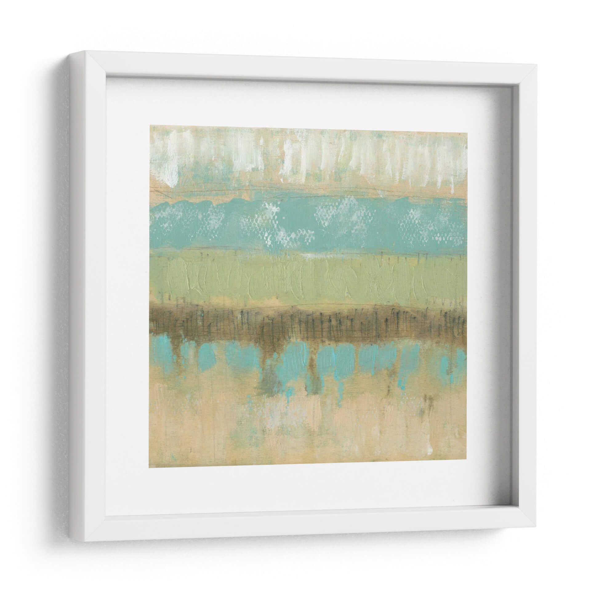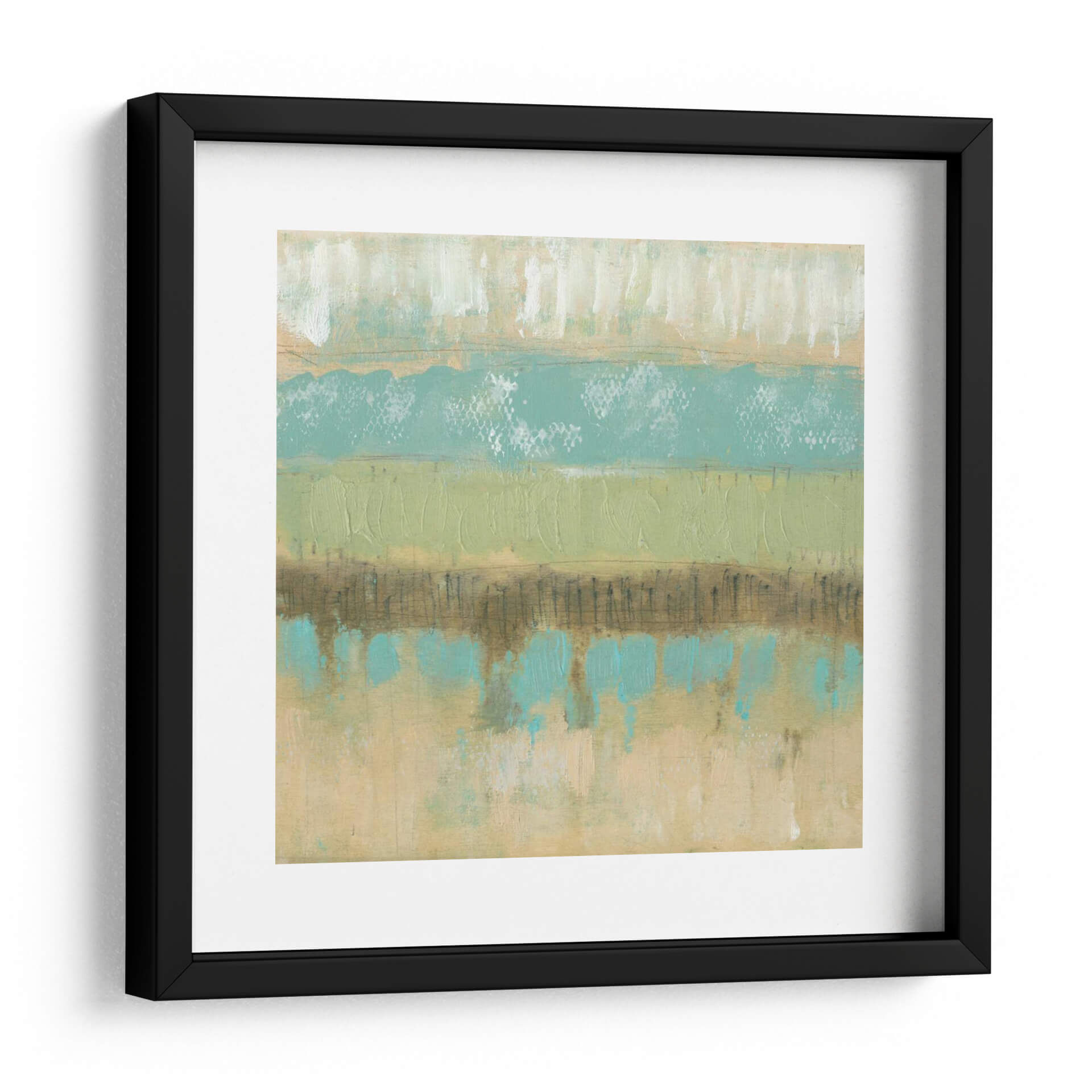 Sumérgete en la serenidad y la textura de "Texturas Pastel II", una cautivadora obra abstracta de Jennifer Goldberger. Esta pieza se caracteriza por sus suaves bandas horizontales que evocan paisajes etéreos y la delicadeza de la naturaleza. Los tonos pastel, que van desde suaves verdes menta y turquesas vibrantes hasta cálidos ocres y blancos cremosos, se entrelazan creando una atmósfera de calma y equilibrio. La técnica de Goldberger se manifiesta en pinceladas audaces y texturas ricas que invitan a la contemplación, con sutiles líneas y salpicaduras que añaden profundidad y un toque artesanal. "Texturas Pastel II" es ideal para infundir tranquilidad en un dormitorio, aportar una nota de frescura a una sala de estar o añadir un toque de sofisticación contemporánea a un espacio de oficina. Este cuadro decorativo abstracto, con su composición armoniosa y su paleta de colores relajante, se convierte en un punto focal inspirador que complementa una variedad de estilos decorativos, desde el moderno y minimalista hasta el bohemio y escandinavo, transformando cualquier ambiente en un refugio de paz y belleza.
