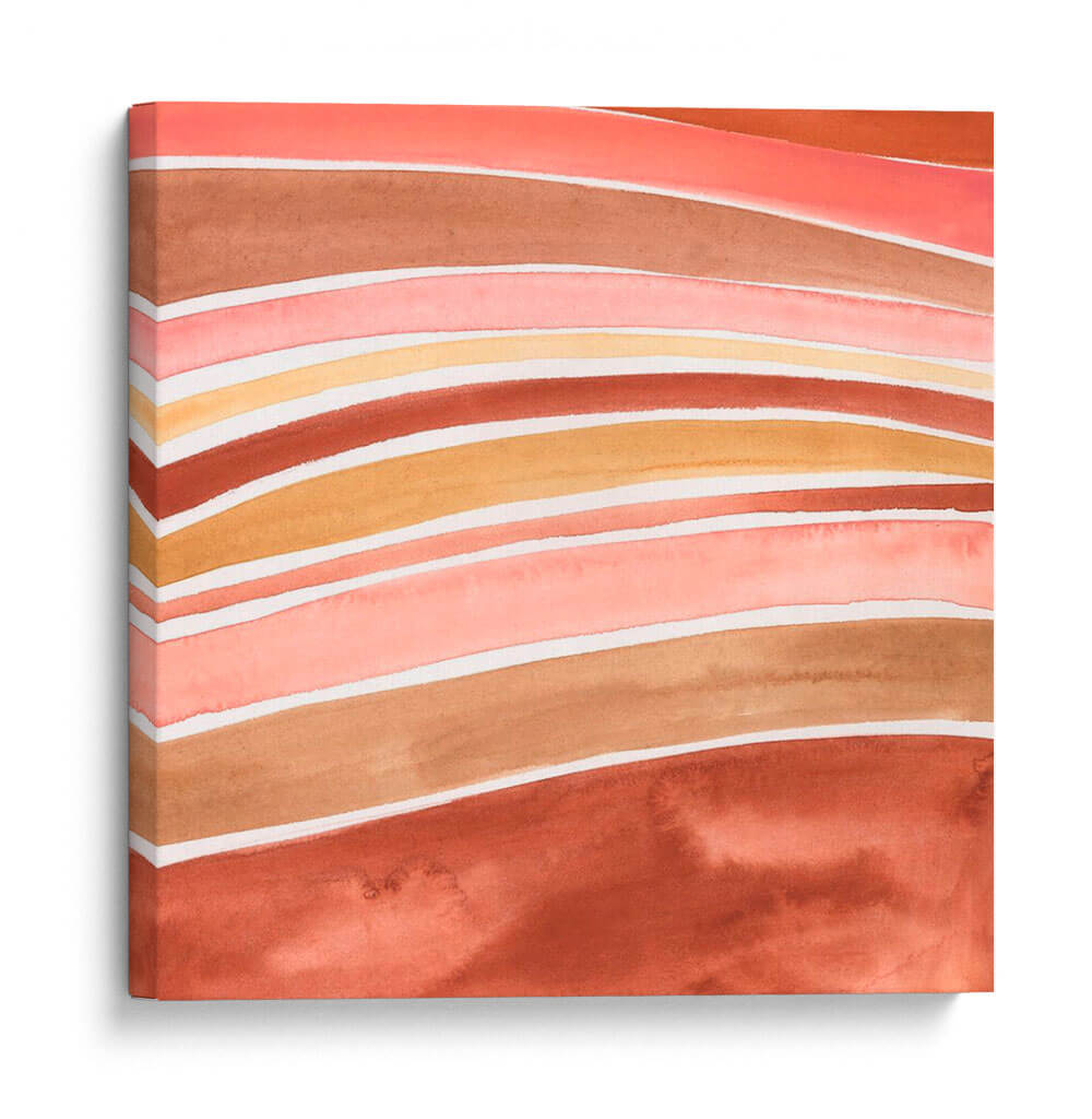Adéntrate en la serenidad y la calidez con "Tierra Strata I", una obra de arte abstracta de Victoria Borges que evoca la belleza de las formaciones geológicas y los tonos cálidos de la tierra. Este cuadro decorativo presenta capas fluidas de color, que van desde naranjas terrosos y marrones profundos hasta suaves rosas y toques de melocotón, intercalados con delicadas líneas blancas que aportan ritmo y profundidad. La composición, con sus suaves curvas y transiciones tonales, crea una atmósfera de calma y armonía, perfecta para infundir tranquilidad en cualquier espacio. Ideal para quienes buscan añadir un toque orgánico y sofisticado a su hogar u oficina, "Tierra Strata I" es una pieza versátil que complementa tanto decoraciones modernas como rústicas. Transforma tu sala de estar, dormitorio o estudio en un santuario de paz y estilo con este cautivador arte contemporáneo que celebra la belleza de la naturaleza en su forma más abstracta y elegante. Su diseño evocador invita a la contemplación y añade una dimensión única a tu decoración de pared.