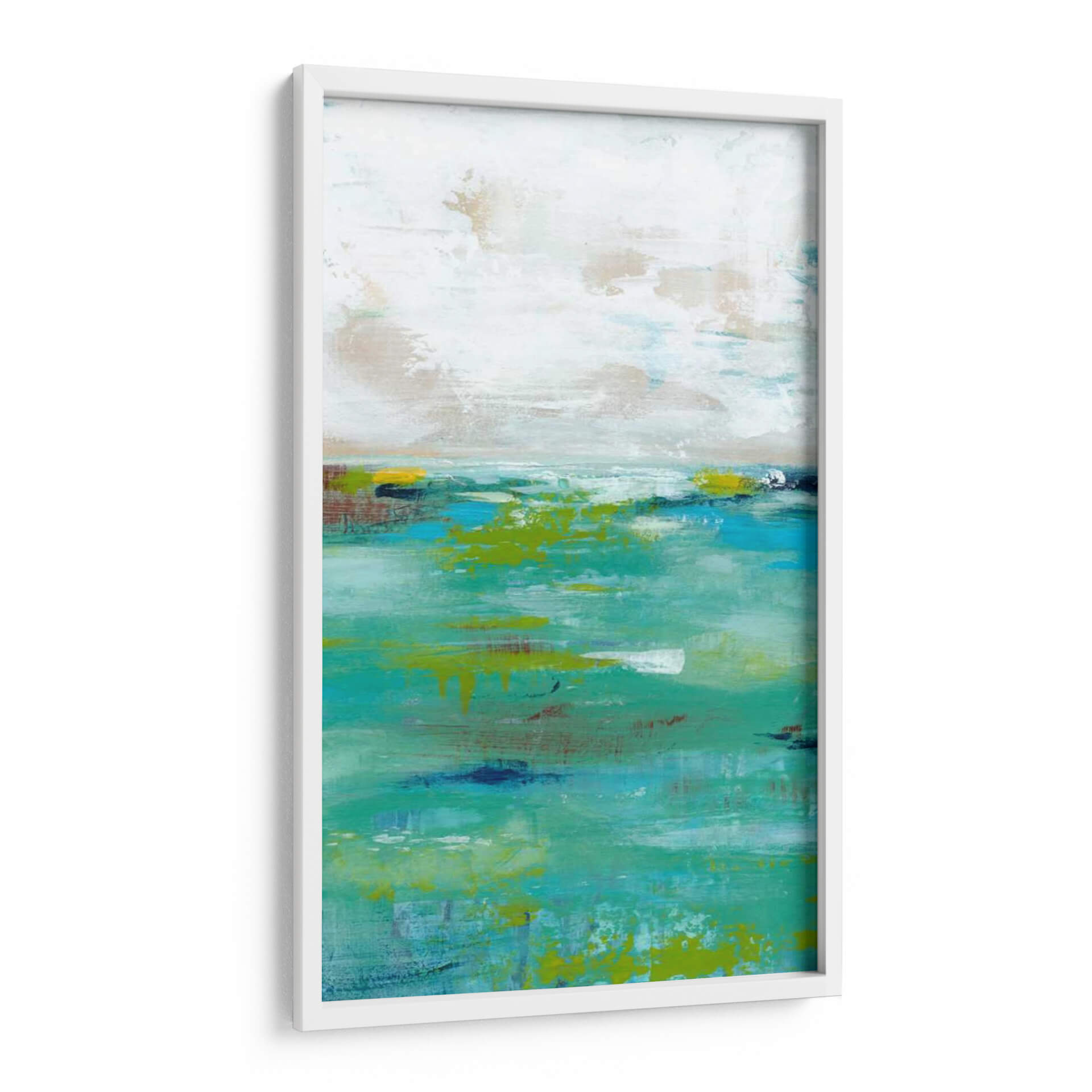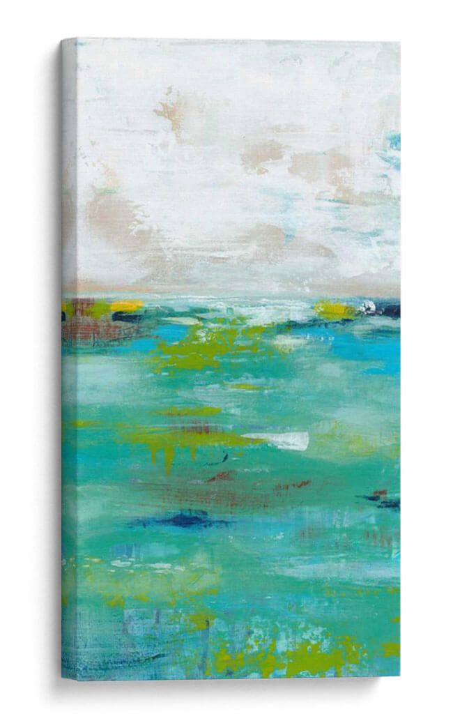 Sumérgete en la serenidad y la vibrante energía de "Topaz Mire Ii", una obra de arte contemporáneo de Grace Popp que captura la esencia de un paisaje acuático abstracto. Este cuadro decorativo presenta una cautivadora paleta de azules turquesa profundos, verdes esmeralda brillantes y toques de amarillo ocre y blanco roto, evocando la sensación de un atardecer sobre un espejo de agua o un pantano exuberante. Las pinceladas audaces y las texturas ricas crean una profundidad visual que invita a la contemplación, mientras que la composición abstracta permite una interpretación personal, haciendo de cada mirada una experiencia nueva. "Topaz Mire Ii" es ideal para infundir calma y sofisticación en cualquier espacio, ya sea una sala de estar moderna, un dormitorio tranquilo o una oficina que busca un toque de inspiración natural. Este lienzo abstracto es perfecto para quienes aprecian el arte moderno y buscan una pieza que combine la belleza natural con una expresión artística contemporánea, añadiendo un punto focal de color y serenidad a tu decoración de pared.