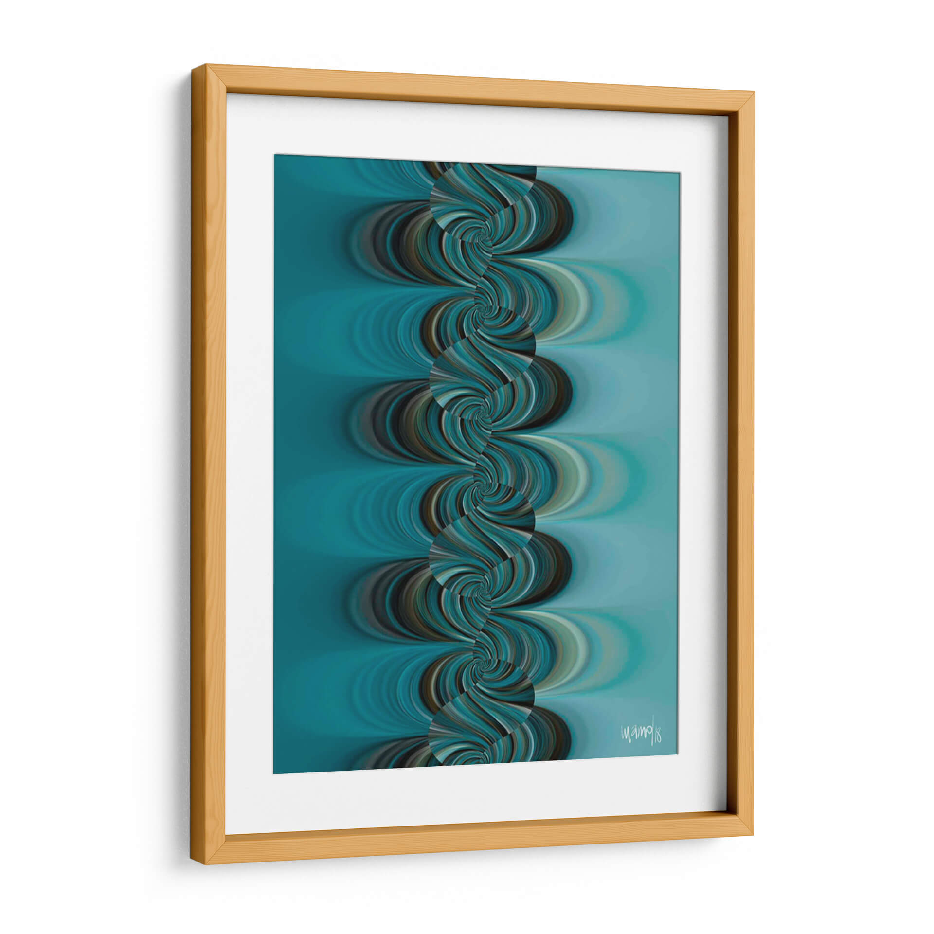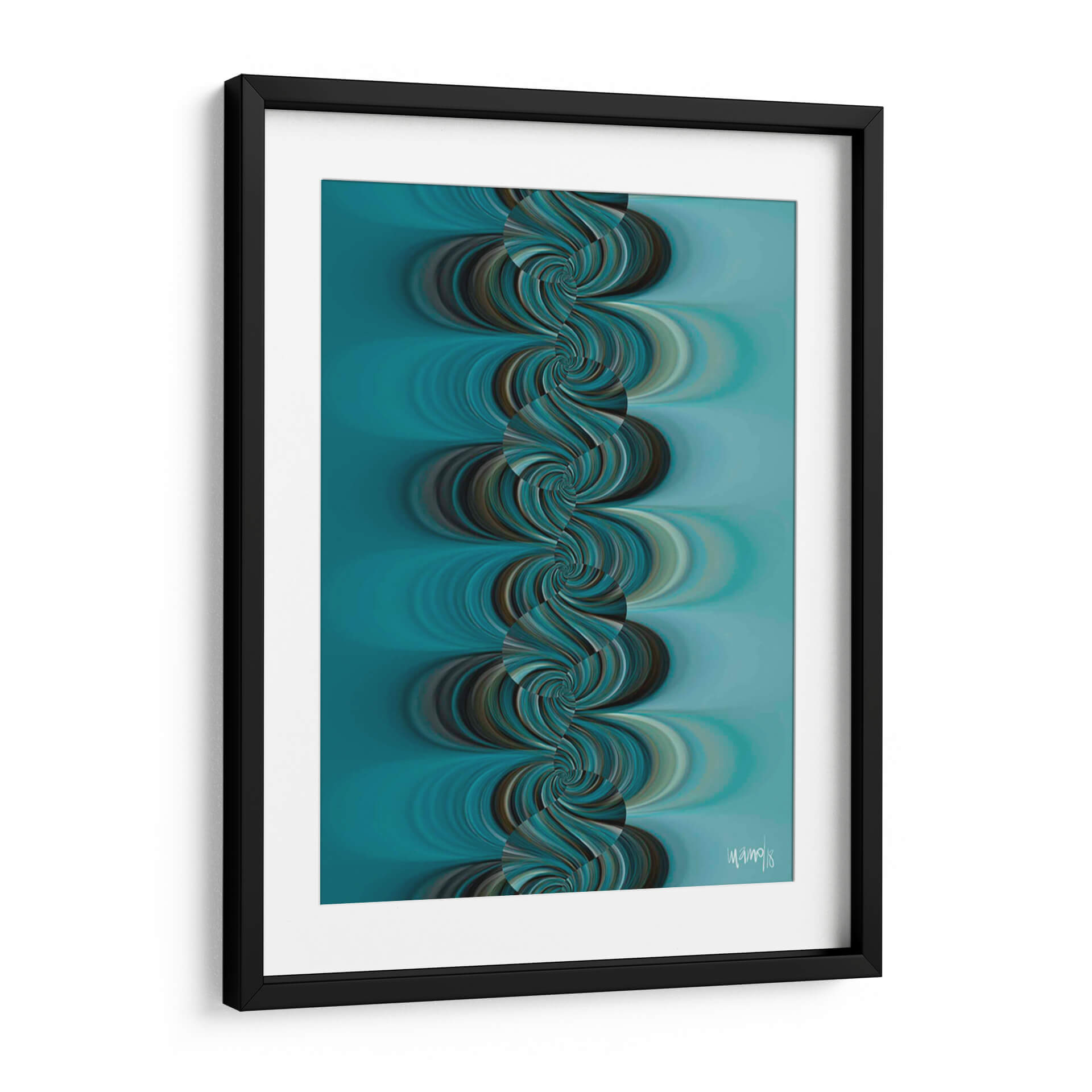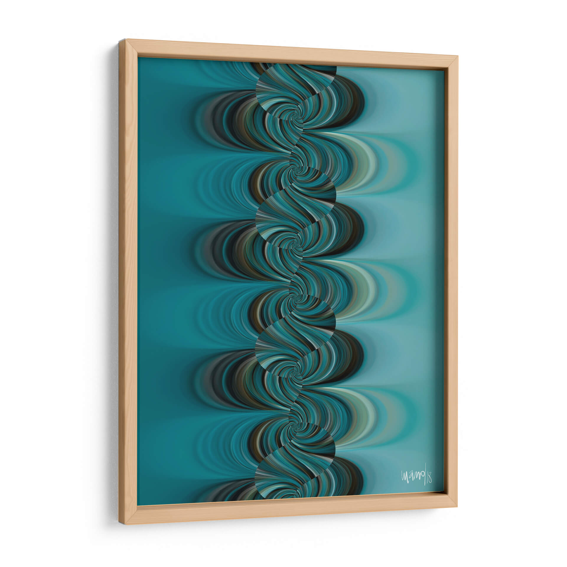 Sumérgete en la hipnótica belleza de "TURQUESA 4", una obra de arte contemporáneo que captura la esencia del movimiento y el color. Diseñada por la talentosa Gina Villalobos, esta pieza presenta una fascinante cascada de espirales en tonos turquesa, azul profundo y marrones terrosos, que se entrelazan creando una sensación de fluidez y profundidad. El fondo suave y degradado en azul aguamarina complementa a la perfección las formas dinámicas del primer plano, generando una atmósfera de calma y sofisticación. "TURQUESA 4" es una invitación a la contemplación, perfecta para añadir un toque de serenidad moderna a tu sala de estar, dormitorio u oficina. Su diseño abstracto y orgánico la convierte en un punto focal cautivador que inspira tranquilidad y elegancia. Ideal para quienes buscan una decoración de pared que combine arte abstracto con una paleta de colores envolvente y una composición visualmente impactante.