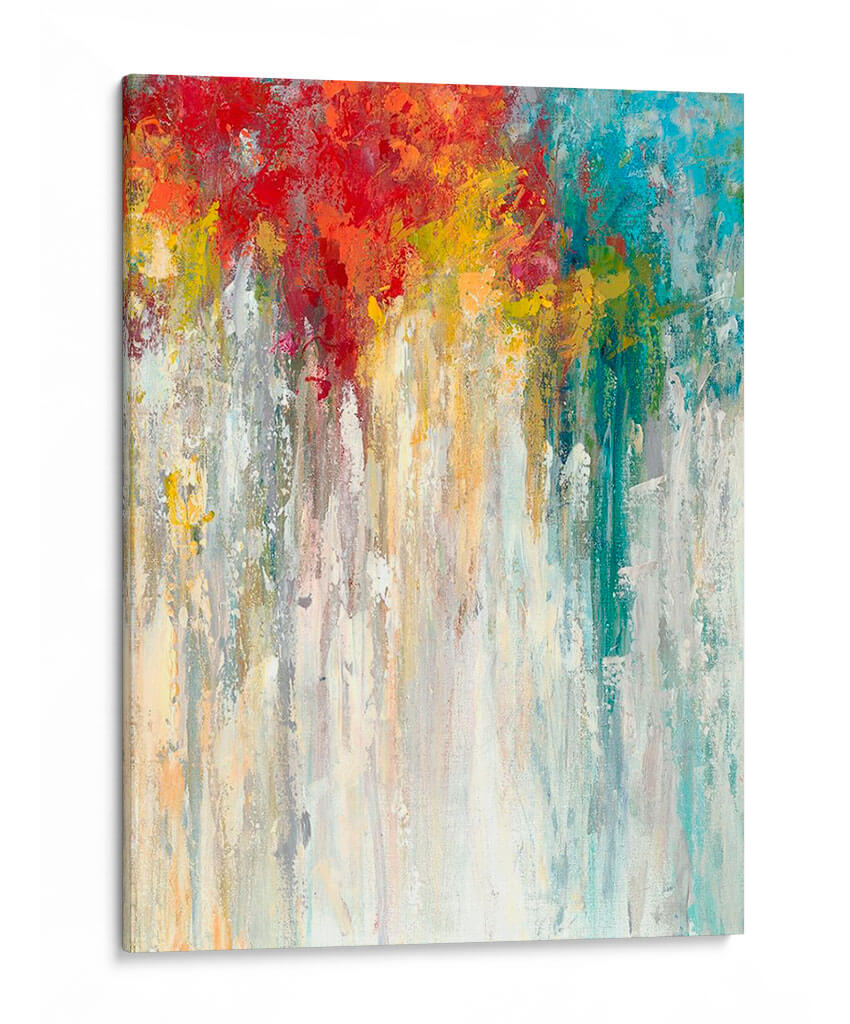 Sumérgete en la vibrante expresividad de "Unbound I", una obra de arte abstracto contemporáneo de Janet Bothne que irradia energía y movimiento. Esta pieza cautiva con su audaz paleta de colores, donde intensos tonos de rojo, naranja y amarillo se fusionan con refrescantes azules y verdes, creando un dinamismo visual cautivador. Las pinceladas gestuales y texturizadas evocan una sensación de libertad y espontaneidad, sugiriendo una cascada de emociones o elementos naturales que fluyen sin restricciones. El contraste entre las áreas de color saturado y los sutiles matices grises, blancos y ocres en la parte inferior aporta profundidad y equilibrio a la composición. "Unbound I" es ideal para infundir vida y carácter en cualquier espacio, ya sea una sala de estar moderna, un estudio creativo o una oficina contemporánea. Este cuadro decorativo abstracto es una invitación a la interpretación personal, añadiendo un toque de sofisticación y un punto focal de conversación a tu decoración. Descubre la belleza del arte abstracto y transforma tu hogar con esta pieza única y llena de vitalidad.