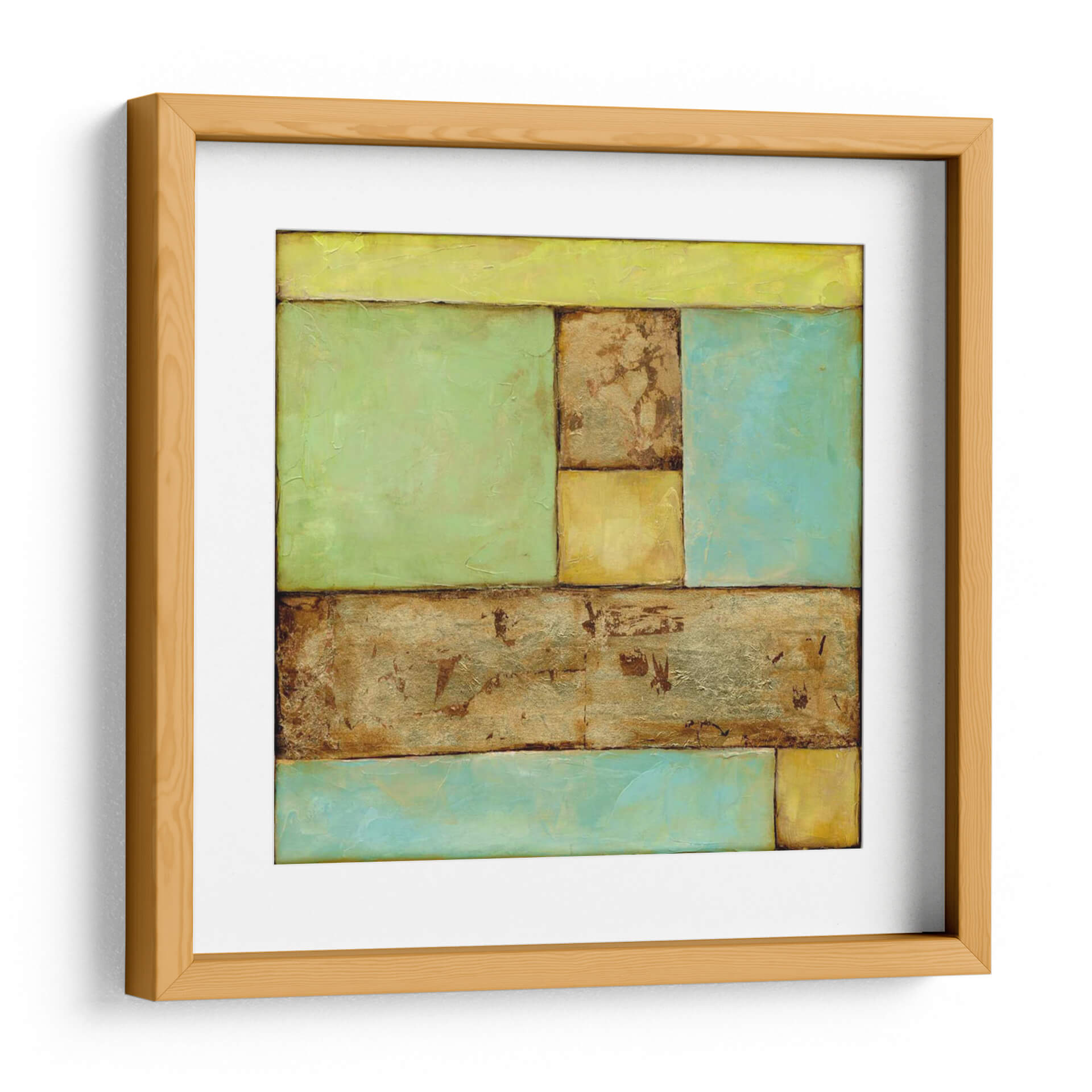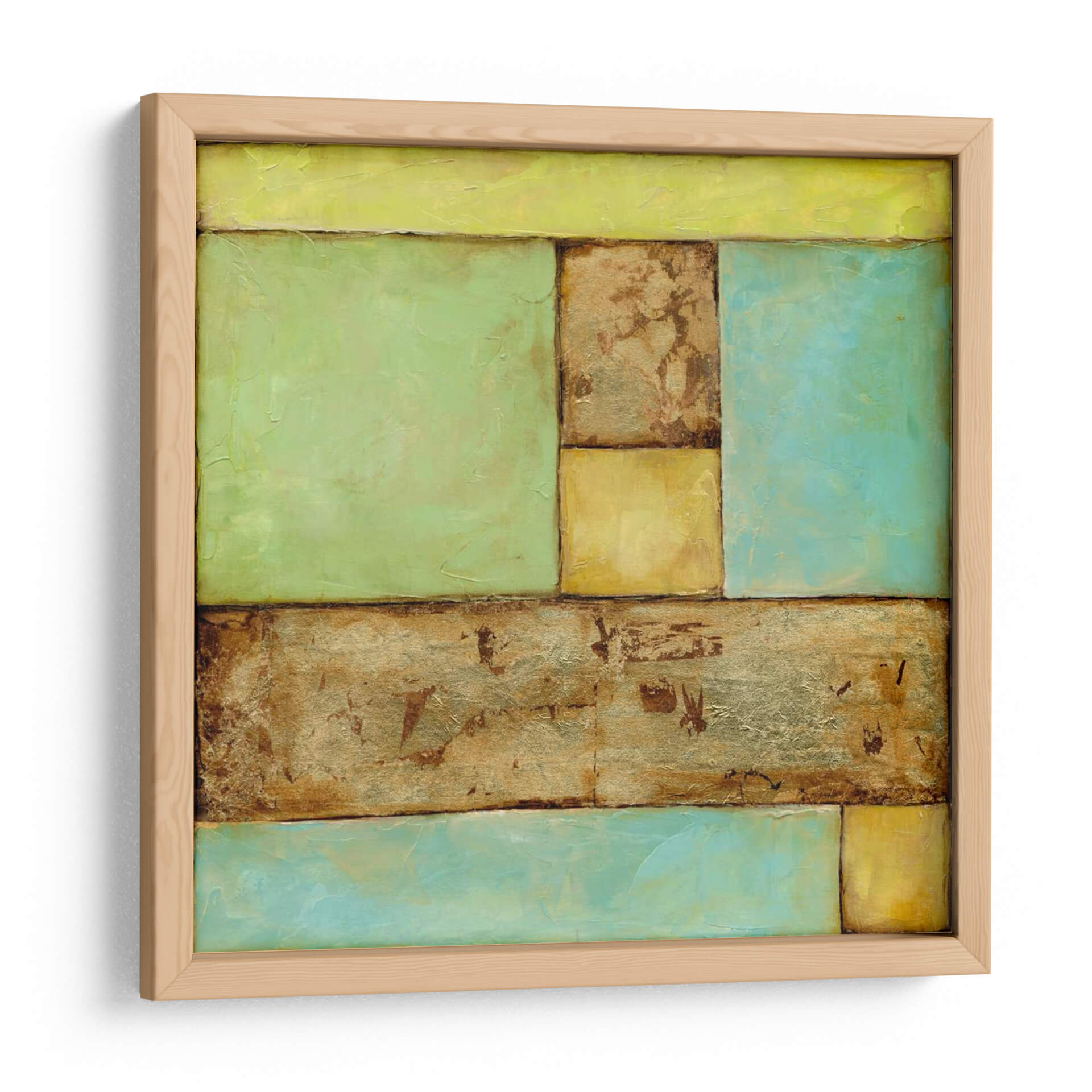 Sumérgete en la serenidad y el equilibrio con "Vitral I", una obra de arte contemporáneo de Jennifer Goldberger que redefine la estética de tu espacio. Este cuadro decorativo abstracto cautiva con su composición geométrica, donde bloques de colores vibrantes y texturas ricas dialogan armoniosamente. La paleta cromática, dominada por tonos verdes menta, azules celestes y toques de amarillo ocre con matices terrosos, evoca una sensación de calma natural y sofisticación. La técnica empleada sugiere un vitral moderno, con líneas definidas que segmentan el lienzo y permiten que cada color y textura brillen individualmente, creando una profundidad visual intrigante. "Vitral I" es la pieza perfecta para añadir un toque de arte orgánico y moderno a tu sala de estar, estudio u oficina, transformando cualquier pared en un punto focal de inspiración y tranquilidad. Descubre cómo esta obra puede infundir serenidad y un estilo contemporáneo único en tu hogar, invitando a la contemplación y al disfrute visual.