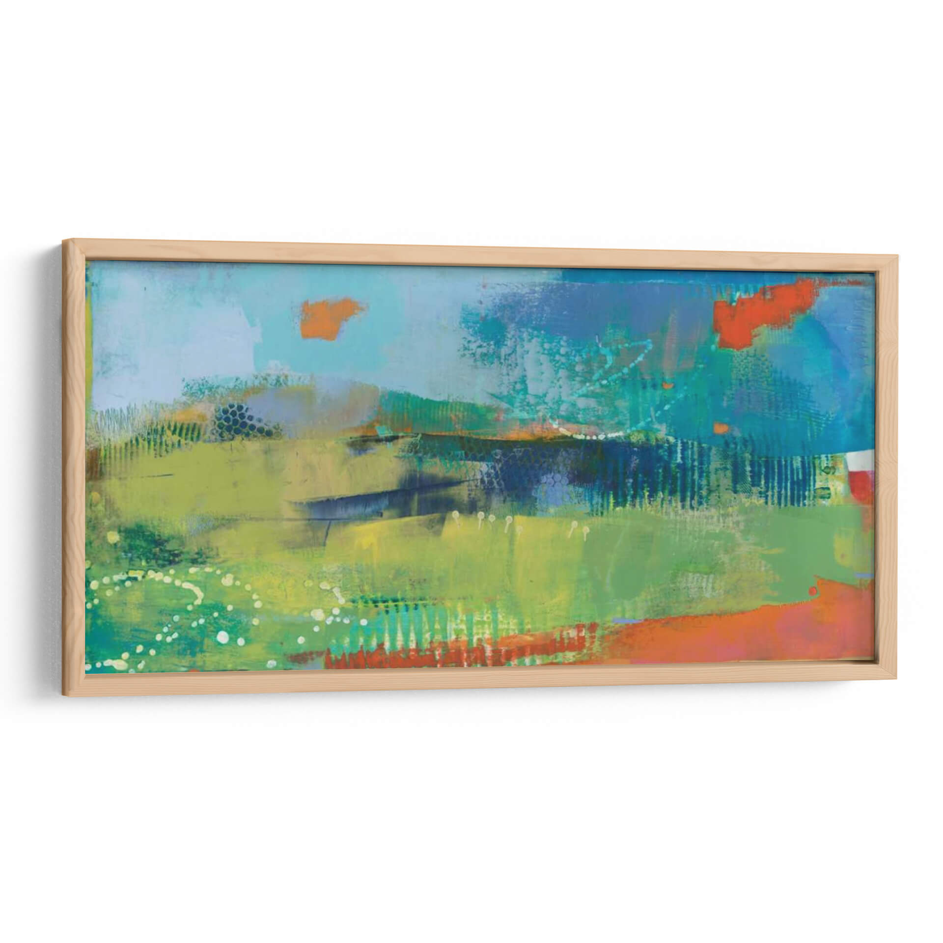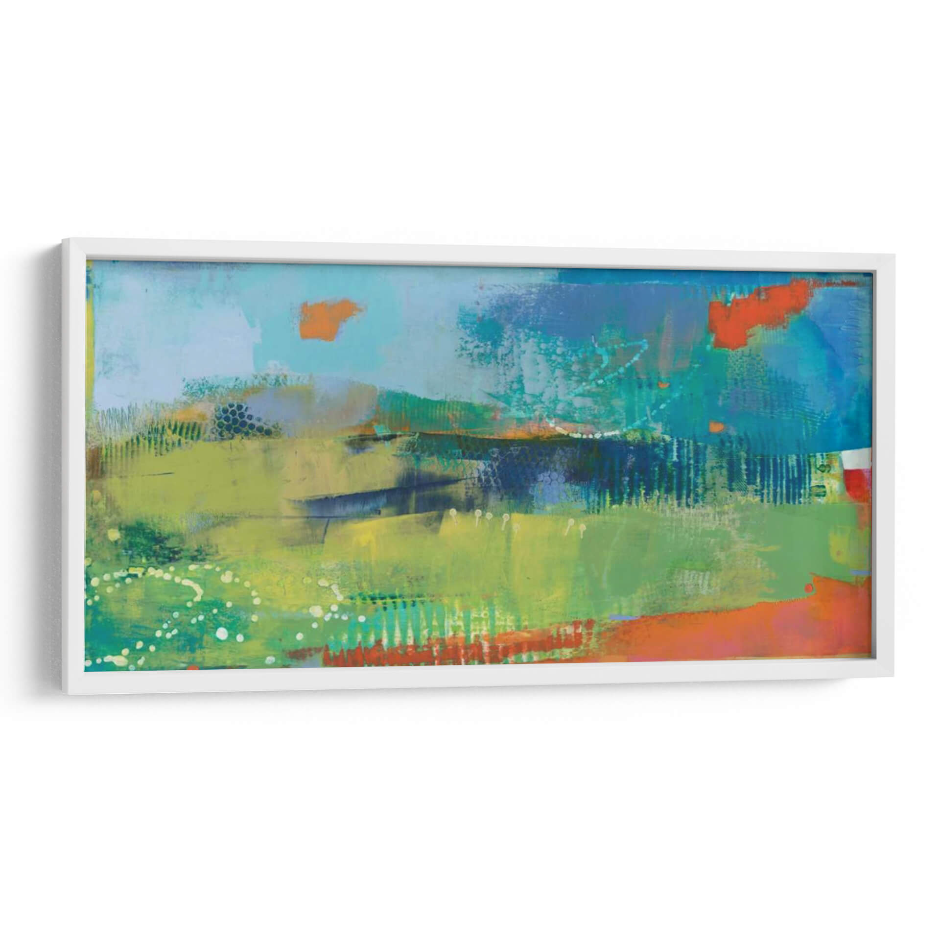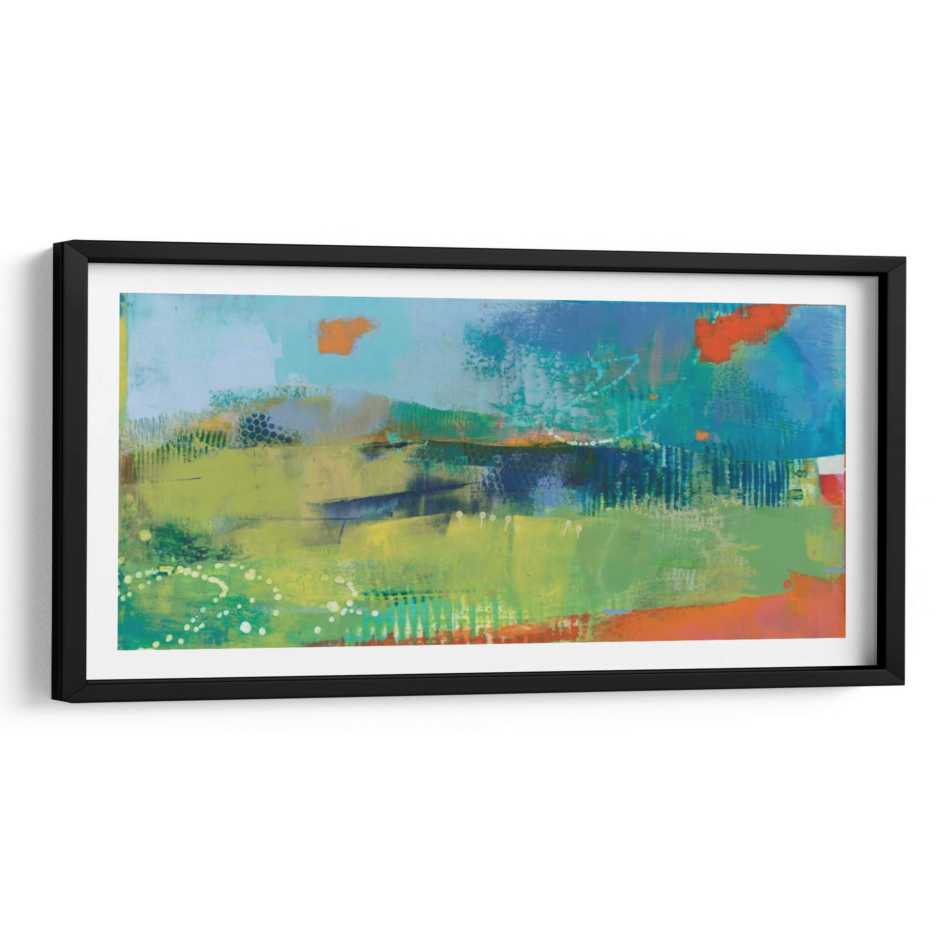 Sumérgete en la vibrante energía de "Yardland V", una obra abstracta contemporánea de Sue Jachimiec que captura la esencia de un paisaje imaginario. Esta pieza se despliega en una paleta de colores audaz y armoniosa, dominada por verdes exuberantes, azules profundos y toques cálidos de naranja y rojo. Las texturas ricas y las pinceladas gestuales crean una sensación de movimiento y profundidad, invitando al espectador a explorar sus capas visuales. Las formas abstractas y los patrones dinámicos sugieren una interpretación personal, evocando la sensación de un prado soleado o un campo de flores bajo un cielo despejado. "Yardland V" es perfecta para añadir un punto focal de color y vitalidad a cualquier sala de estar moderna, oficina o dormitorio. Su estilo abstracto la hace increíblemente versátil, capaz de complementar una amplia gama de decoraciones, desde la más minimalista hasta la más ecléctica. Este cuadro decorativo no solo embellece tu espacio, sino que también estimula la imaginación y transmite una sensación de optimismo y conexión con la naturaleza. Ideal para quienes buscan arte que hable directamente al alma y transforme su entorno en un oasis de inspiración. Descubre la potencia del color y la forma con esta cautivadora pieza abstracta.