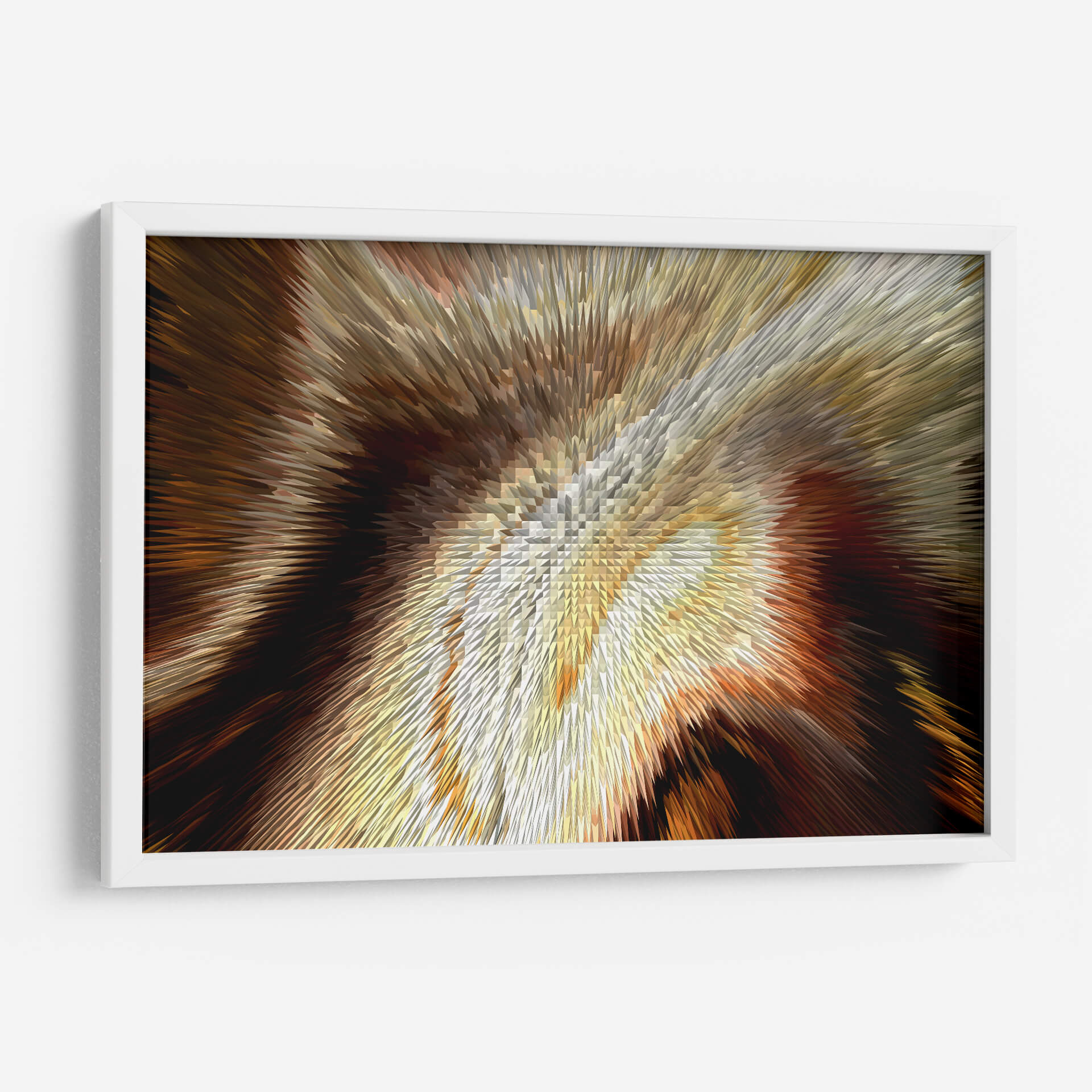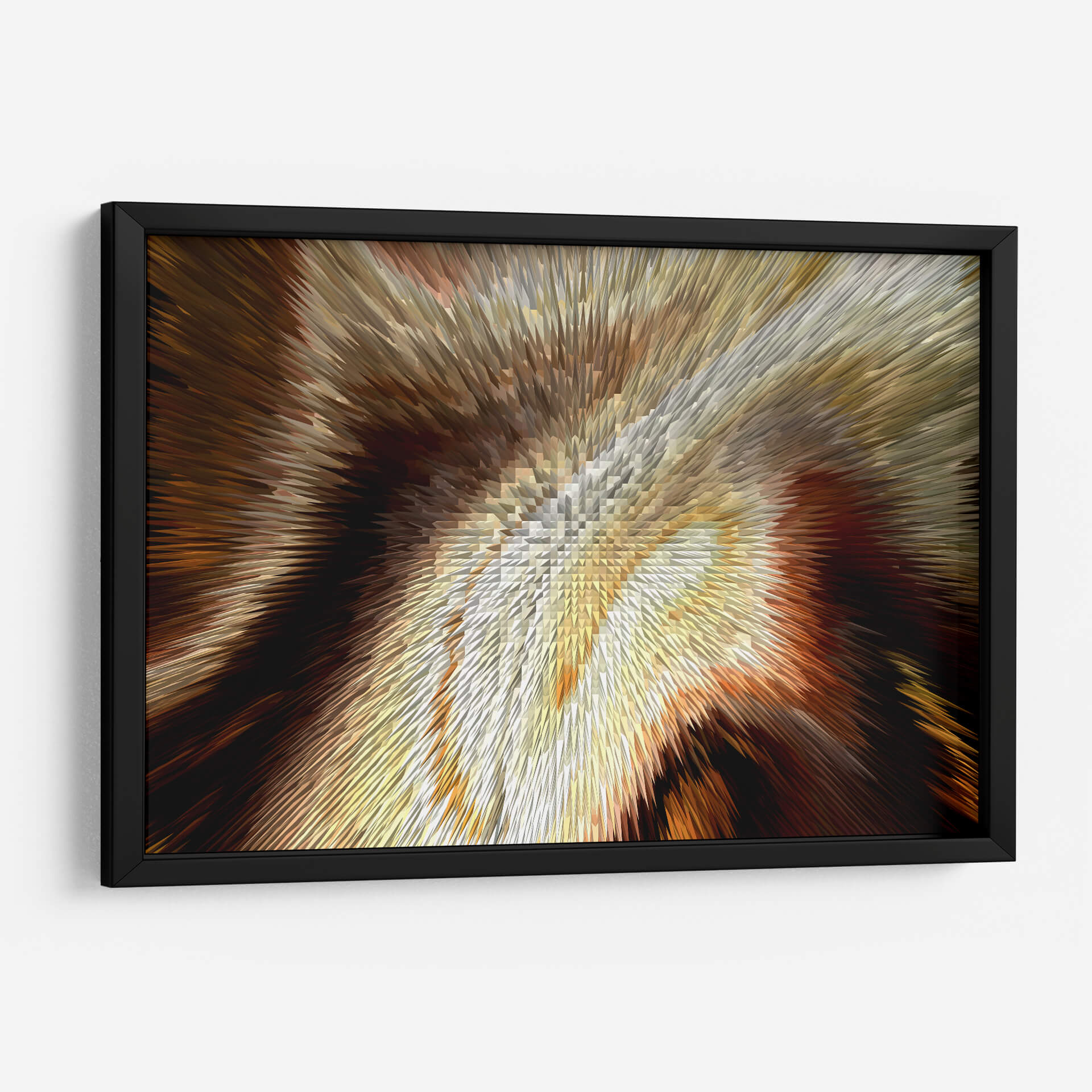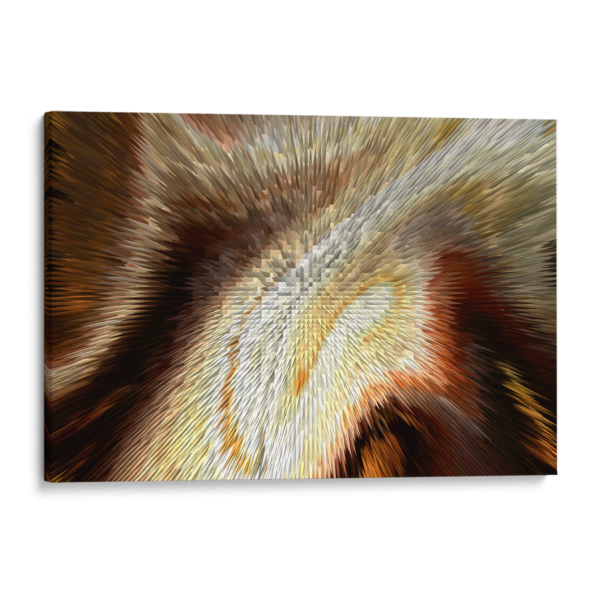 Sumérgete en la calidez y la profundidad de "Cobrizo", una obra de arte contemporáneo de Rodrigo Barrera que transforma el espacio con su vibrante energía y texturas dinámicas. Este cuadro decorativo abstracto se caracteriza por una explosión visual de tonos cobrizos, dorados, marrones y ocres, que se entrelazan creando un efecto tridimensional cautivador. Las formas afiladas y angulares que emanan desde el centro sugieren movimiento y dinamismo, atrayendo la mirada hacia su intrincado detalle. La paleta de colores, rica y terrenal, evoca una sensación de lujo, calidez y sofisticación, perfecta para añadir un toque de elegancia a cualquier ambiente. "Cobrizo" es ideal para espacios que buscan un punto focal audaz y moderno, como una sala de estar contemporánea, un despacho o un recibidor. Su naturaleza abstracta permite múltiples interpretaciones, invitando a la contemplación y la conversación. Este cuadro decorativo es una pieza versátil que complementará tanto decoraciones rústicas como minimalistas, aportando carácter y un sentido de profundidad visual. La maestría de Barrera en la manipulación de formas y colores crea una obra que es a la vez poderosa y sutil, una adición impresionante a tu colección de arte mural.